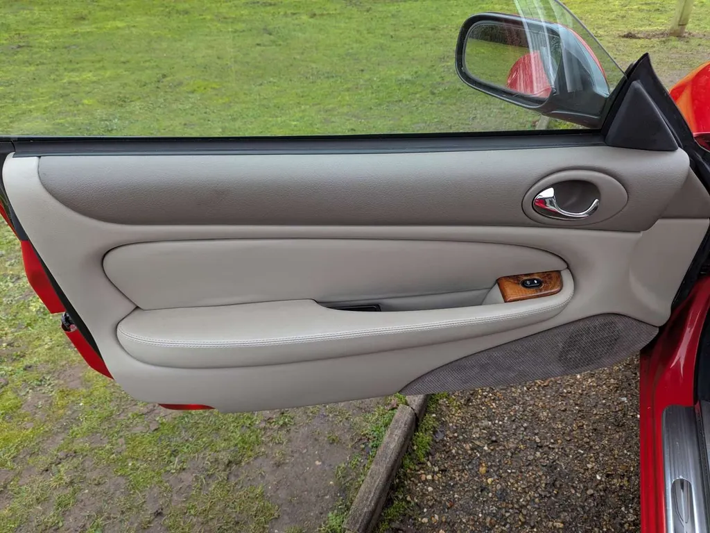 This Jaguar XKR Coupe is showing 108,202 miles on its odometer. Finished in Phoenix Red, the car is in good overall condition, with a cream leather interior equipped with cruise control, CD/cassette player and air conditioning. It comes with 2 sets of keys, various MoT certificates and parts receipts, and a handbook pack with service logbook. This contains 14 stamps (plus PDI) up to a full service in June 2025, which included PAS fluid, supercharger fluid, spark plugs and brake fluid. Only 1700 miles have been covered since the last MoT, which recently expired on 27th November 2025.The car was first registered in Doncaster on 12th May 1998, and its V5C indicates 5 former keepers. Its private registration number D10 XEE is included. Not specified