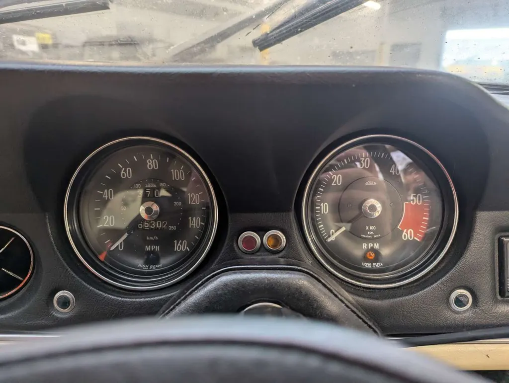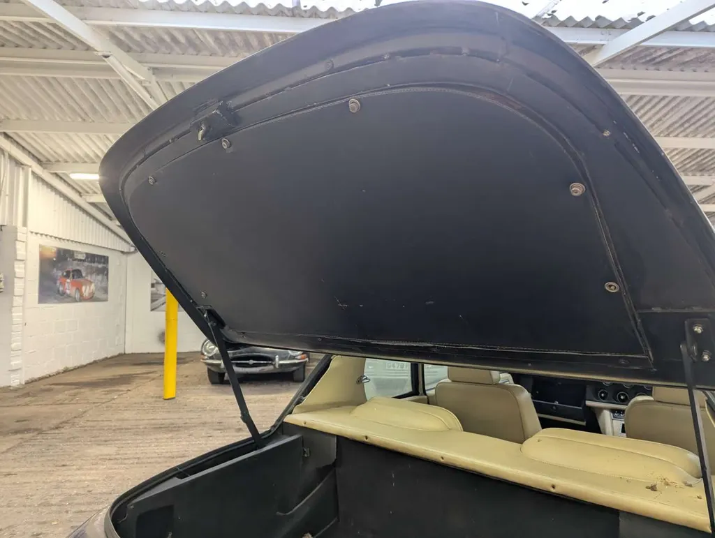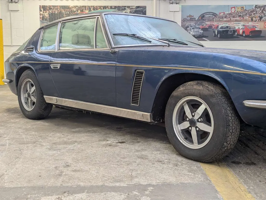 This blue 7.2-litre MkIII Jensen Interceptor, with cream leather interior, has had four registered owners from new, and its odometer displays 66,302 miles. The vendor took ownership in 1998 and drove the car until 2002. Its final use was for his daughter's wedding, and it has been stored in a garage ever since, so it is being sold as a non-running project for recommissioning.The car was first registered on 11th June 1973. Paperwork includes current and previous V5Cs, a couple of old MoT certificates, an old sales invoice from 1998 and various insurance documents. A note by a previous owner lists various maintenance items carried out in the 1990s, including restoration work in 1989/90.Included with the car are a spare shock absorber and an original 8-track player. Not specified