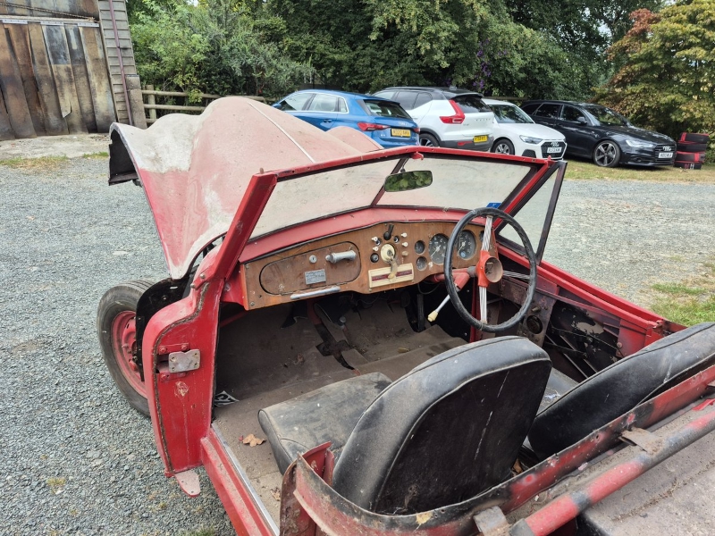 FFE 513 - E1/SA/473R Jupiter SA restoration project, virtually complete, straight rolling chassis with a very sound superstructure, Aal panels, dashboard and instrumentation still fitted, engine dismantled but complete, complete with hood frame, fitted with individual seats. Car rolls and steers fine, much history and documentation, V5 - sold on behalf of the current family owners due to bereavement. Can be viewed on the Welsh/Shropshire boarders. Dry barn stored. Excellent club support, technical advice and parts availability, delivery available. Tubular spaceframe chassis fitted with all round torsion bar suspension, 1500cc water cooled boxer engine - Jupiters hold a rich racing history and this project provides the perfect opportunity for race conversion (Le Mans Classic/Goodwood/Spa Classic) or simply return to road use.