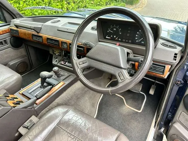 This Range Rover Classic is a high-spec Vogue SE model, featuring air suspension, colour-coded alloy wheels, and a grey leather interior with heated seats, cruise control and sunroof. The car is finished in Plymouth Blue, with a 3.9-litre EFi V8 engine and ZF automatic transmission, and comes with an excellent collection of maintenance receipts from the year 2000 onwards, with old MoT certificates and tax discs, and a Haynes maintenance manual. Spare ignition and immobiliser keys are also present.The car is well preserved overall, and its headlining is intact. It was first registered in March 1993 and has been MoT tested most years of its life. The current certificate remains valid to 19th March 2026. The next owner will need to apply to the DVLA for a new V5C.The vendor advises that the rear electric windows are not working. Not specified