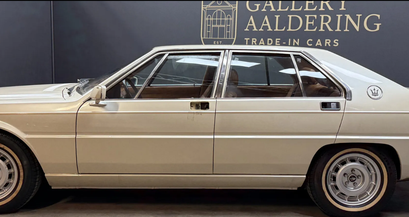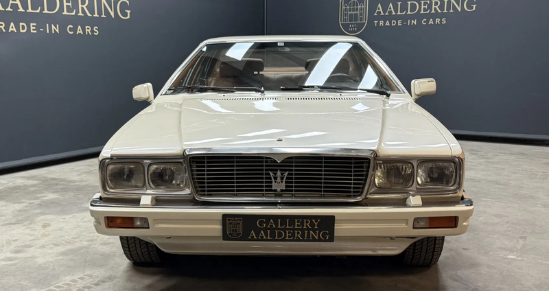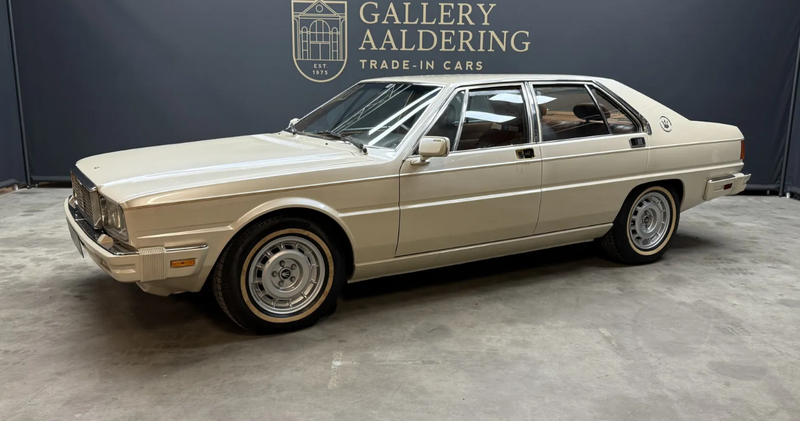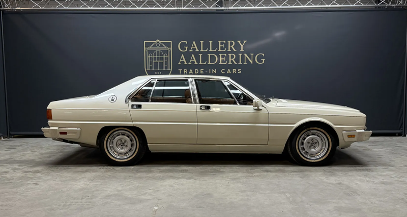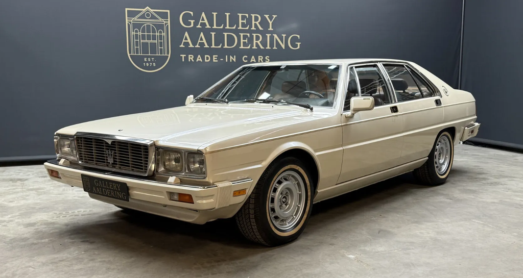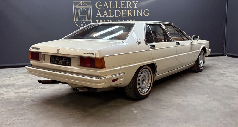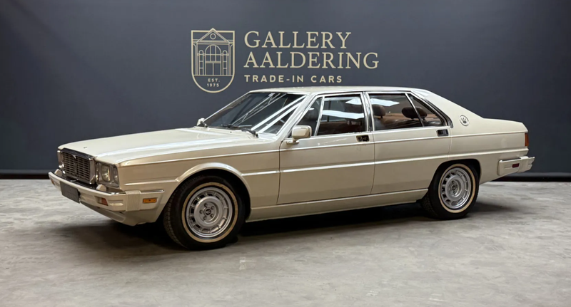 Price reduction!! from €15.750,- now €10.000,- This vehicle is part of Gallery Aaldering’s temporary Price Reduction Campaign. For a limited time, a carefully curated selection of our most distinguished classic and collector cars is being offered at specially reduced prices. Each vehicle embodies the spirit of motoring excellence chosen for its authenticity, heritage, and character. This campaign offers a unique opportunity for enthusiasts and collectors to acquire their next timeless automobile at an exceptional value, while enjoying the uncompromising quality and passion that define Gallery Aaldering since 1975. Don’t wait too long! This sale is only valid for one month and ends on December 15. Contact our team now and discover how this (classic) car could be yours. Your dream car is waiting. Trade-in car. Maserati launched the new Quattroporte in 1979, the third generation. Giorgietto Giugiaro, then working at Italdesign, designed the car, which from this generation onwards is again equipped with a V8 and has rear-wheel drive. The 4.9 liter V8 is actually a direct derivative of the engine found in the 450S racers of the late 1950s. In the Quattroporte, the power source produces 290 hp, which is released to the rear wheels via a three-speed automatic transmission. The interior is spacious and equipped with a lot of leather and a wood finish. The Maserati Quattroporte of this series is one of the last truly hand-built Maseratis and is therefore slowly but surely becoming a valued classic. This Quattroporte has stood still for years in a collection, being beautiful was enough. It is therefore advisable to take a good look at the technology before driving this special Italian sedan. The bodywork is quite good, with some imperfections in the paint here and there. The beautiful Campagnolo wheels are in neat condition, including the spare wheel that is present. The interior is quite neat, but time has not stood still on the comfortable seats of the Quattroporte. Yet almost all of this can be put back into good condition with the necessary ‘Tender, love and care’, as the English so beautifully say. THIS VEHICLE IS IN OUR STORAGE, VIEWING BY APPOINTMENT ONLY.