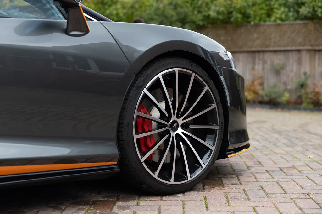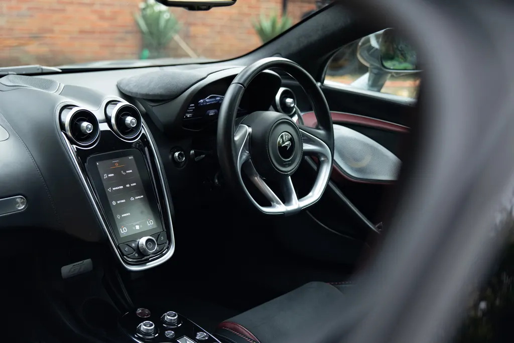 This example was specified in grey coachwork and is complemented by its orange pinstripes and decor. This superb looking GT is offered from a significant private collection and is presented in very good condition throughout. Having had four former keepers and showing circa 15,000 miles from new, this Mclaren has been maintained and cared for as one would expect and was purchased by the current vendor through Mclaren main dealer in Ascot. Offered with MoT records, a current MoT test certificate with no advisories valid until March 2026, a Mclaren Multi Point Check Inspection checklist carried out in October 2025 to the tune of £720 confirming the cars condition, and its current V5 registration document. This Mclaren GT would be at home in any serious collection and is ready to be enjoyed immediately. Interested parties should note that the private registration plate shown is to be retained by the vendor and a new, age-related registration issued instead. Consigned by Daniel Godin