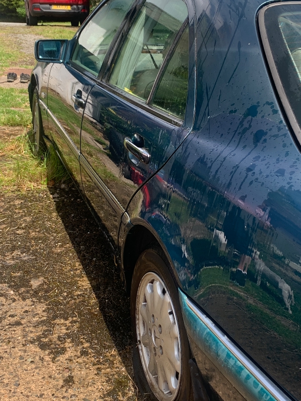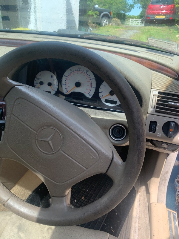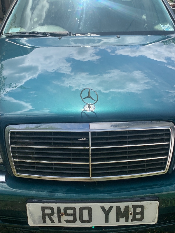 1997 (R reg) in Tourmaline Green with Cream leather seats and Cream carpets and genuine MB overmats. The car ran perfect prior to being SORNED 9 years ago and it has been started regularly until recently. The bodywork is solid with just a few small rust scabs and delamination of the some of the lacquer (both to be expected on this model) and there is absolutely no filler anywhere on the car. The headlong has started to sag by the rear window but other than that the car is in pretty good condition for 28 years old. To recommission I would suggest in needs filters, fresh fuel, brakes seeing to and a new battery. I’m only selling because I’ve lost my storage place and I don’t have anywhere to work on it myself, it’s far too good to scrap so I’m hoping a Merc enthusiast will buy her and give her a good new home.