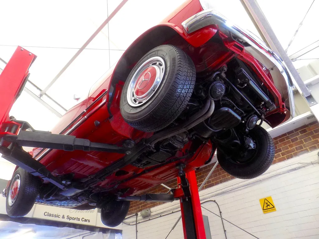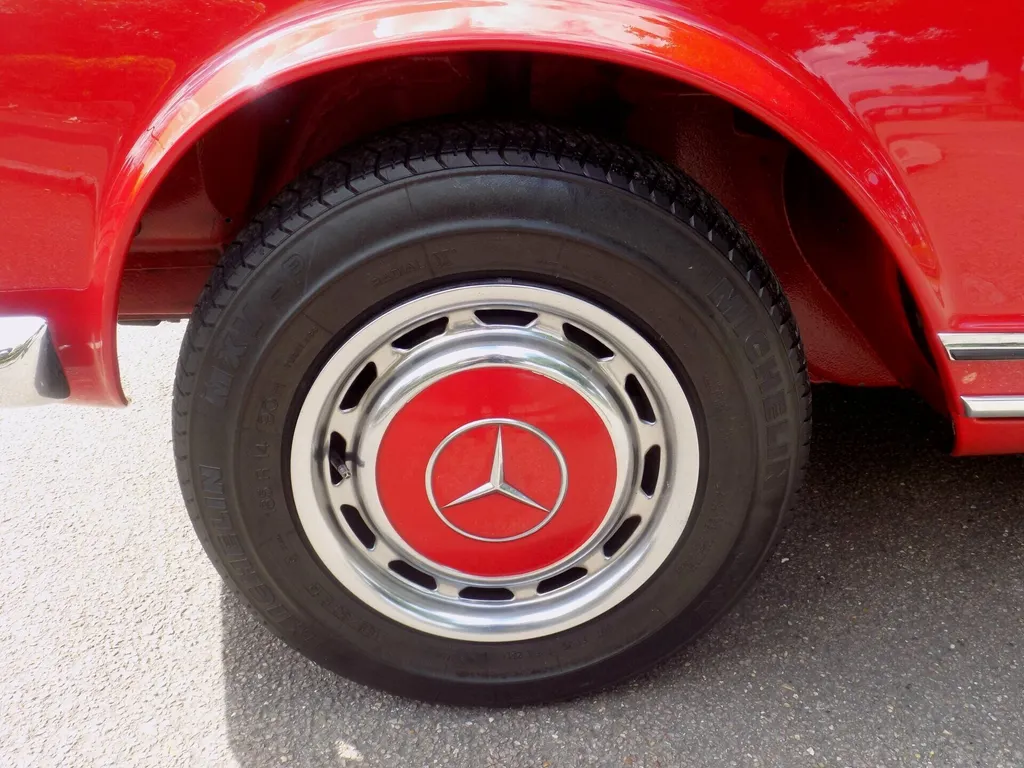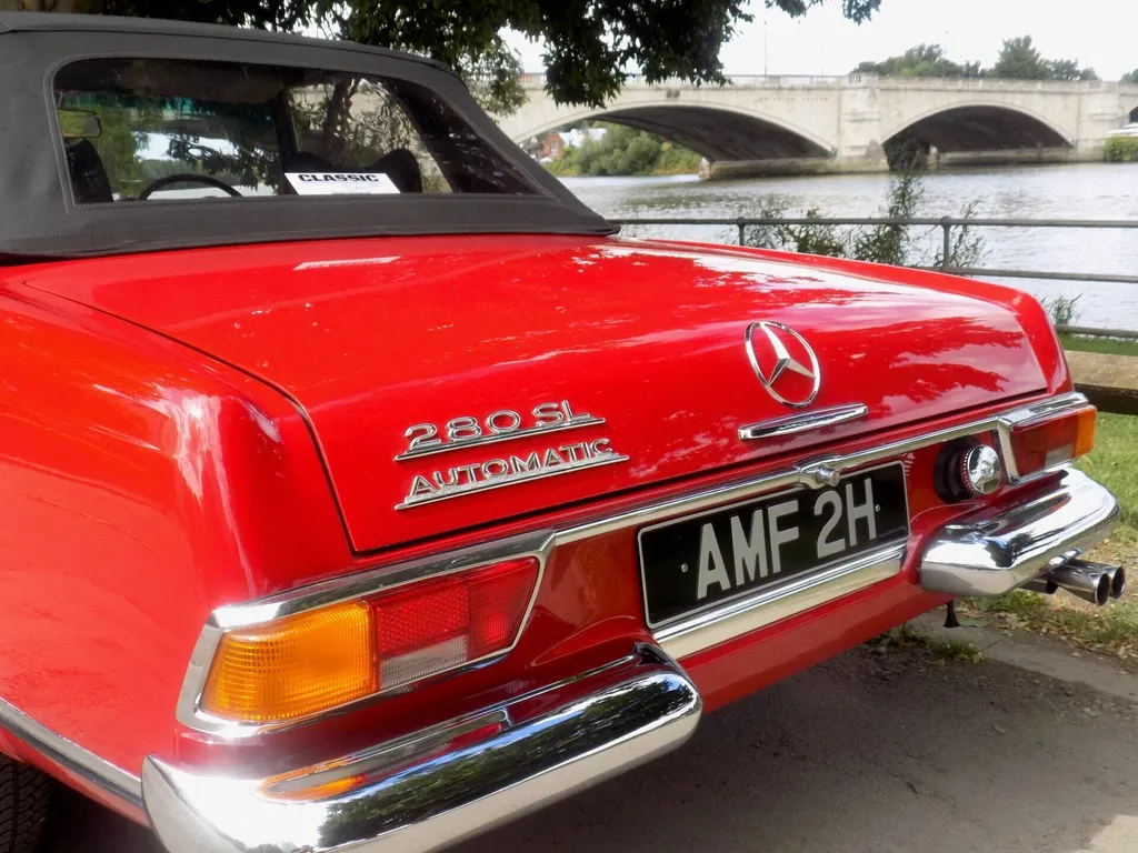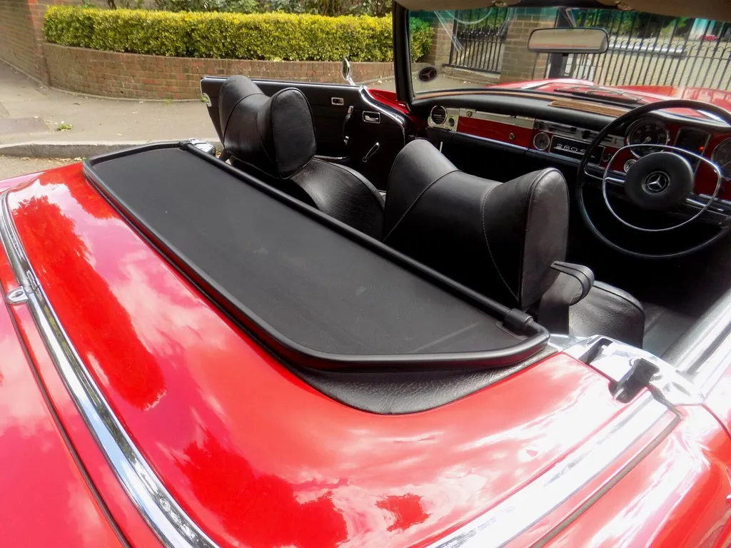 The Mercedes-Benz W113 is a two-seat luxury Roadster/Coupé which was introduced at the Geneva Motor Show in 1963 and the lead designers were Paul Bracq and Béla Barényi, who created its patented, the slightly concave hardtop, which inspired the ''Pagoda'' nickname. The styling of the front, with its characteristic upright Bosch 'fishbowl' headlights and simple chrome grille, dominated by the large three-pointed star in the nose panel, paid homage to the earlier 300 SL roadster. It was produced by Mercedes-Benz from 1963 right through to 1971 replacing both the 300 SL (W198) and the 190 SL (W121) and only 48,912 were built in total and initially launched as the 230 SL in 1963, then the 250 SL for one year only in 1967 and followed by the 280 SL from 1968 to 1971. All models were equipped with a Bosch mechanical fuel injected six cylinder engine and the bonnet, boot lid, door skins and rear hood cover were all made of aluminium to reduce weight. The comparatively short and wide chassis, combined with an excellent suspension, powerful brakes and radial tyres gave the W113 superb handling for its time and the 230 SL was a very successful Rally car during the 1960's. They were all were configured as a Coupé/Roadster with a Soft-Top and removable hardtop (an option on earlier cars) and a 2+2 known as the 250 SL 'California Coupé' was launched in 1967 before being replaced with the 280SL version. These models had a fold-down rear bench seat instead of the soft-top and came with a Hard Top only. Mercedes-Benz 280 SL ‘Pagoda’ (1969) – UK RHD 14'' Steel Wheels, Black Mohair Soft Top, Factory Hard Top, Folding Roof, MB Tex Trim, Rubber Over-Mats, Front Disc Brakes, Rear Drum Brakes, Rear Disc Brakes, Power Assisted Brakes, 4 Speed Automatic Gearbox, Rear Wheel Drive, Power Assisted Steering, Hard Top Stand & Cover, Historic Vehicle, Original Tool Kit, Road Tax & MOT Exempt, ULEZ COMPLIANT, Bosch Mechanical Fuel Injection, 4-Wheel Disc Brakes, Independant Suspension, Power Assisted Steering, Heated Glass Rear Window, Leatherette, Original Steering Wheel