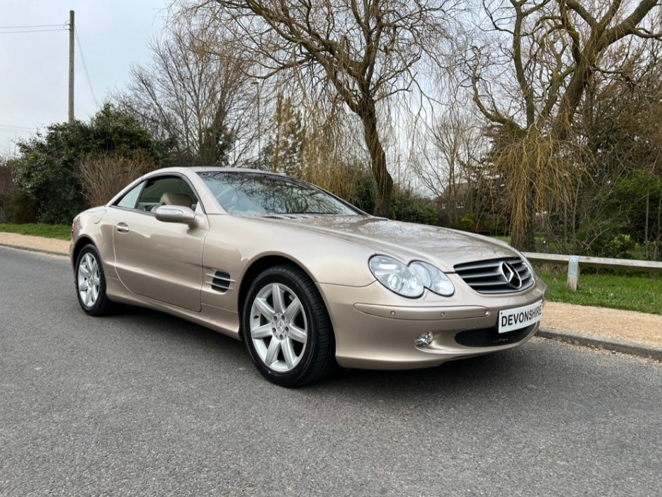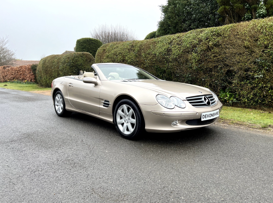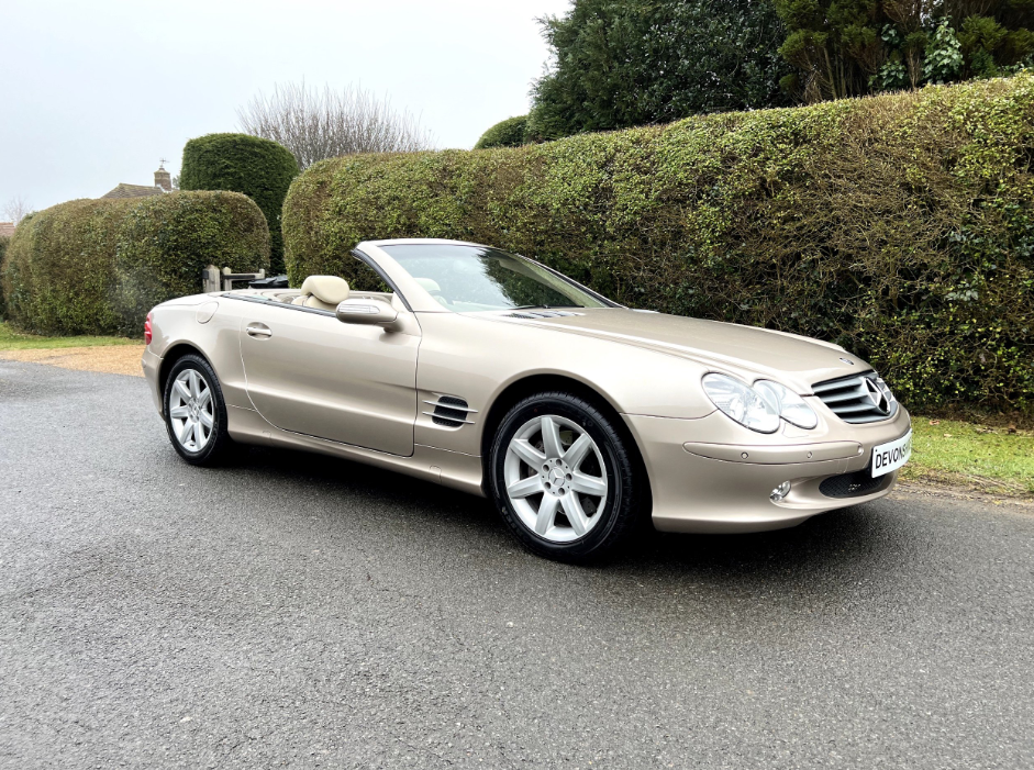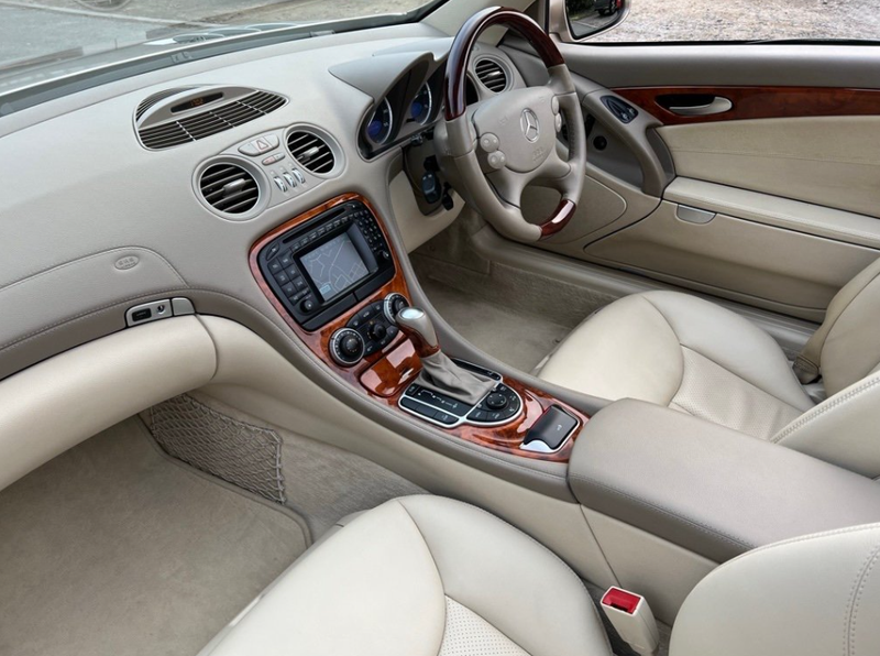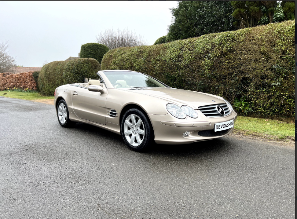 Mercedes Benz SL500 V8 Convertible 2004 7-Speed Automatic. ONLY 17000 MILES FROM NEW. Finished in Rare Metallic Desert Silver with Full Champagne Leather Electric Heated Memory Seats. This Truly Magnificant Example was Sold New by MB of Sheffield on 22-04-2004 to it's First Owner. It was then Sold to It's 2 Owner in 2009 until recently. Factory Option's Include: Front/Rear Park Distance, Colour Sat/Nav with Multi CD HiFi, Xenon Headlights, Electric Memory Heated Seats, Wood Leather Steering Wheel, Special Order Leather Interior Pack, Cruise Control, Walnut Interior Pack, Electric Steering Column, Power Fold Mirrors. 2 Keys With Full Book pack. Full Service History and Full MOT History. This Car is without question we believe the Finest Example Available and is already a Rare Modern Classic. For More Detailed Information Please Call or email.