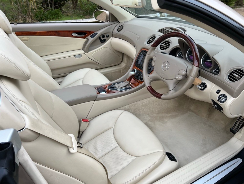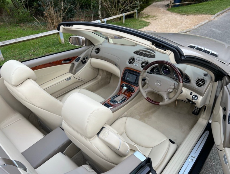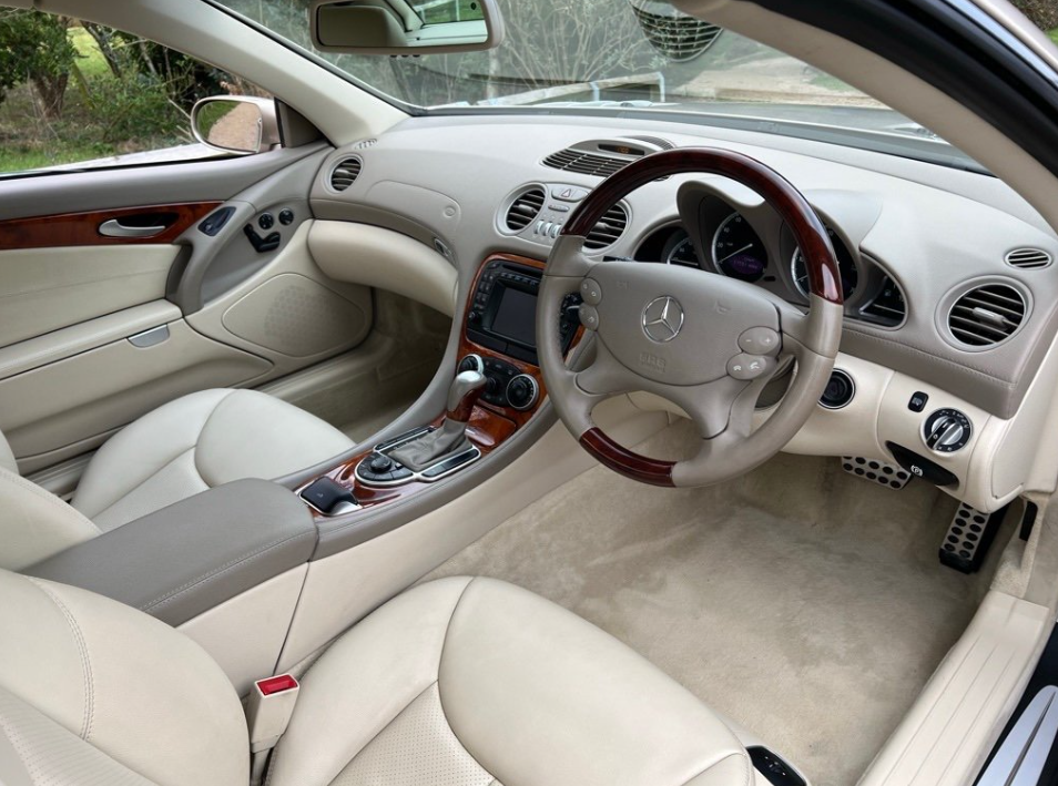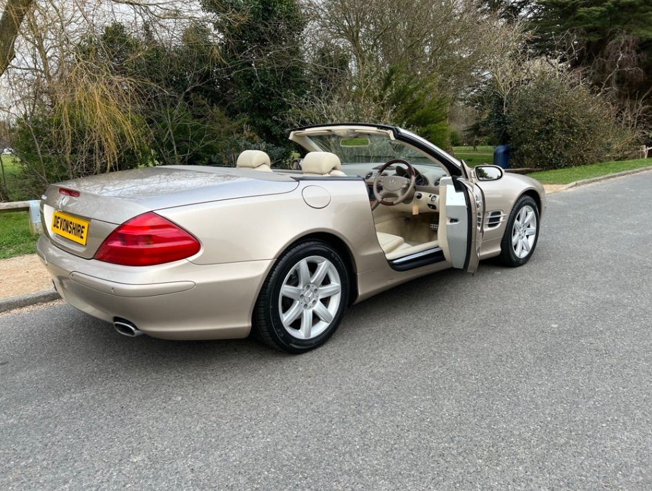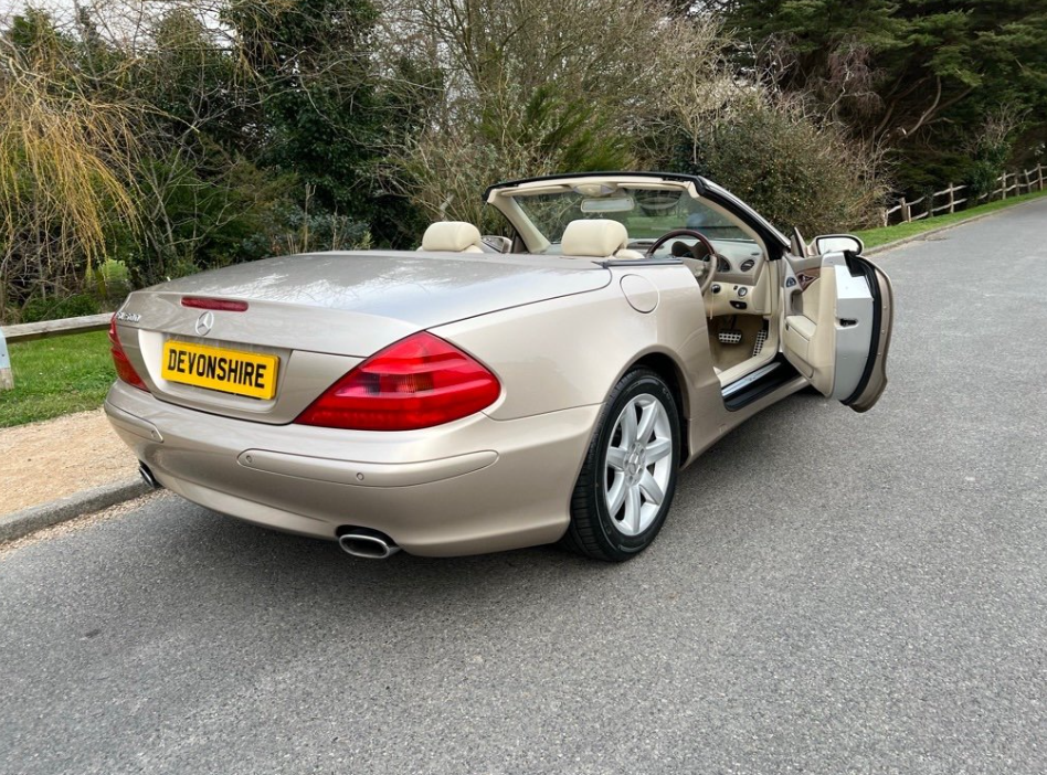 Mercedes Benz SL500 V8 Convertible 2004 7-Speed Automatic. ONLY 17000 MILES FROM NEW. Finished in Rare Metallic Desert Silver with Full Champagne Leather Electric Heated Memory Seats. This Truly Magnificant Example was Sold New by MB of Sheffield on 22-04-2004 to it's First Owner. It was then Sold to It's 2 Owner in 2009 until recently. Factory Option's Include: Front/Rear Park Distance, Colour Sat/Nav with Multi CD HiFi, Xenon Headlights, Electric Memory Heated Seats, Wood Leather Steering Wheel, Special Order Leather Interior Pack, Cruise Control, Walnut Interior Pack, Electric Steering Column, Power Fold Mirrors. 2 Keys With Full Book pack. Full Service History and Full MOT History. This Car is without question we believe the Finest Example Available and is already a Rare Modern Classic. For More Detailed Information Please Call or email.