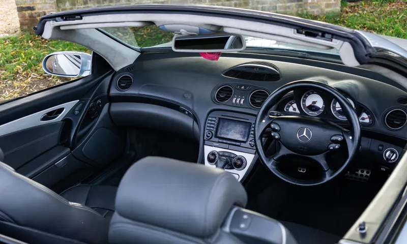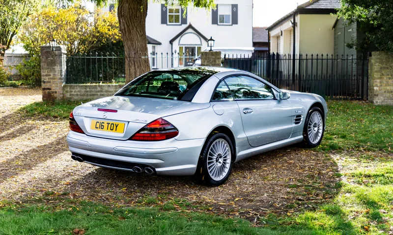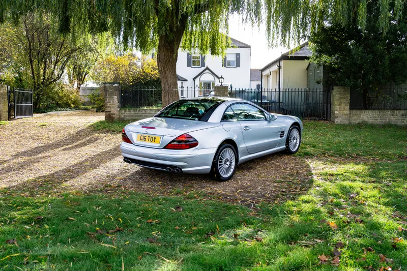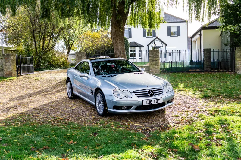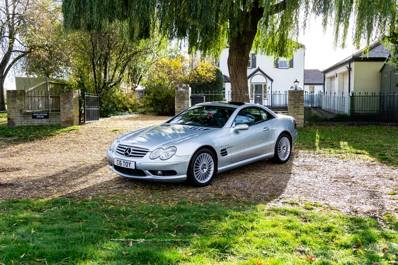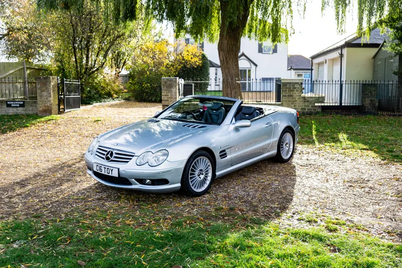 This stylish Mercedes-Benz was originally registered in September 2004 and presents extremely well in silver metallic coachwork with a contrasting black leather interior. This powerful sports car benefits from the highly desirable glass panoramic roof and a high level of equipment including air conditioning and alloy wheels. We are informed that this head turning convertible is a joy to drive and is offered to auction with a V5C registration document and an MoT test certificate valid until September 2026. The service file that accompanies this SL55 is described as being 'as thick as a bible'. This sensibly estimated Mercedes is ready to continue turning heads with a new owner. Consigned by Dominic Lake