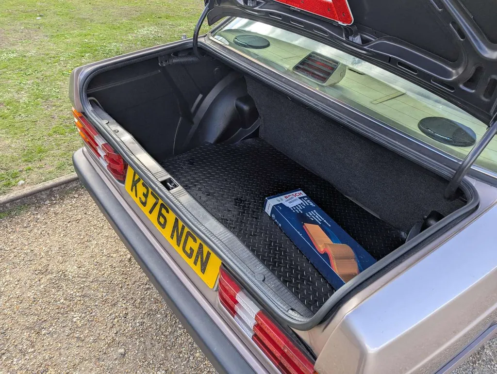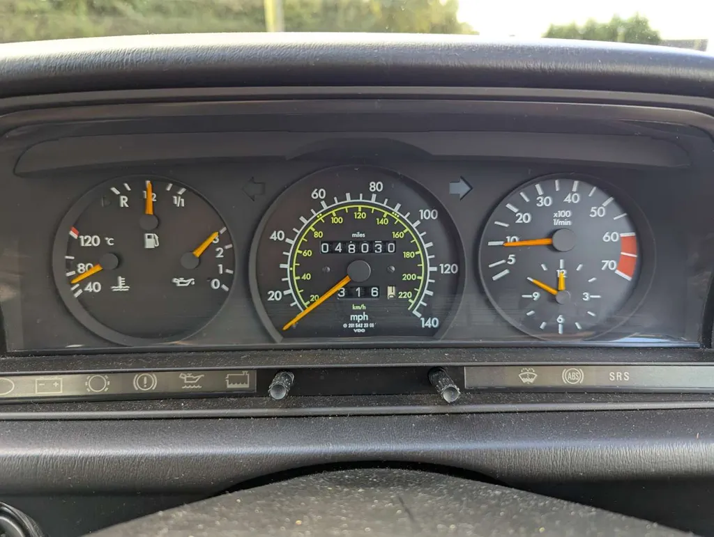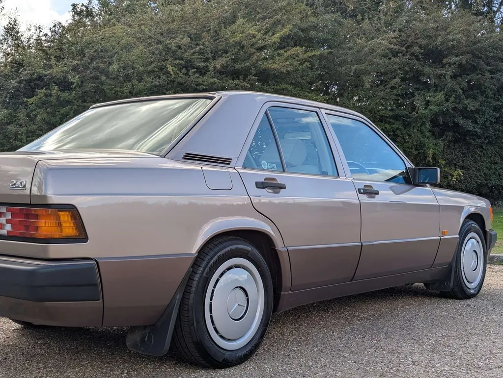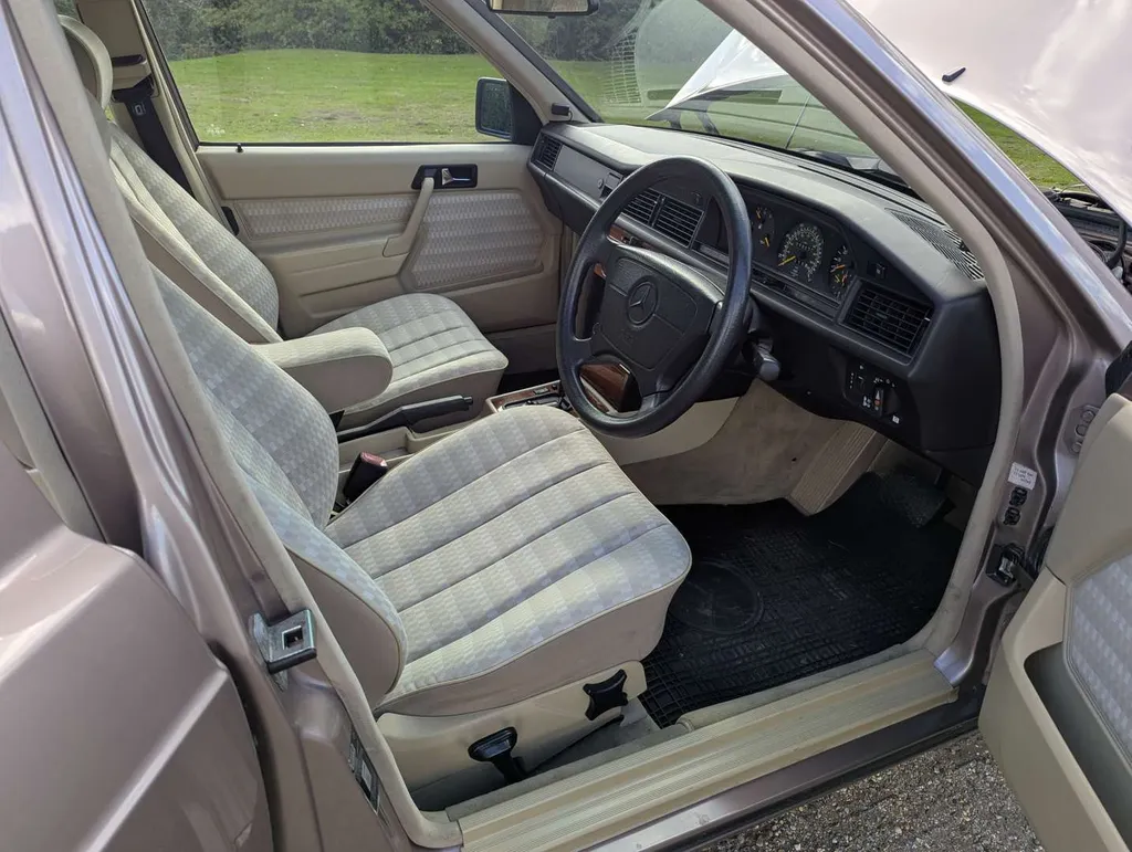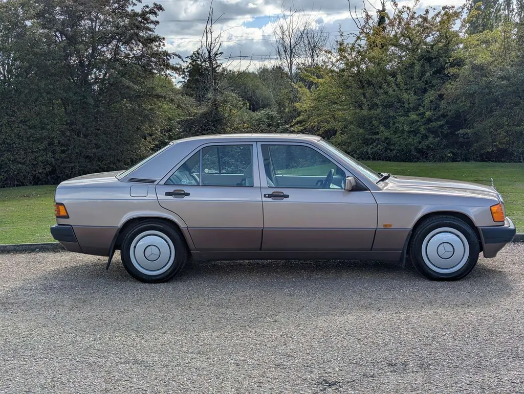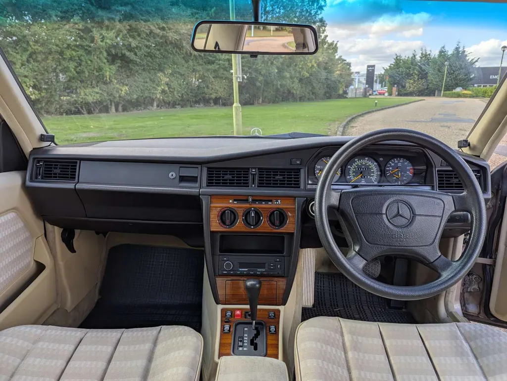 1997cc, automatic. This is an excellent example of the Mercedes-Benz 190E, finished in two-tone gold with a beige cloth interior. Its odometer is showing just 48,030 miles, and it comes with an advisory-free MoT to 25th June 2026. The interior features a discrete (single-DIN) Blaupunkt CD player with DAB, and original equipment includes electric sunroof, driver's airbag and electric windows front and rear.The car was first registered on 7th May 1993, and the current V5C shows 6 previous owners. It is accompanied by a large collection of MoTs going back to 1997, a pair of keys, old V5Cs, tax discs, original owner's manual pack, and a thick stack of maintenance receipts covering the last 10-15 years. One sheet shows that in January this year, at 47,010 miles, the car received an gearbox oil replacement, plus an engine oil service and fresh ignition components. Not specified