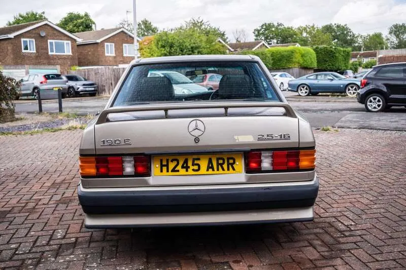 This lot will be auctioned via Iconic Auctioneers, Online Auction - 9th October on Thursday the 9th of October. Background. Introduced in 1988 as an evolution of the earlier 2.3-16, the Mercedes-Benz 190E 2.5-16 was developed in collaboration with Cosworth as part of Mercedes’ ambition to compete in Group A touring car racing. With a larger displacement engine producing around 195hp, improved mid-range torque and revised suspension tuning, the 2.5-16 offered both sharper performance and greater refinement. The model served as the basis for Mercedes’ successful DTM cars of the late 1980s and early 1990s, cementing its place as a true homologation special. The car Finished in gleaming Smoke Silver, this right-hand drive automatic 190E 2.5-16 was originally purchased in the UK. This example carries notable provenance, having been owned by Mike Hall, chief designer and director at Cosworth throughout the 1960s to the 1980s. During his career, Hall was instrumental in the development of the 2.3-16 and 2.5-16 engines for the 190E, making this particular car a highly significant example of the model. The car presents with low ownership and mileage. The bodywork remains tidy overall, with only a few age-related marks, while the interior continues to present well. It is accompanied by a comprehensive service history, supported by many MOT certificates and invoices for work carried out. This documentary record provides confidence in both the maintenance and long-term care of the car. It has been in the current ownership since 2021. The factory specification includes an electric sliding sunroof with tilting device, a top-tinted windscreen, headlamp washers, heater and ventilation controls, a heated rear screen, centre console battery voltage and oil temperature gauges, and electric windows. This Mercedes-Benz 190E 2.5-16 Cosworth is a particularly well-preserved example of the sought-after DTM homologation special. Offered with a comprehensive early maintenance history, timeless styling and a lively Cosworth-developed engine, it would make a charismatic companion for retro daily driving, weekend outings and visits to car shows alike. Photos: Professional Seller: Private Location: Bedfordshire