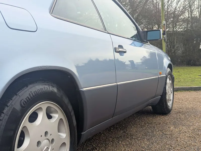 2199cc, auto. This Mercedes 220 CE (W124) is finished in Pearl Blue, and has been with its present keeper for 14 years. Its grey leather interior is equipped with a sunroof, and there is some spare window glass in the boot. The odometer is reading 208,958 miles.It comes with various old MoT certificates and tax discs, and a good collection of old maintenance receipts, with a service book indicating 12 services up to 148,376 miles in 2007. A digital service record printout covers 1995-1999, and there is a hand-written record of 4 services since 2015, with engine and transmission oils being replaced in 2019 at 206k miles. We're told that the car also received some fresh paintwork in 2018. It was first registered on 1st August 1993.The last MoT expired in 2021, and the vendor advises that there is a slight, intermittent misfire from the 2.2-litre petrol engine, so recommissioning may be required. Not specified