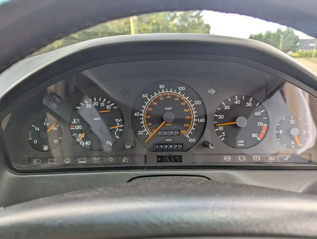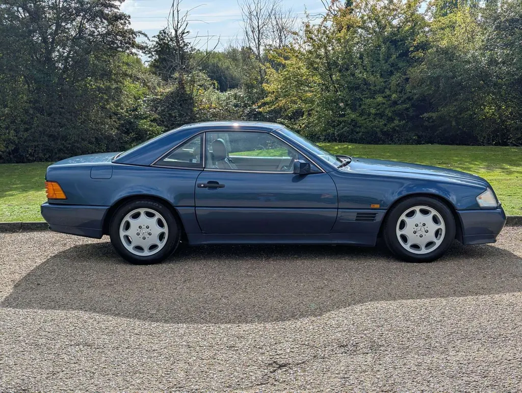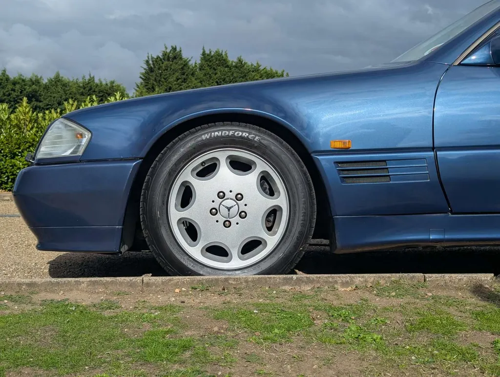 2960cc, automatic. This R129 Mercedes 300SL-24, equipped with the 24-valve M104 straight-six engine, is finished in Avantgarde Blue with a tan leather interior, and was first registered on 3rd February 1992. It comes with a good collection of maintenance receipts going back to 2005, original pack of owners' handbooks, and a stack of MoTs from between 1995 and 2025. The car has been tested almost every year, without receiving a single MoT advisory within the last decade, and its current certificate will remain valid to 22nd May 2026. The V5C is present, and the odometer is showing 169,072 miles. Not specified