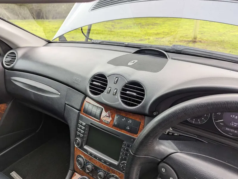 This well-presented Mercedes CLK 200 is showing 56,131 miles on its odometer, having been with the same owner for nearly 12 years. It comes with a long MoT to 15th January 2027, and the service book records 10 services up to 56,129 miles (only 2 miles ago) on 15th January 2026. A set of 4 new tyres were fitted at the same time.The car has a black leather interior featuring parking sensors, cruise control and factory satnav system. It comes with a good collection of maintenance receipts, one indicating that its 2016 service included a gearbox oil change. Spare keys, handbook pack and satnav CD are also present.First registration was on 29th March 2008, and the V5C indicates 4 former keepers. Not specified