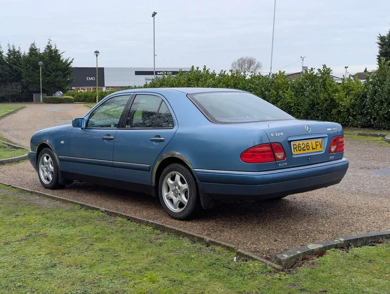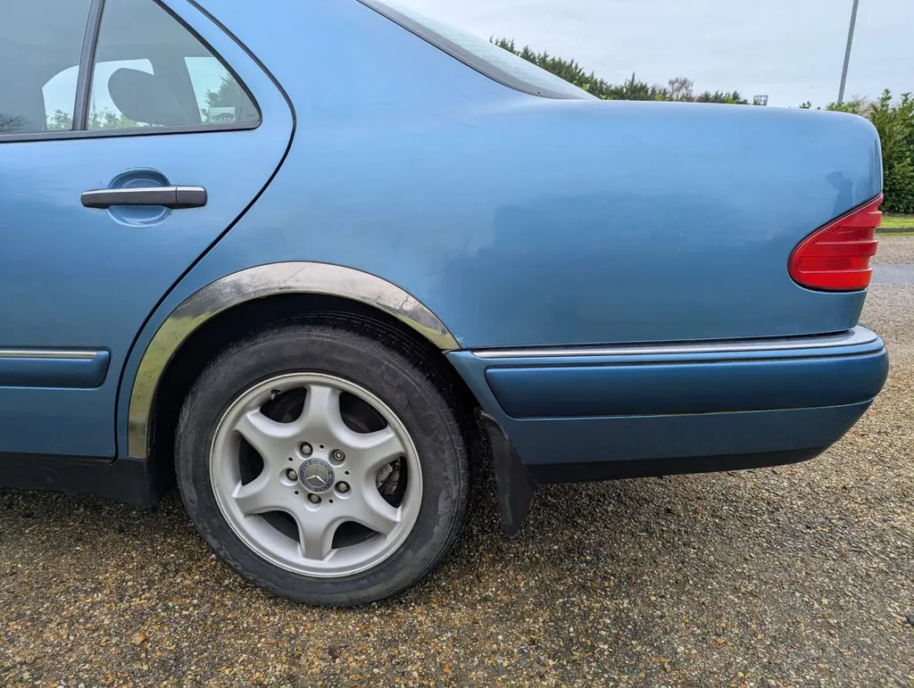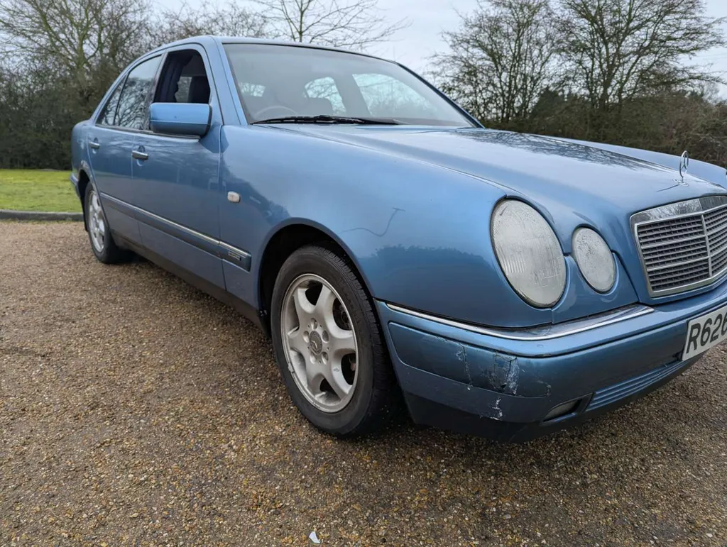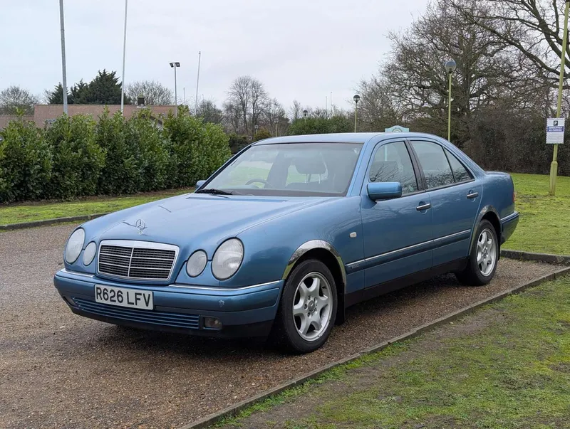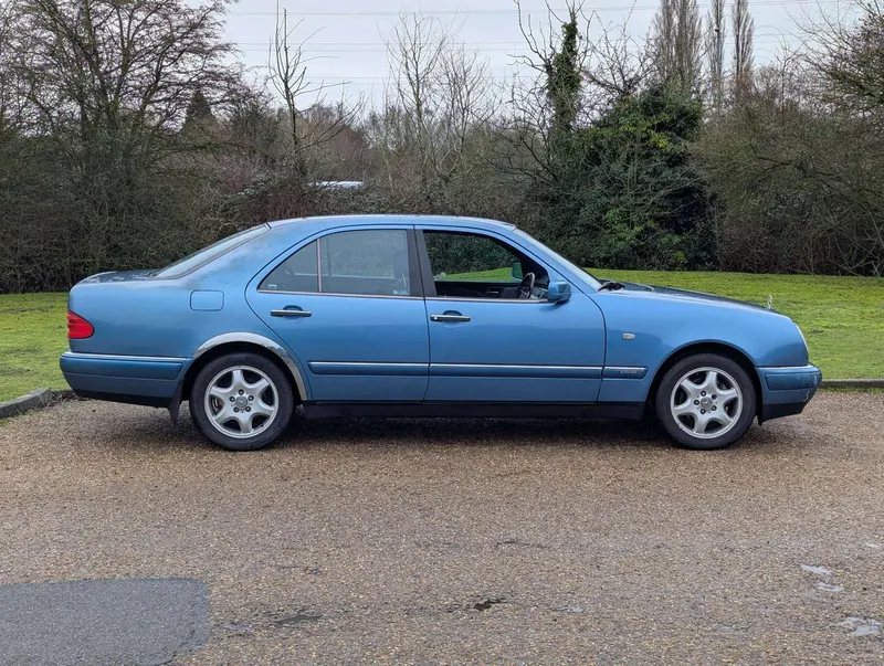 The Mercedes-Benz E200 (W210) Elegance has an MoT to 15th March 2026, with 84,833 miles showing on the odometer. Contrary to what is stated on the boot, this is 2.0-litre petrol model, with five-speed automatic transmission, finished in the rare shade of Aquamarine Blue. The blue fabric interior is equipped with cruise control, electric mirrors and windows. The vendor believes there are fewer than 100 examples with this specification left on the road. The car was first registered on 2nd September 1997 to a buyer in Lancashire, and the current V5C indicates 3 former keepers. It has been MoT tested most years of its life, as can be seen from the large history file of invoices and MoT certificates. These are accompanied by an original Mercedes brochure, and the handbook pack which contains service booklets with 12 stamps (including PDI) up to 74,463 miles in 2017.The vendor advises that one of the front wings has been replaced and professionally resprayed, and the off-side rear has received some paintwork that will need redoing. Two spare keys are present. Not specified