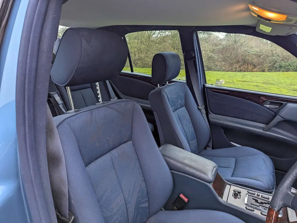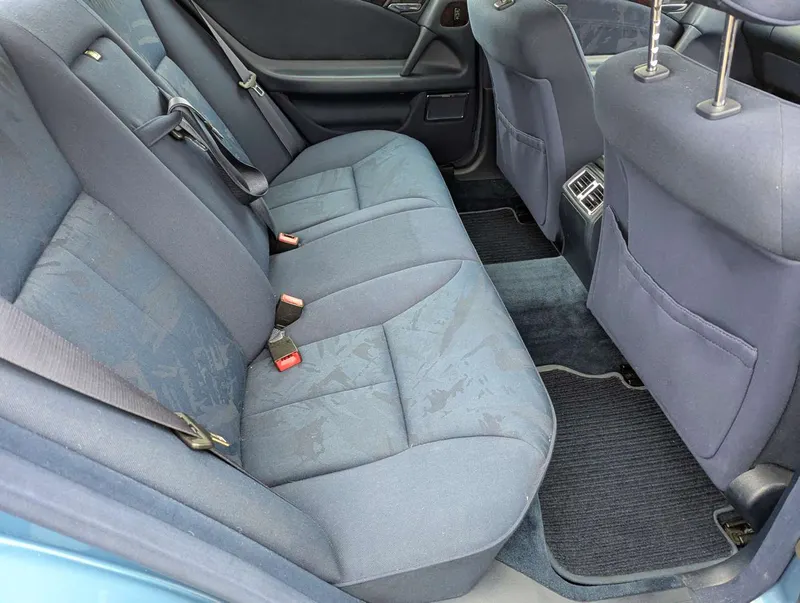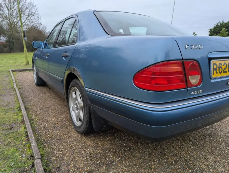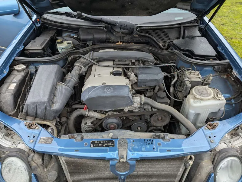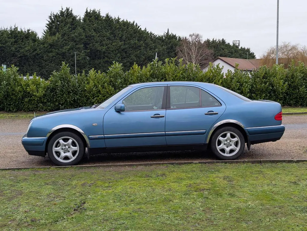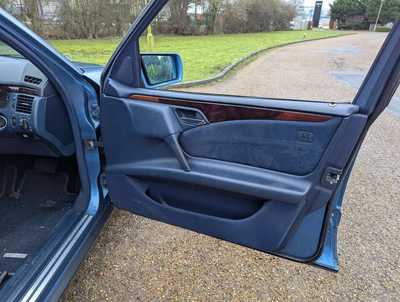 The Mercedes-Benz E200 (W210) Elegance has an MoT to 15th March 2026, with 84,833 miles showing on the odometer. Contrary to what is stated on the boot, this is 2.0-litre petrol model, with five-speed automatic transmission, finished in the rare shade of Aquamarine Blue. The blue fabric interior is equipped with cruise control, electric mirrors and windows. The vendor believes there are fewer than 100 examples with this specification left on the road. The car was first registered on 2nd September 1997 to a buyer in Lancashire, and the current V5C indicates 3 former keepers. It has been MoT tested most years of its life, as can be seen from the large history file of invoices and MoT certificates. These are accompanied by an original Mercedes brochure, and the handbook pack which contains service booklets with 12 stamps (including PDI) up to 74,463 miles in 2017.The vendor advises that one of the front wings has been replaced and professionally resprayed, and the off-side rear has received some paintwork that will need redoing. Two spare keys are present. Not specified