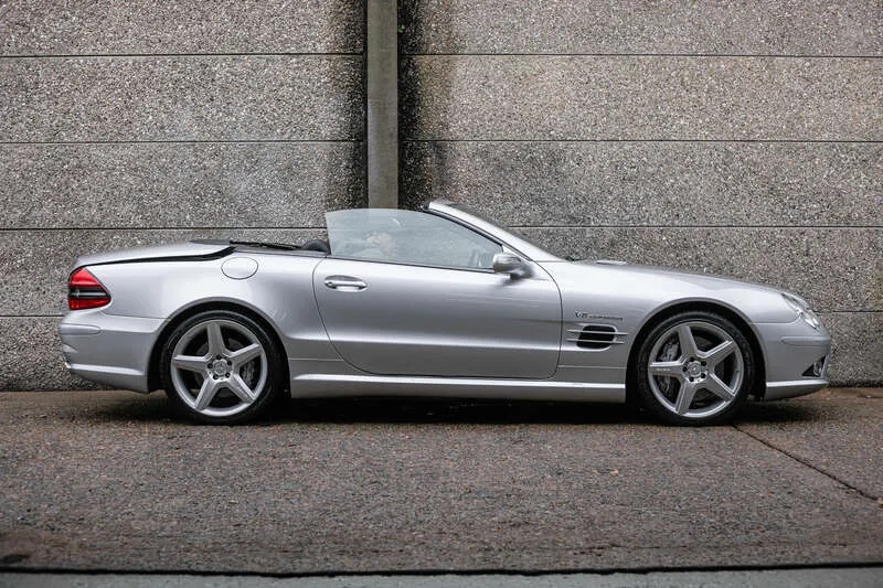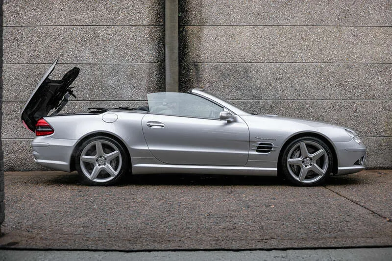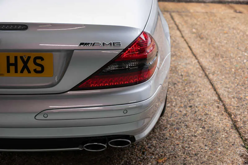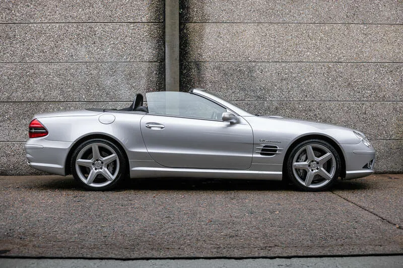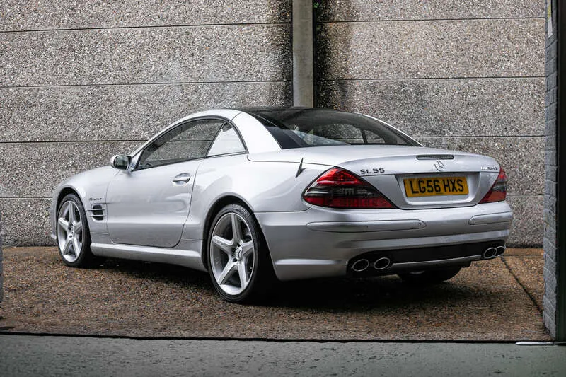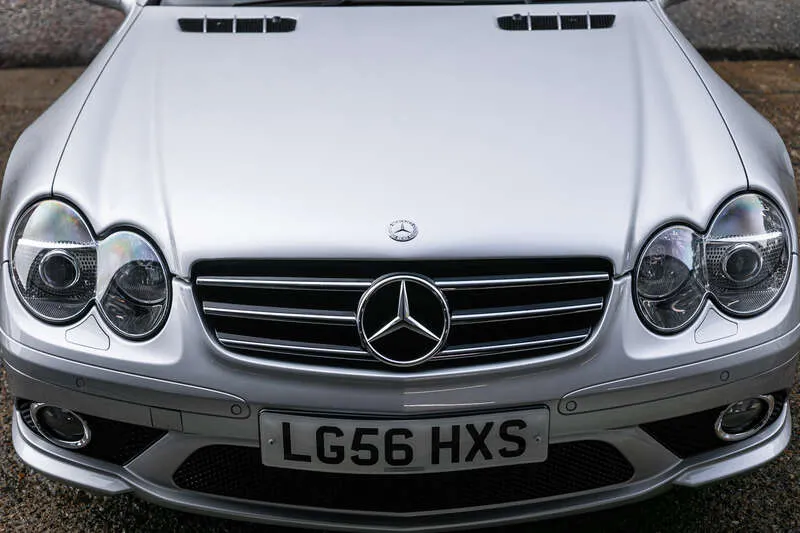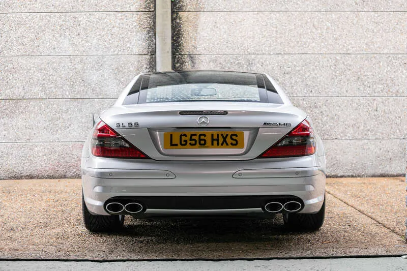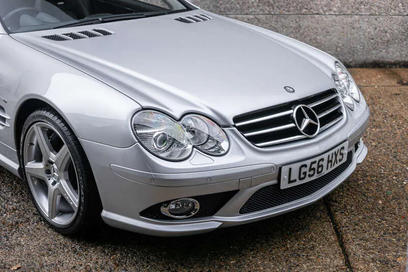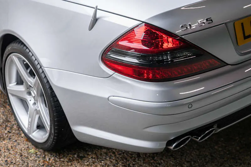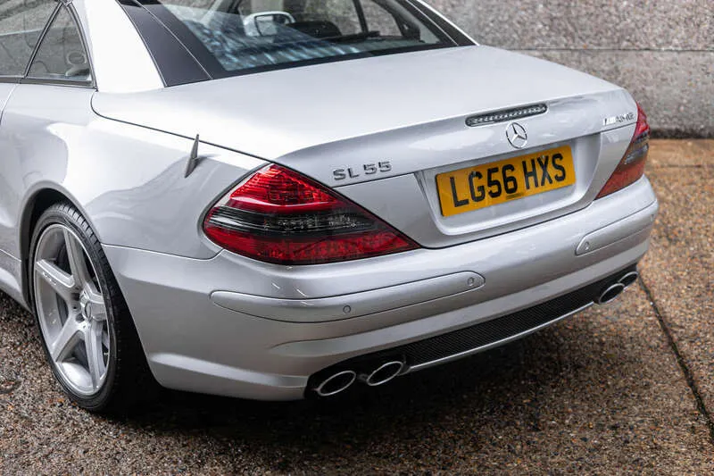 This lot will be auctioned via Iconic Auctioneers, The Iconic Sale at the NEC Classic Motor Show 2025 on Saturday the 8th of November, NEC, Birmingham, B40 1NT. Please note this lot is subject to vendor approval and may change. First registered in late 2006 on a 56-plate, this Mercedes-Benz SL55 AMG represents one of the finest high-performance roadsters of its era, combining effortless V8 power, refined grand touring ability and the engineering excellence of Mercedes’ flagship SL platform. At its heart lies the hand-built 5.4-litre supercharged AMG V8 delivering immense performance through a 5-speed Tiptronic automatic gearbox, while the retractable vario-roof transforms it from a refined coupé to an open-top sports car at the touch of a button. Finished in timeless Iridium Silver Metallic with black leather upholstery, grey carpets and a black soft top, this example benefits from desirable factory options including carbon fibre interior trim, Panoramic glass roof, COMAND navigation with phone integration, BOSE sound system, TV tuner, CD player, automatic climate-control and Parktronic parking sensors. Additional equipment includes Bi-Xenon headlamps with cornering light function and adaptive brake lights, electric folding mirrors, heated windscreen wash system, Speedtronic cruise control, tyre pressure monitoring system, alarm/immobiliser and 18" AMG alloy wheels with silver callipers. This SL55 AMG has clearly been cherished from new, with the service book documenting a full Mercedes-Benz main dealer service history at MB Brooklands between 2008 and 2012, followed by further main dealer servicing up until 2021. Most recently, it was serviced by respected Mercedes specialist Waterhouse of Braintree on 6th February 2024 at just 12,982 miles. The current mileage stands at an exceptionally low 13,799, the MOT is valid until April 2026 and the car is accompanied by its original dealer book pack, leather wallet, both keys and the V5C registration document. Low-mileage, meticulously maintained and highly specified, this SL55 AMG is a superb example of the model and a compelling proposition for collectors and enthusiasts alike – a modern classic performance roadster in outstanding condition.