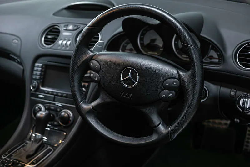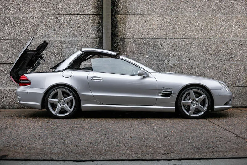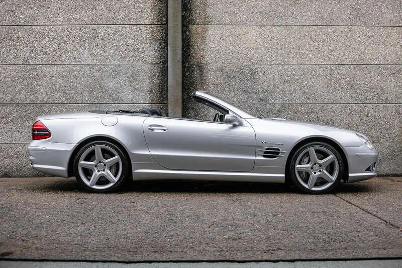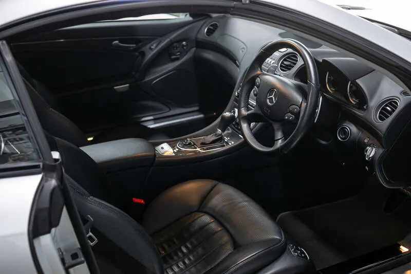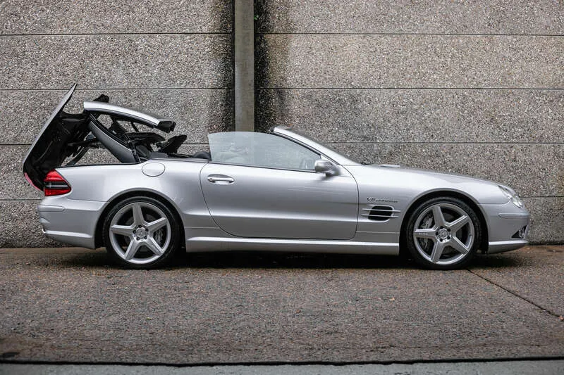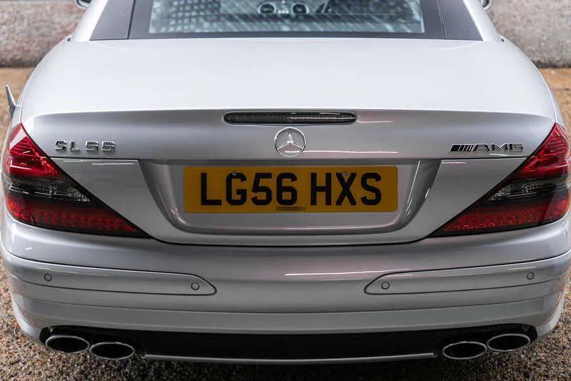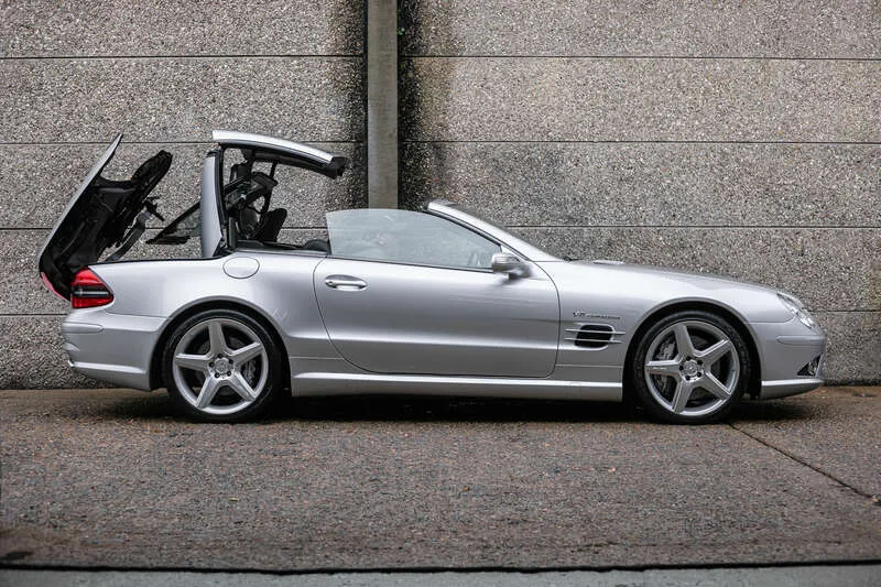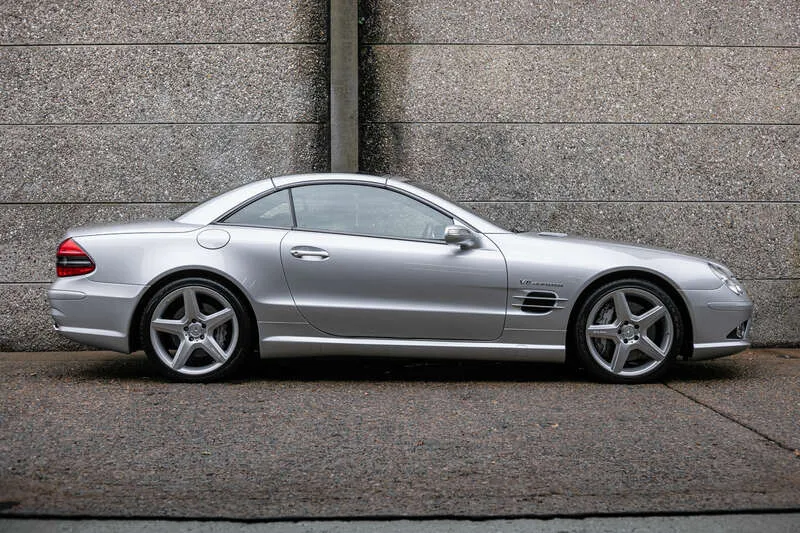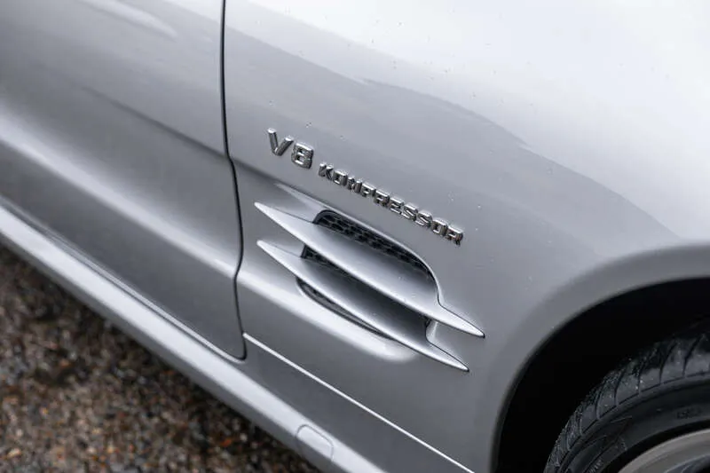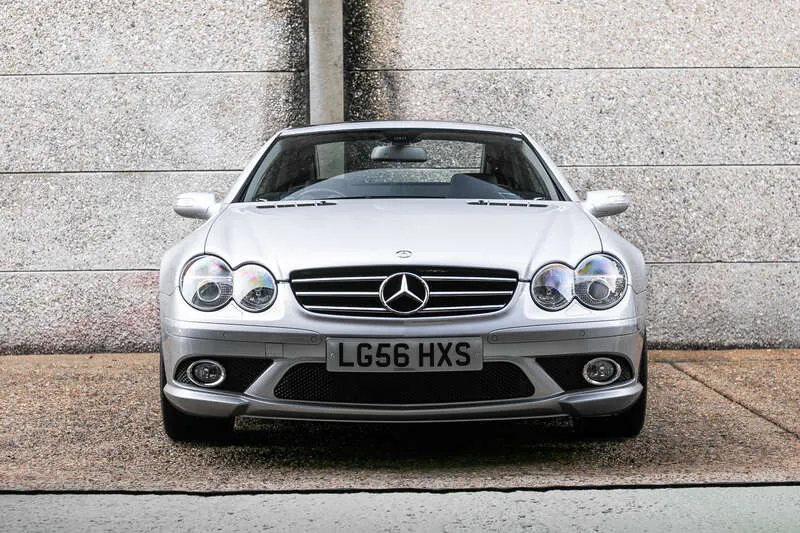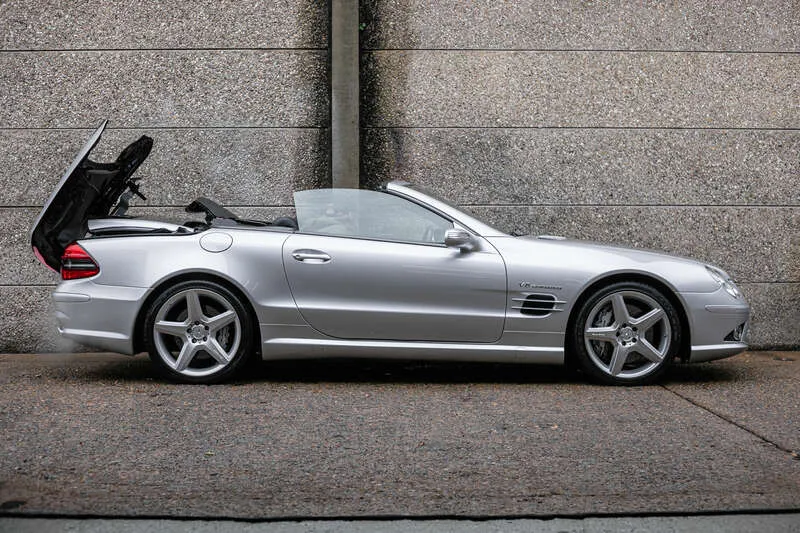 This lot will be auctioned via Iconic Auctioneers, The Iconic Sale at the NEC Classic Motor Show 2025 on Saturday the 8th of November, NEC, Birmingham, B40 1NT. Please note this lot is subject to vendor approval and may change. First registered in late 2006 on a 56-plate, this Mercedes-Benz SL55 AMG represents one of the finest high-performance roadsters of its era, combining effortless V8 power, refined grand touring ability and the engineering excellence of Mercedes’ flagship SL platform. At its heart lies the hand-built 5.4-litre supercharged AMG V8 delivering immense performance through a 5-speed Tiptronic automatic gearbox, while the retractable vario-roof transforms it from a refined coupé to an open-top sports car at the touch of a button. Finished in timeless Iridium Silver Metallic with black leather upholstery, grey carpets and a black soft top, this example benefits from desirable factory options including carbon fibre interior trim, Panoramic glass roof, COMAND navigation with phone integration, BOSE sound system, TV tuner, CD player, automatic climate-control and Parktronic parking sensors. Additional equipment includes Bi-Xenon headlamps with cornering light function and adaptive brake lights, electric folding mirrors, heated windscreen wash system, Speedtronic cruise control, tyre pressure monitoring system, alarm/immobiliser and 18" AMG alloy wheels with silver callipers. This SL55 AMG has clearly been cherished from new, with the service book documenting a full Mercedes-Benz main dealer service history at MB Brooklands between 2008 and 2012, followed by further main dealer servicing up until 2021. Most recently, it was serviced by respected Mercedes specialist Waterhouse of Braintree on 6th February 2024 at just 12,982 miles. The current mileage stands at an exceptionally low 13,799, the MOT is valid until April 2026 and the car is accompanied by its original dealer book pack, leather wallet, both keys and the V5C registration document. Low-mileage, meticulously maintained and highly specified, this SL55 AMG is a superb example of the model and a compelling proposition for collectors and enthusiasts alike – a modern classic performance roadster in outstanding condition.