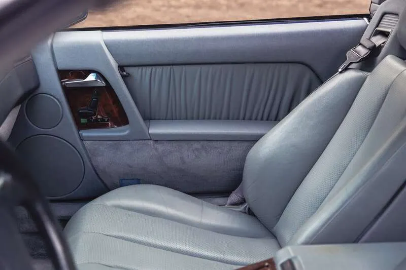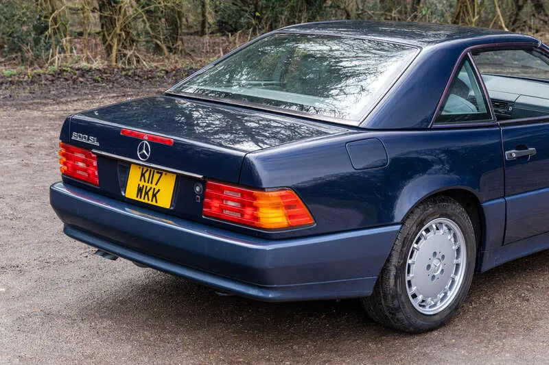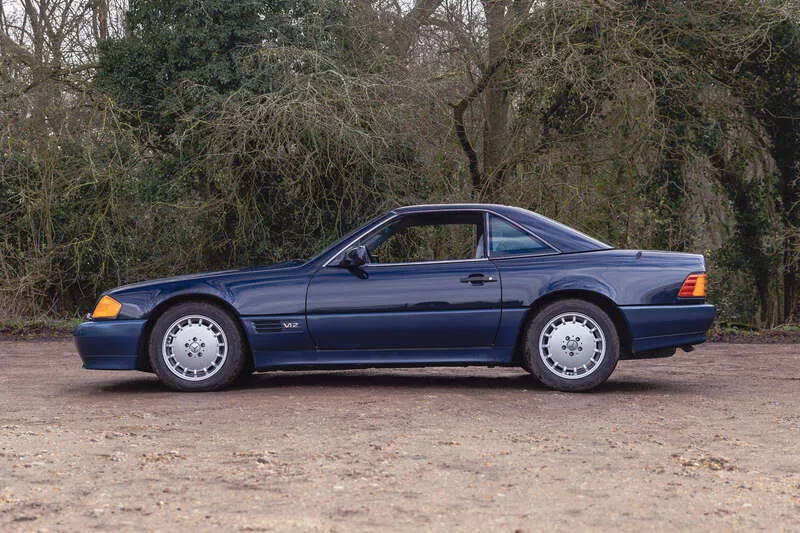 This lot will be auctioned via Iconic Auctioneers, The Classic Sale at the Practical Classics Classic Car and Restoration Show 2026 on Saturday the 21st of March - Sunday the 22nd of March, NEC, Birmingham, B40 1NT. The SL600 was the flagship of the R129 SL range, pairing luxury and performance in a V12-powered roadster that has become a sought-after modern classic First registered in 1993, this impressive example was imported from Santa Barbara, California by its current owner in 2018 Finished in Azurite Blue with a colour-matched removable hard-top and blue soft-top, over a grey leather-trimmed interior Powered by M-B's 6.0-litre V12 producing 389bhp and 420lb/ft of torque, delivering smooth and effortless performance Factory specification includes self-levelling suspension with adaptive damping, boot-mounted CD changer, headlamp washers and wipers, automatic climate control, cruise control, electric mirrors all round and electrically adjustable heated front seats with three-position memory Supplied with original handbooks, service record, paperwork in its current ownership, the current MOT valid until June showing no advisories, and a spare wheel A refined yet engaging V12 roadster, the SL600 makes a stylish addition to any collection and an appealing choice for relaxed weekend driving, fair-weather cruising, or car club events
