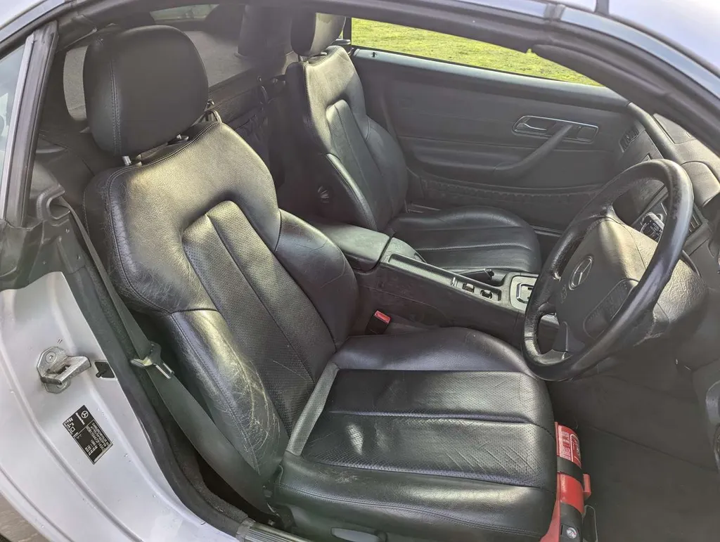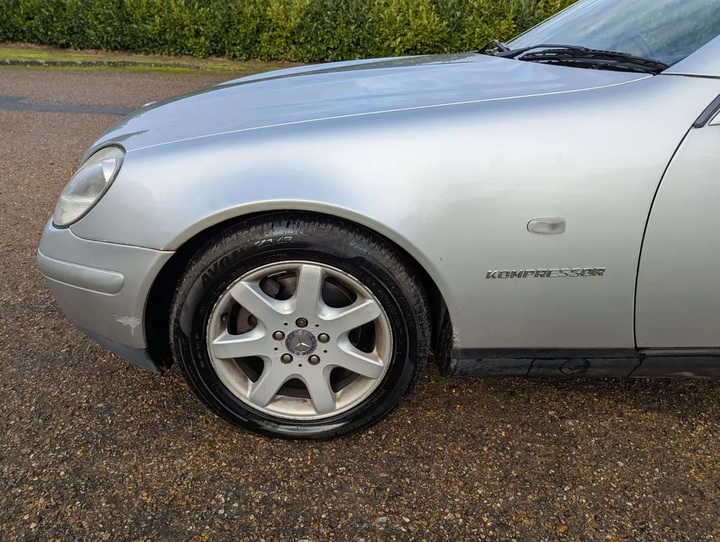 2295cc. The vendor of this Mercedes SLK 230 describes it as a “very honest example of a sough-after, pre-facelift model" and assures us it is “fully functional and drives without issue”. The latest MoT was passed with no advisories, and remains valid to 7th December 2026. The car is finished in Brilliant silver with a black leather interior featuring heated seats, and its odometer is showing 82,325 miles. It comes with a few maintenance receipts (2016-21), a spare key, and a service logbook containing 8 stamps up to 2015 (mileage unrecorded).Receipts suggest the SLK was last serviced at 77,785 miles (under 5k miles ago) in 2021, and the online MoT record shows that it has been tested almost every year of its life. The car was first registered on 1st September 1999, and its V5C indicates 5 registered owners Not specified