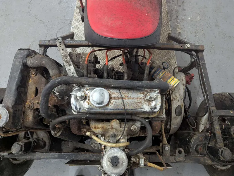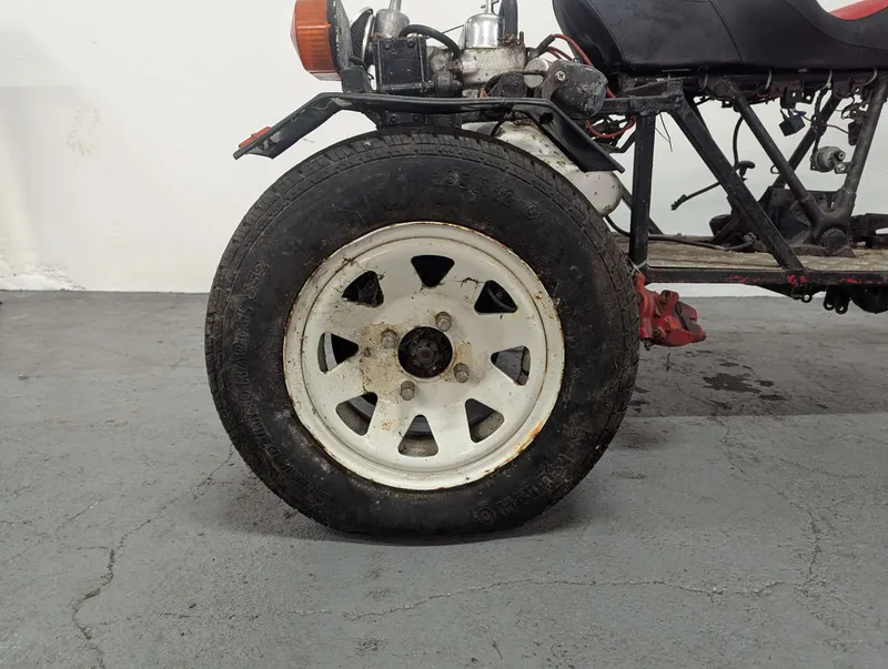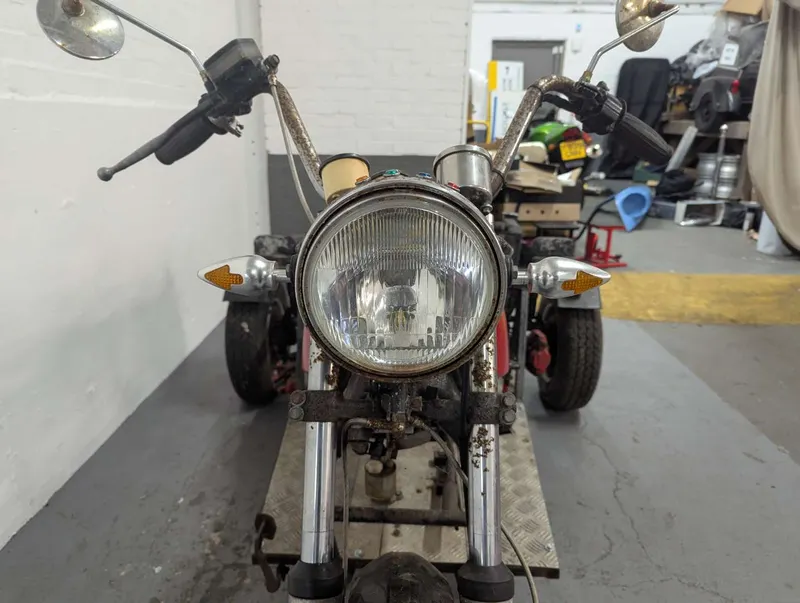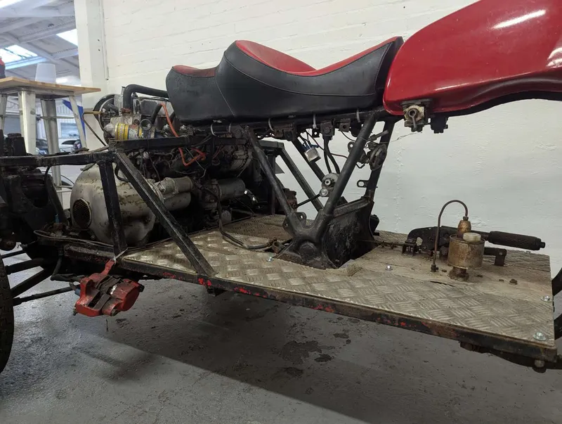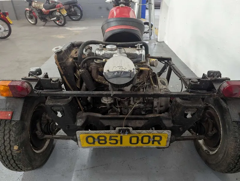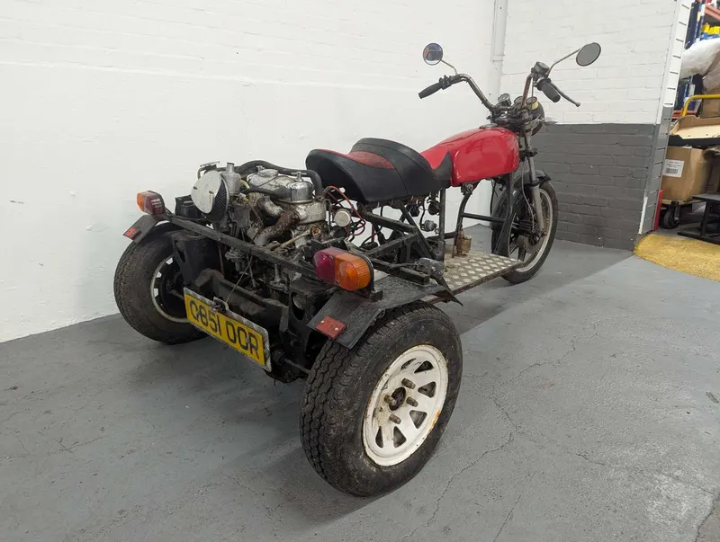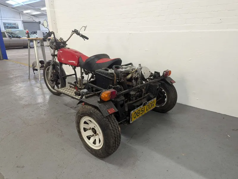 This Q-plated trike was last MoT tested in 2017-18. According to a 1998 structural survey which accompanies the vehicle, it was built by combining a Yamaha motorcycle with a Mini front subframe, suspension and 998cc engine, joined by a square-section steel frame in the middle. It was registered in its current form in May 1997, and is accompanied by a current V5C showing 7 keepers since then. A few maintenance receipts are also present, with old MoT certificates and tax discs. The odometer shows 2974 miles. Not specified