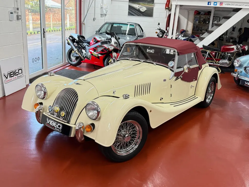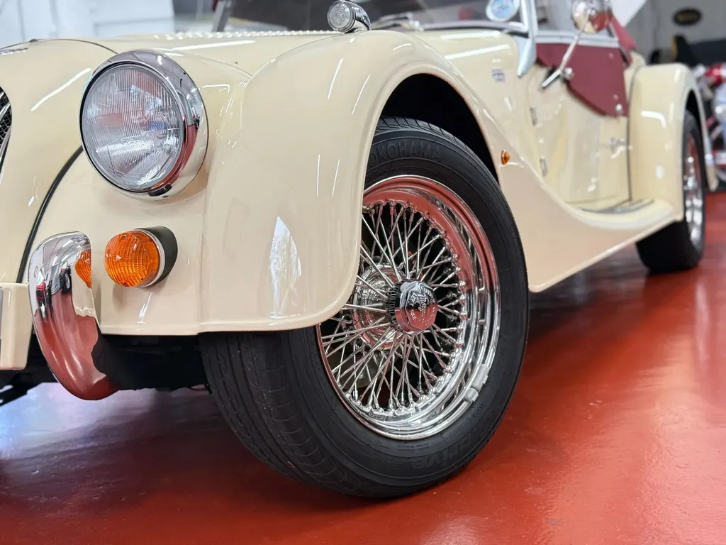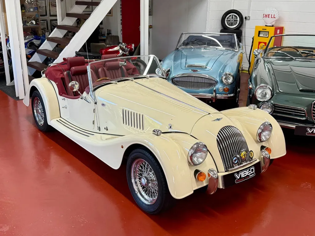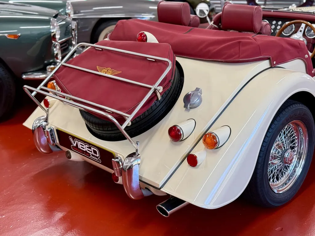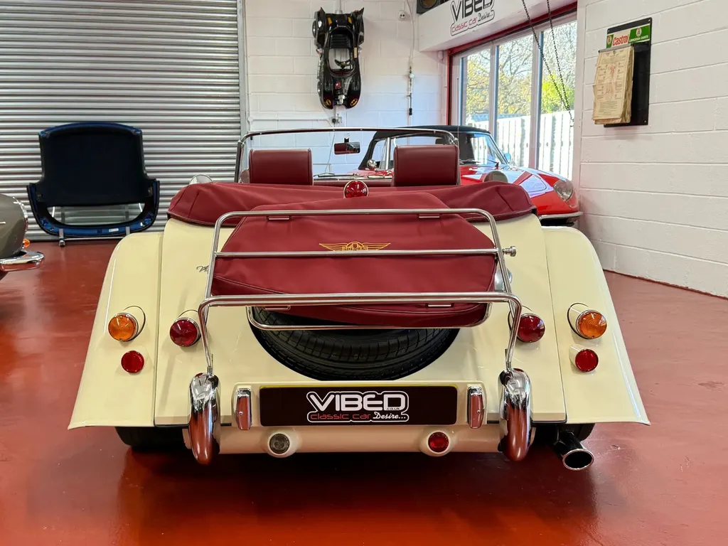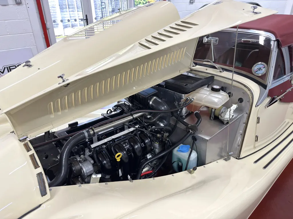 INTERIOR & EQUIPMENT - The luxurious extended Muirhead Mulberry leather upholstery is a gorgeous contrast to the Royal Ivory exterior paintwork. The supple leather presents in outstanding order. The folding/reclining sports seats with optional leather neck rolls show no signs of any adverse wear, matching leather door cards with elasticated door pockets, Muirhead leather trimmed centre console, coin tray, steering column cowl, dash top, gear and handbrake gaiters all in perfect order and unmarked. The original Mulberry carpets piped to match are in excellent order and unmarked. The Walnut gloss dash facia is flawless with no marks, cracking or lifting. All interior lighting, Smiths gauges, switches and electrics work as they were intended and optional chrome interior mirror. Fitted with a premium Pioneer MOSFET 4 x 50W CD/Radio RDS/WMA/MP3 sound system. Stainless steel door hinges and gear knob, 12v socket, adjustable height steering, Mulberry 3-zip Mohair full tonneau cover, organ pedal accelerator. Moto-Lita 3-spoke wood rim MK3 offset sports steering wheel, designed to give more leg room when entering and exiting the vehicle, plus improved instrument visibility, mounted on a Mota-Lita billet 9-hole boss with embossed Morgan logo... Simply perfect. - EXTERIOR - Finished in factory Royal Ivory paintwork and supports a brilliant, uniform deep gloss shine throughout. All original panels are perfectly straight, totally corrosion-free and gaps as per it left the factory all complemented with contrasting black wing piping. All original lights front and rear are in exceptional order with uniform colour and a silky polished finish. Optional front and rear chrome overriders, optional stainless steel rear luggage rack with screen storage, stainless steel mesh grille, twin round door mirrors, locking door handles, high-level brake light, Lemans style locking filler cap, stainless badge bar, Union Jack badges and wing top sidelights. Unmarked Mulberry Mohair deluxe hood pack with crystal clear rear screen. attached to a stainless steel hood frame. Matching unmarked Mohair sides screens that store neatly in a Mohair zip bag with central divider for screen protection and embroidered with the Morgan logo in gold. The screen bag stows away securely on the luggage rack... STANDARD EQUIPMENT - Heater, Heated Screen, Tool Kit, 12v Socket, LeMans Style Locking Filler Cap, Smiths Gauges Displaying Oil Pressure, Water Temperature And Fuel, Centre Mounted Rev Counter, Offset Speedometer, Twin Side Mirrors, Glove Box, 3-Speed Wipers. - ADDITIONAL EQUIPMENT - Muirhead Mulberry Leather - £1550, Elasticated Door Pockets - £400, Mohair Deluxe Hood Pack With Stainless Hood Frame - £1560, Stainless Deep Dish Wire Wheels - £1290, Walnut Dashboard - £400, Moto-Lita Steering Wheel And Boss - £280, Chrome Interior Mirror - £45, Morgan Ali Tax Disc Holder - £20, Folding/Reclining Sports Seats - £465, Pioneer CD/Radio Sound System - £495, 3 Zip Mohair Tonneau Cover, Sidescreen Bag - £569, Union Jack Badges - £55, Elasticated Door Pockets - £310, Organ Peddle Accelerator - £75, Stainless Mesh Grille - £125, Leather Covered Steering Cowl - £199, Side Lights - £295, Chrome Overriders - £1750, Morgan Neck Rolls - £220, Stainless Luggage Rack With Screen Storage - £357, Polished Stainless Badge Bar - £72, Extra Tread Rubbers - £70, Stainless Wiper Arms - £165, Muirhead Leather Console Tray - £95, Leather Bonnet Strap - £205. - WHEELS, TYRES & BRAKES - Wheels - Five unmarked 15" stainless 70 spoke centre laced wire wheels 6J x 15 with chrome continental style octagonal spinners and spanner. Tyres - All matching brand new Yokohama 195/60 R15 tyres. Brakes - Caparo 4-pot front calipers and discs, rear drums. - ENGINE & TRANSMISSION - Fitted with the fast revving Ford Duratec double overhead camshaft, 1999cc engine, max power: 145 bhp@ 6000 rpm, max torque: 140 lb-ft. at 4500 rpm, 0.60 in 7.0 seconds. On the road, power is linear and smooth, the proven 5-speed gearbox is slick in operation, the clutch is very light and progressive. The engine and engine bay are detailed to show standard. Driving this Plus 4 is simply a joy, 877kg, nible and sounds fantastic courtesy of the full stainless steel exhaust system... SUMMARY - Here we have a chance to own a very desirable Morgan Plus 4, in the wonderful colour combination of Royal Ivory coachwork, Muirhead Mulberry leather with a Mohair Mulberry hood and side screens. This Plus 4 was registered new to Mr Tim Willies on the 1st October 2010 by Morgan Main Dealers, Allon White Sports Cars, Cranfield, Bedfordshire. Mr Willies cherished the car until August 2016. The car was then sold to second owners, the Carson family who sold the car to the current keeper in January 2024. The history file contains the original Morgan black embroidered wallet with Owners Handbook, original order form, original bill of sale with options list, fully documented service history with 14 stamps of which 13 are official Morgan Dealers, every MOT since the first on 4th October 2013 at 5474 miles, 3 sets of original keys, sidescreen locking bar, plus receipts and invoices for thousands of pounds worth of servicing, maintenance and upgrades. This detailed documentation proves the genuine low mileage. Servicing supported by original invoices - 28.1.2011 - 922 Miles - Allon White Sports Cars - 26.9.2011 - 2339 Miles - Allon White Sports Cars - 28.9.2012 - 3925 Miles - Techniques Morgan - 4.10.2013 - 5472 Miles - Techniques Morgan - 3.10.2014 - 7322 Miles - Techniques Morgan - 9.10.2015 - 9151 Miles - Techniques Morgan - 26.8.2016 - 10602 Miles - Allon White Sports Cars - 19.8.2017 - 12274 Miles - Allon White Sports Cars - 16.8.2018 - 13487 Miles - Allon White Sports Cars - 28.8.2019 - 14939 Miles - Allon White Sports Cars - 23.2.2021 - 17005 Miles - Allon White Sports Cars - 24.2.2022 - 18917 Miles - Allon White Sports Cars - 24.2.2023 - 21449 Miles - Allon White Sports Cars - 18.6.2024 - 23