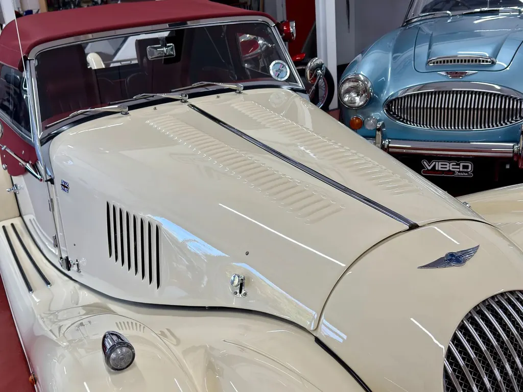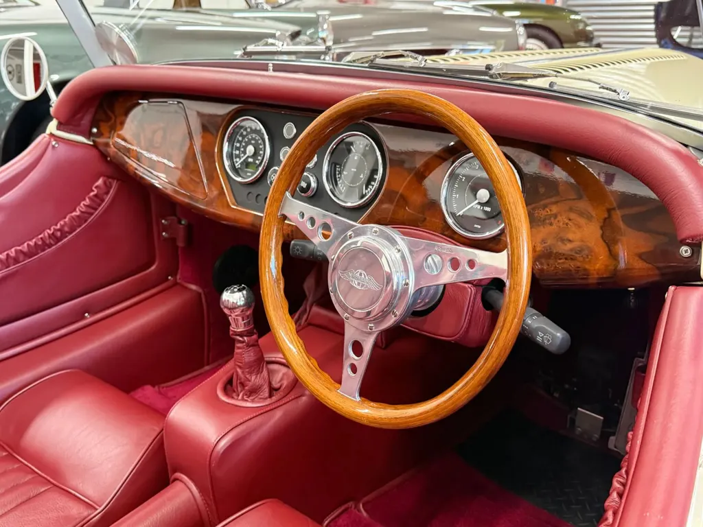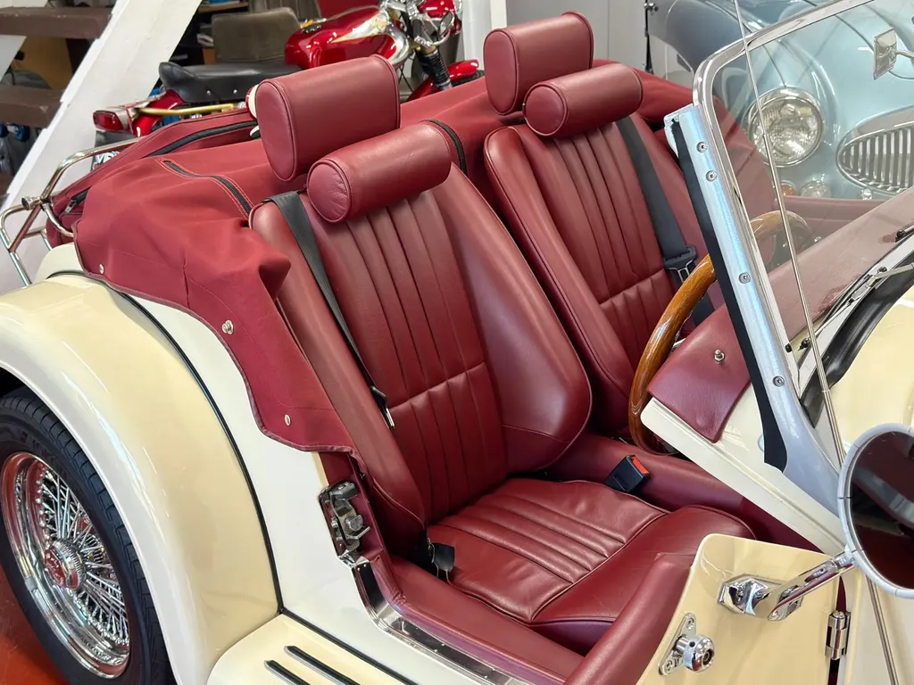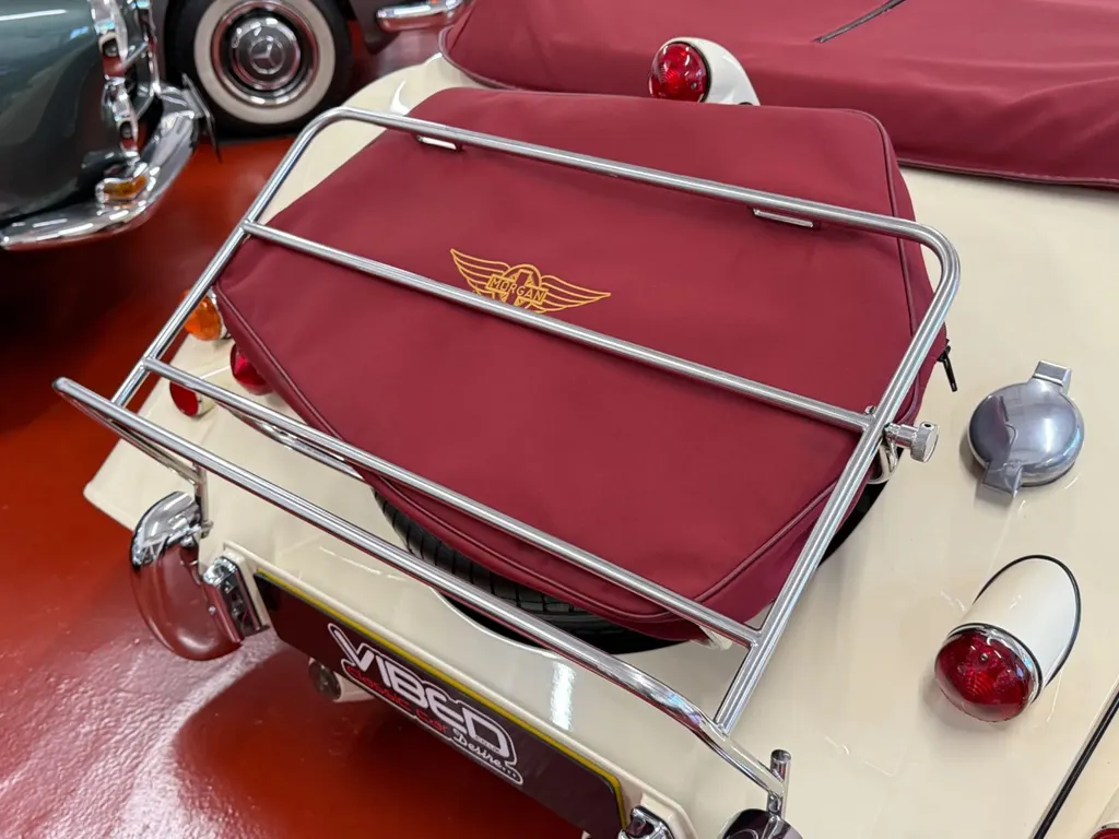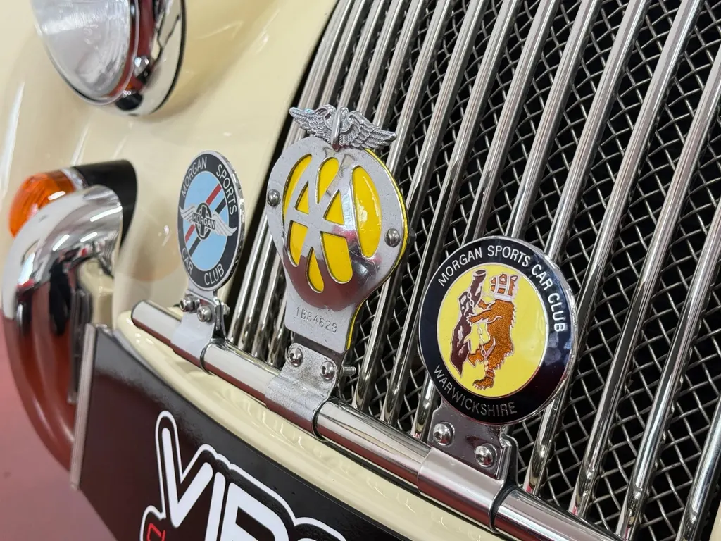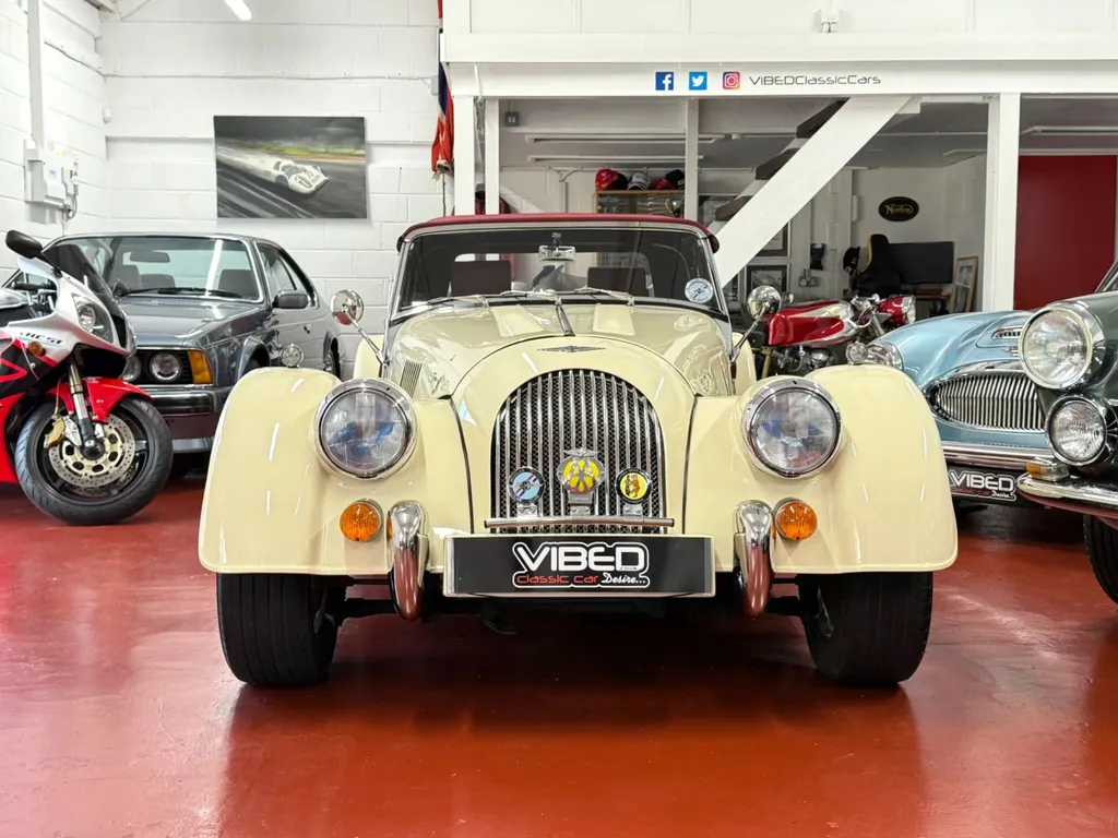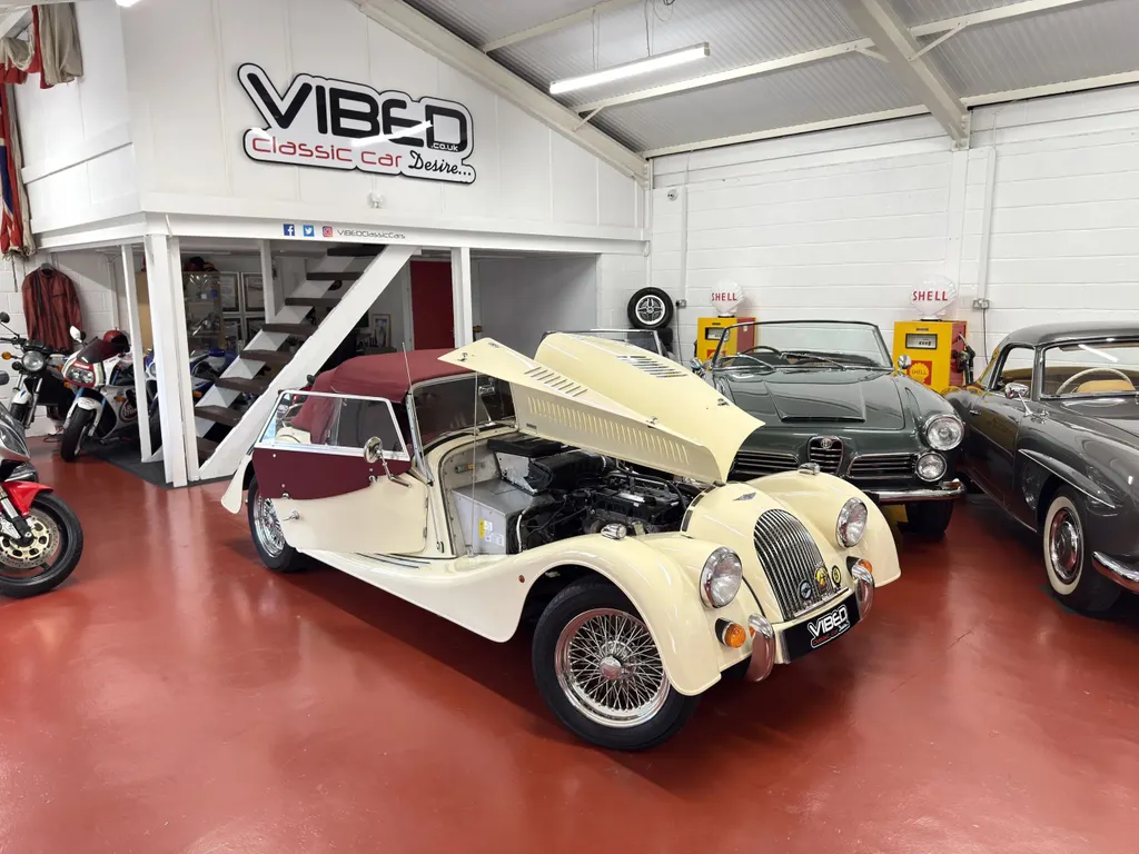 INTERIOR & EQUIPMENT - The luxurious extended Muirhead Mulberry leather upholstery is a gorgeous contrast to the Royal Ivory exterior paintwork. The supple leather presents in outstanding order. The folding/reclining sports seats with optional leather neck rolls show no signs of any adverse wear, matching leather door cards with elasticated door pockets, Muirhead leather trimmed centre console, coin tray, steering column cowl, dash top, gear and handbrake gaiters all in perfect order and unmarked. The original Mulberry carpets piped to match are in excellent order and unmarked. The Walnut gloss dash facia is flawless with no marks, cracking or lifting. All interior lighting, Smiths gauges, switches and electrics work as they were intended and optional chrome interior mirror. Fitted with a premium Pioneer MOSFET 4 x 50W CD/Radio RDS/WMA/MP3 sound system. Stainless steel door hinges and gear knob, 12v socket, adjustable height steering, Mulberry 3-zip Mohair full tonneau cover, organ pedal accelerator. Moto-Lita 3-spoke wood rim MK3 offset sports steering wheel, designed to give more leg room when entering and exiting the vehicle, plus improved instrument visibility, mounted on a Mota-Lita billet 9-hole boss with embossed Morgan logo... Simply perfect. - EXTERIOR - Finished in factory Royal Ivory paintwork and supports a brilliant, uniform deep gloss shine throughout. All original panels are perfectly straight, totally corrosion-free and gaps as per it left the factory all complemented with contrasting black wing piping. All original lights front and rear are in exceptional order with uniform colour and a silky polished finish. Optional front and rear chrome overriders, optional stainless steel rear luggage rack with screen storage, stainless steel mesh grille, twin round door mirrors, locking door handles, high-level brake light, Lemans style locking filler cap, stainless badge bar, Union Jack badges and wing top sidelights. Unmarked Mulberry Mohair deluxe hood pack with crystal clear rear screen. attached to a stainless steel hood frame. Matching unmarked Mohair sides screens that store neatly in a Mohair zip bag with central divider for screen protection and embroidered with the Morgan logo in gold. The screen bag stows away securely on the luggage rack... STANDARD EQUIPMENT - Heater, Heated Screen, Tool Kit, 12v Socket, LeMans Style Locking Filler Cap, Smiths Gauges Displaying Oil Pressure, Water Temperature And Fuel, Centre Mounted Rev Counter, Offset Speedometer, Twin Side Mirrors, Glove Box, 3-Speed Wipers. - ADDITIONAL EQUIPMENT - Muirhead Mulberry Leather - £1550, Elasticated Door Pockets - £400, Mohair Deluxe Hood Pack With Stainless Hood Frame - £1560, Stainless Deep Dish Wire Wheels - £1290, Walnut Dashboard - £400, Moto-Lita Steering Wheel And Boss - £280, Chrome Interior Mirror - £45, Morgan Ali Tax Disc Holder - £20, Folding/Reclining Sports Seats - £465, Pioneer CD/Radio Sound System - £495, 3 Zip Mohair Tonneau Cover, Sidescreen Bag - £569, Union Jack Badges - £55, Elasticated Door Pockets - £310, Organ Peddle Accelerator - £75, Stainless Mesh Grille - £125, Leather Covered Steering Cowl - £199, Side Lights - £295, Chrome Overriders - £1750, Morgan Neck Rolls - £220, Stainless Luggage Rack With Screen Storage - £357, Polished Stainless Badge Bar - £72, Extra Tread Rubbers - £70, Stainless Wiper Arms - £165, Muirhead Leather Console Tray - £95, Leather Bonnet Strap - £205. - WHEELS, TYRES & BRAKES - Wheels - Five unmarked 15" stainless 70 spoke centre laced wire wheels 6J x 15 with chrome continental style octagonal spinners and spanner. Tyres - All matching brand new Yokohama 195/60 R15 tyres. Brakes - Caparo 4-pot front calipers and discs, rear drums. - ENGINE & TRANSMISSION - Fitted with the fast revving Ford Duratec double overhead camshaft, 1999cc engine, max power: 145 bhp@ 6000 rpm, max torque: 140 lb-ft. at 4500 rpm, 0.60 in 7.0 seconds. On the road, power is linear and smooth, the proven 5-speed gearbox is slick in operation, the clutch is very light and progressive. The engine and engine bay are detailed to show standard. Driving this Plus 4 is simply a joy, 877kg, nible and sounds fantastic courtesy of the full stainless steel exhaust system... SUMMARY - Here we have a chance to own a very desirable Morgan Plus 4, in the wonderful colour combination of Royal Ivory coachwork, Muirhead Mulberry leather with a Mohair Mulberry hood and side screens. This Plus 4 was registered new to Mr Tim Willies on the 1st October 2010 by Morgan Main Dealers, Allon White Sports Cars, Cranfield, Bedfordshire. Mr Willies cherished the car until August 2016. The car was then sold to second owners, the Carson family who sold the car to the current keeper in January 2024. The history file contains the original Morgan black embroidered wallet with Owners Handbook, original order form, original bill of sale with options list, fully documented service history with 14 stamps of which 13 are official Morgan Dealers, every MOT since the first on 4th October 2013 at 5474 miles, 3 sets of original keys, sidescreen locking bar, plus receipts and invoices for thousands of pounds worth of servicing, maintenance and upgrades. This detailed documentation proves the genuine low mileage. Servicing supported by original invoices - 28.1.2011 - 922 Miles - Allon White Sports Cars - 26.9.2011 - 2339 Miles - Allon White Sports Cars - 28.9.2012 - 3925 Miles - Techniques Morgan - 4.10.2013 - 5472 Miles - Techniques Morgan - 3.10.2014 - 7322 Miles - Techniques Morgan - 9.10.2015 - 9151 Miles - Techniques Morgan - 26.8.2016 - 10602 Miles - Allon White Sports Cars - 19.8.2017 - 12274 Miles - Allon White Sports Cars - 16.8.2018 - 13487 Miles - Allon White Sports Cars - 28.8.2019 - 14939 Miles - Allon White Sports Cars - 23.2.2021 - 17005 Miles - Allon White Sports Cars - 24.2.2022 - 18917 Miles - Allon White Sports Cars - 24.2.2023 - 21449 Miles - Allon White Sports Cars - 18.6.2024 - 23