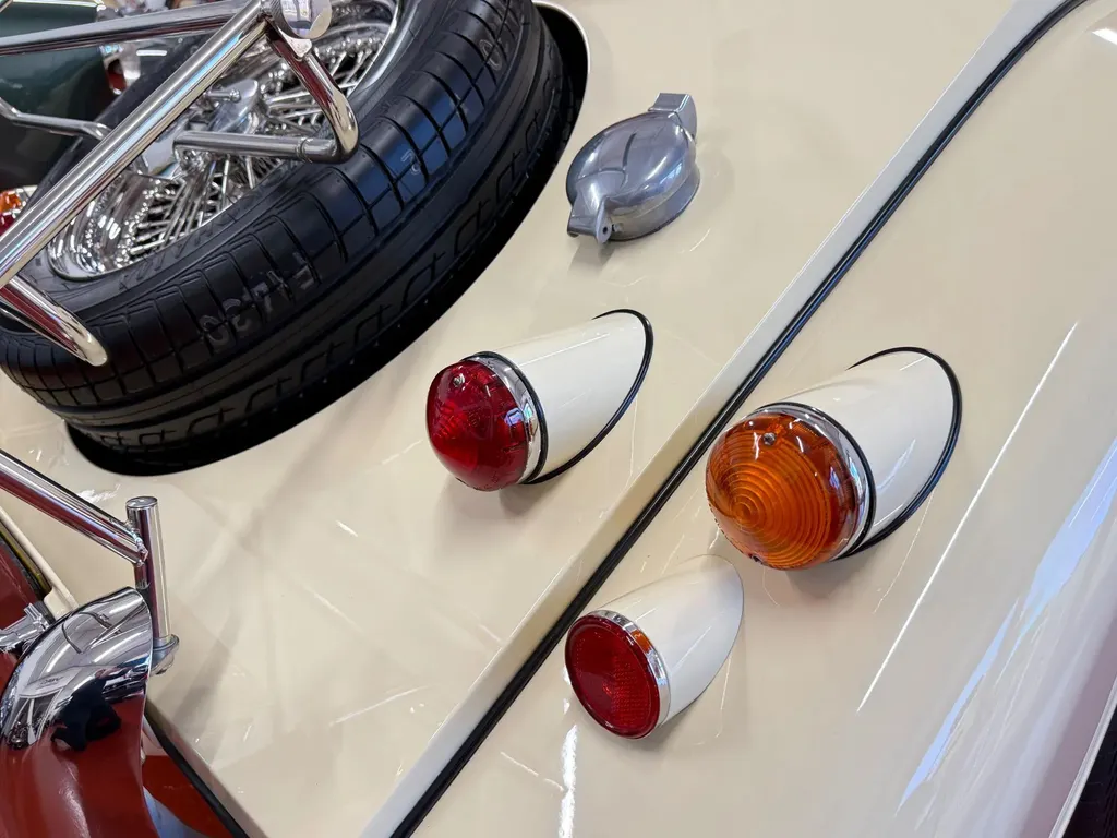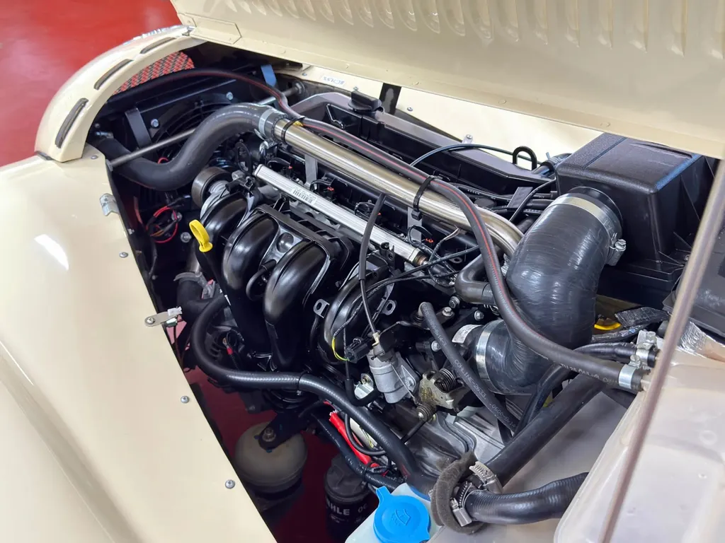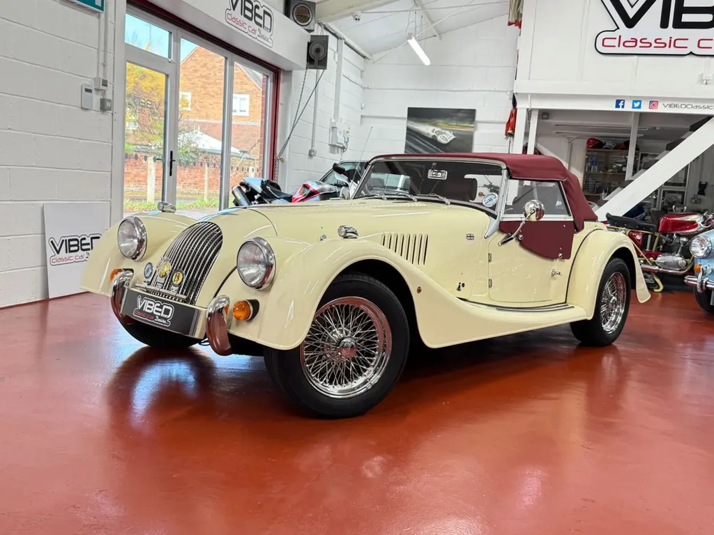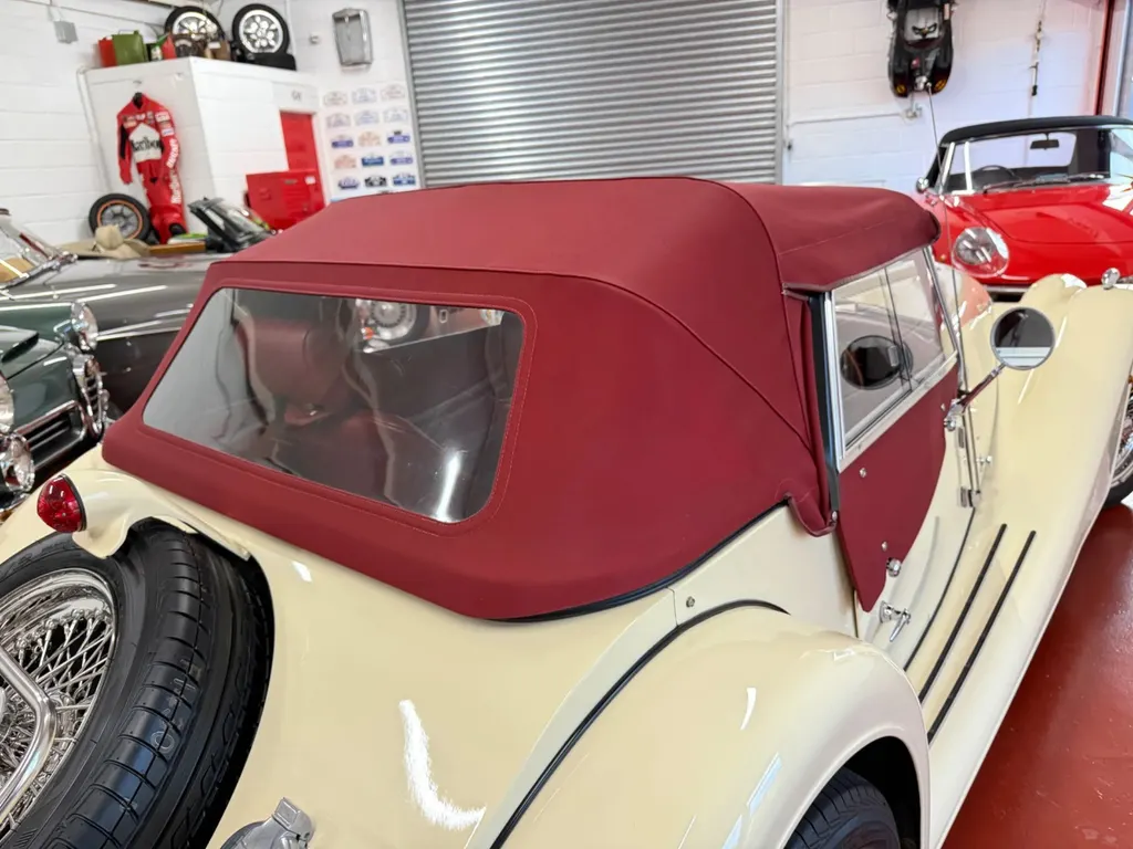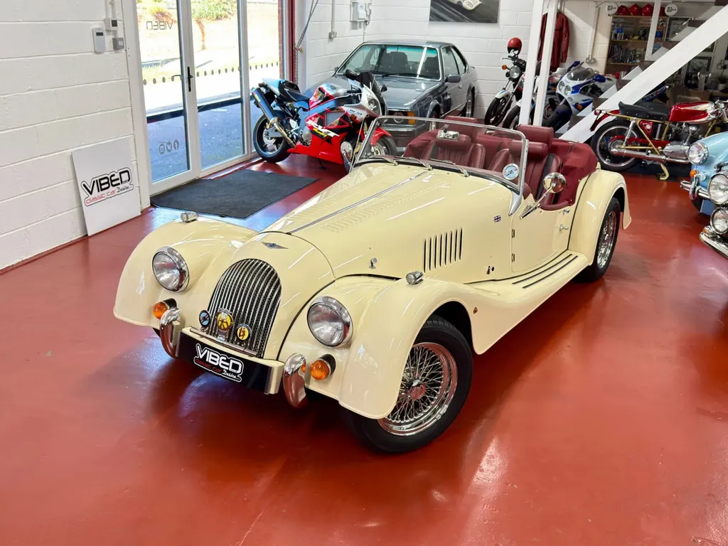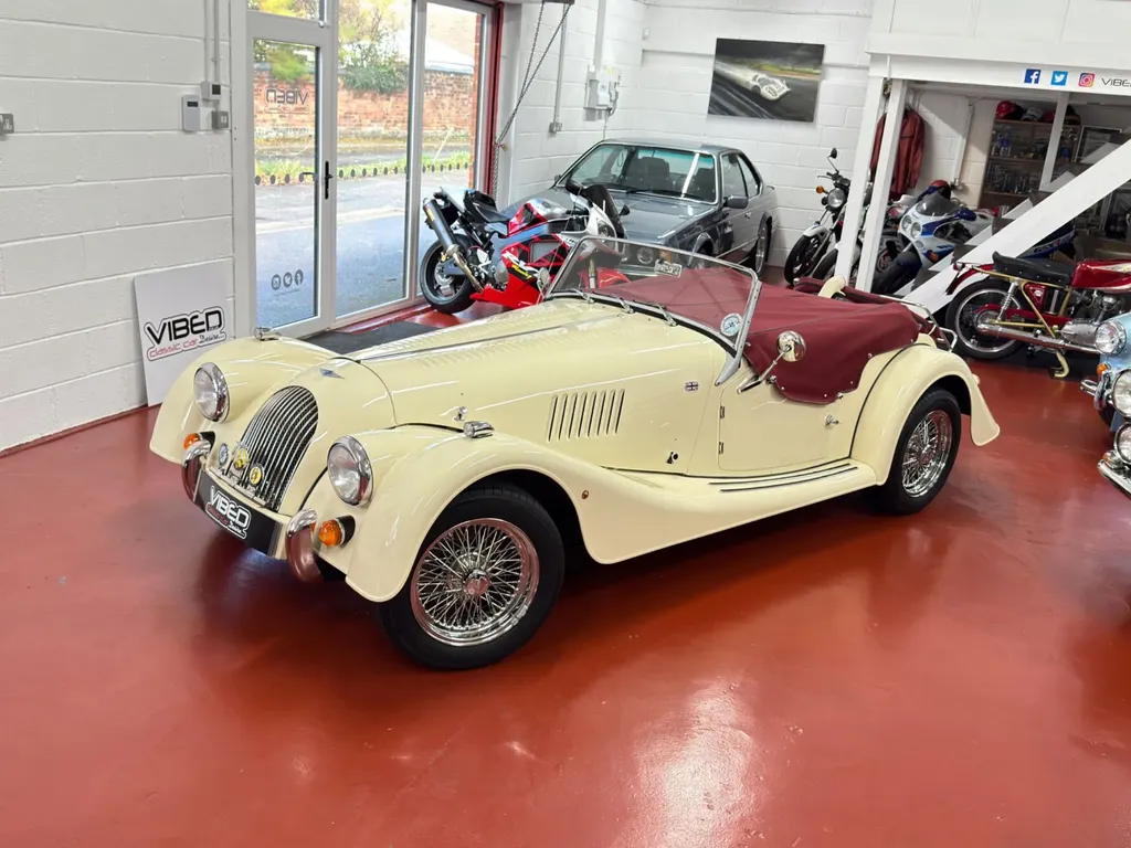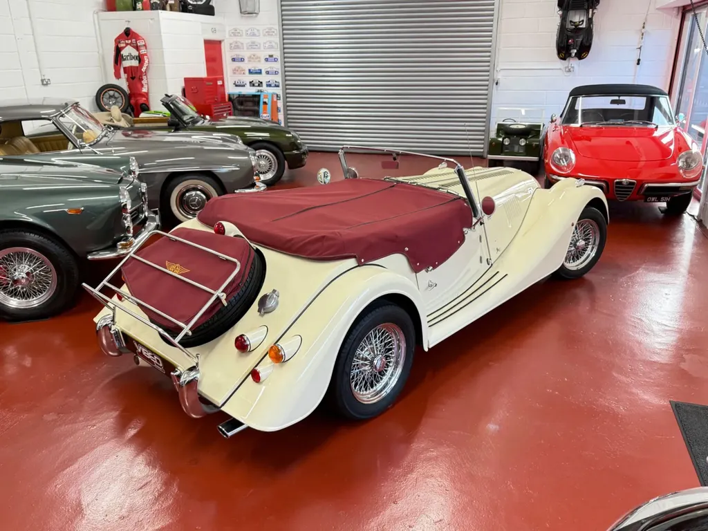 INTERIOR & EQUIPMENT - The luxurious extended Muirhead Mulberry leather upholstery is a gorgeous contrast to the Royal Ivory exterior paintwork. The supple leather presents in outstanding order. The folding/reclining sports seats with optional leather neck rolls show no signs of any adverse wear, matching leather door cards with elasticated door pockets, Muirhead leather trimmed centre console, coin tray, steering column cowl, dash top, gear and handbrake gaiters all in perfect order and unmarked. The original Mulberry carpets piped to match are in excellent order and unmarked. The Walnut gloss dash facia is flawless with no marks, cracking or lifting. All interior lighting, Smiths gauges, switches and electrics work as they were intended and optional chrome interior mirror. Fitted with a premium Pioneer MOSFET 4 x 50W CD/Radio RDS/WMA/MP3 sound system. Stainless steel door hinges and gear knob, 12v socket, adjustable height steering, Mulberry 3-zip Mohair full tonneau cover, organ pedal accelerator. Moto-Lita 3-spoke wood rim MK3 offset sports steering wheel, designed to give more leg room when entering and exiting the vehicle, plus improved instrument visibility, mounted on a Mota-Lita billet 9-hole boss with embossed Morgan logo... Simply perfect. - EXTERIOR - Finished in factory Royal Ivory paintwork and supports a brilliant, uniform deep gloss shine throughout. All original panels are perfectly straight, totally corrosion-free and gaps as per it left the factory all complemented with contrasting black wing piping. All original lights front and rear are in exceptional order with uniform colour and a silky polished finish. Optional front and rear chrome overriders, optional stainless steel rear luggage rack with screen storage, stainless steel mesh grille, twin round door mirrors, locking door handles, high-level brake light, Lemans style locking filler cap, stainless badge bar, Union Jack badges and wing top sidelights. Unmarked Mulberry Mohair deluxe hood pack with crystal clear rear screen. attached to a stainless steel hood frame. Matching unmarked Mohair sides screens that store neatly in a Mohair zip bag with central divider for screen protection and embroidered with the Morgan logo in gold. The screen bag stows away securely on the luggage rack... STANDARD EQUIPMENT - Heater, Heated Screen, Tool Kit, 12v Socket, LeMans Style Locking Filler Cap, Smiths Gauges Displaying Oil Pressure, Water Temperature And Fuel, Centre Mounted Rev Counter, Offset Speedometer, Twin Side Mirrors, Glove Box, 3-Speed Wipers. - ADDITIONAL EQUIPMENT - Muirhead Mulberry Leather - £1550, Elasticated Door Pockets - £400, Mohair Deluxe Hood Pack With Stainless Hood Frame - £1560, Stainless Deep Dish Wire Wheels - £1290, Walnut Dashboard - £400, Moto-Lita Steering Wheel And Boss - £280, Chrome Interior Mirror - £45, Morgan Ali Tax Disc Holder - £20, Folding/Reclining Sports Seats - £465, Pioneer CD/Radio Sound System - £495, 3 Zip Mohair Tonneau Cover, Sidescreen Bag - £569, Union Jack Badges - £55, Elasticated Door Pockets - £310, Organ Peddle Accelerator - £75, Stainless Mesh Grille - £125, Leather Covered Steering Cowl - £199, Side Lights - £295, Chrome Overriders - £1750, Morgan Neck Rolls - £220, Stainless Luggage Rack With Screen Storage - £357, Polished Stainless Badge Bar - £72, Extra Tread Rubbers - £70, Stainless Wiper Arms - £165, Muirhead Leather Console Tray - £95, Leather Bonnet Strap - £205. - WHEELS, TYRES & BRAKES - Wheels - Five unmarked 15" stainless 70 spoke centre laced wire wheels 6J x 15 with chrome continental style octagonal spinners and spanner. Tyres - All matching brand new Yokohama 195/60 R15 tyres. Brakes - Caparo 4-pot front calipers and discs, rear drums. - ENGINE & TRANSMISSION - Fitted with the fast revving Ford Duratec double overhead camshaft, 1999cc engine, max power: 145 bhp@ 6000 rpm, max torque: 140 lb-ft. at 4500 rpm, 0.60 in 7.0 seconds. On the road, power is linear and smooth, the proven 5-speed gearbox is slick in operation, the clutch is very light and progressive. The engine and engine bay are detailed to show standard. Driving this Plus 4 is simply a joy, 877kg, nible and sounds fantastic courtesy of the full stainless steel exhaust system... SUMMARY - Here we have a chance to own a very desirable Morgan Plus 4, in the wonderful colour combination of Royal Ivory coachwork, Muirhead Mulberry leather with a Mohair Mulberry hood and side screens. This Plus 4 was registered new to Mr Tim Willies on the 1st October 2010 by Morgan Main Dealers, Allon White Sports Cars, Cranfield, Bedfordshire. Mr Willies cherished the car until August 2016. The car was then sold to second owners, the Carson family who sold the car to the current keeper in January 2024. The history file contains the original Morgan black embroidered wallet with Owners Handbook, original order form, original bill of sale with options list, fully documented service history with 14 stamps of which 13 are official Morgan Dealers, every MOT since the first on 4th October 2013 at 5474 miles, 3 sets of original keys, sidescreen locking bar, plus receipts and invoices for thousands of pounds worth of servicing, maintenance and upgrades. This detailed documentation proves the genuine low mileage. Servicing supported by original invoices - 28.1.2011 - 922 Miles - Allon White Sports Cars - 26.9.2011 - 2339 Miles - Allon White Sports Cars - 28.9.2012 - 3925 Miles - Techniques Morgan - 4.10.2013 - 5472 Miles - Techniques Morgan - 3.10.2014 - 7322 Miles - Techniques Morgan - 9.10.2015 - 9151 Miles - Techniques Morgan - 26.8.2016 - 10602 Miles - Allon White Sports Cars - 19.8.2017 - 12274 Miles - Allon White Sports Cars - 16.8.2018 - 13487 Miles - Allon White Sports Cars - 28.8.2019 - 14939 Miles - Allon White Sports Cars - 23.2.2021 - 17005 Miles - Allon White Sports Cars - 24.2.2022 - 18917 Miles - Allon White Sports Cars - 24.2.2023 - 21449 Miles - Allon White Sports Cars - 18.6.2024 - 23