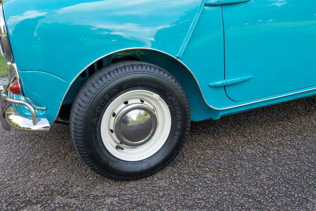 This delightful Mini Cooper was supplied new by Stewart and Arden of Staines in July 1965 and presents wonderfully in the desirable colour combination Surf Blue with a white roof and is fitted with the optional extra of a heater. This superb Cooper retains its original floors, sills and subframes, none of which appear to have been patched up. This example has benefitted in recent years from being totally refreshed, including the replacement of most of the brightwork and attention to mechanicals, paintwork and interior. The car is also fitted with wider wheels and Yokohama tyres. It is believed that the indicated mileage is correct, as we know, that due to an owner's bereavement, the car spent a long time in storage. We are informed that these stunning Mini drives and stops well and that it performs as it should. This eye-catching example is sensibly estimated and ready for immediate use by a new owner. Consigned by Dominic Lake