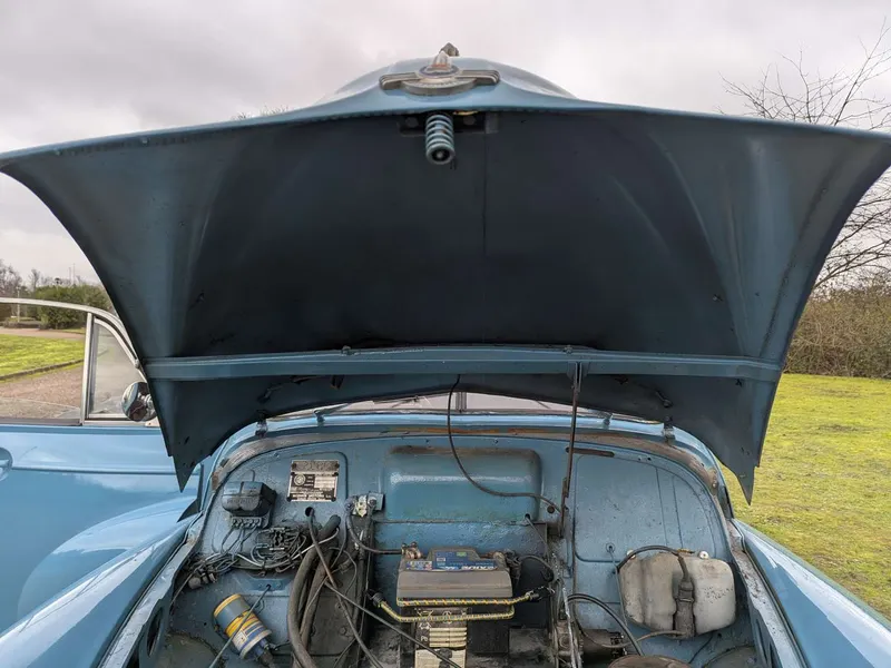 1,000cc. This 1954 Morris Minor Split Screen saloon has been registered to the same keeper since 2008. At some time it has been painted blue although the DVLA still records the colour as grey. Recently serviced. Comes with a selection of older paperwork. V5 to be applied for. 28,923 recorded miles Not specified