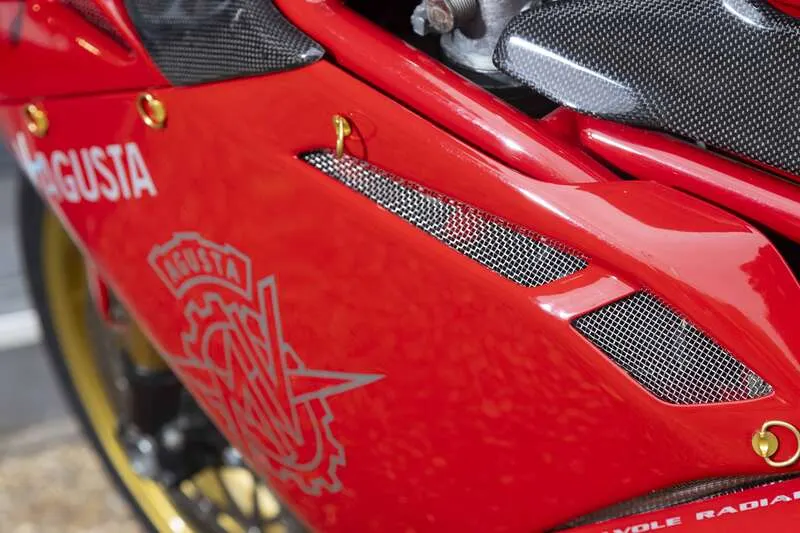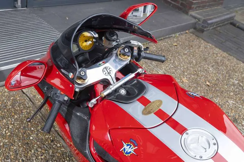 This lot will be auctioned via Iconic Auctioneers, The Iconic Motorcycle Sale at the NEC Classic Motor Show 2025 on Sunday the 9th of November, NEC, Birmingham, B40 1NT. Originally launched in 1999, the MV Agusta F4 marked a pivotal moment in superbike design — a masterpiece of engineering and aesthetics, blending Ferrari-developed performance with Massimo Tamburini’s timeless styling While the F4 was revered across the globe, Casoli Moto sought to address its only real critique: outright power. The result was the F5 — a singular vision of what the next evolution of the F4 could be Bored-out 908cc inline-four engine, delivering sharper power and torque than the original 750 Forged internal components – engineered for strength, precision, and durability. Reworked fuel-injection and bespoke full exhaust system – tuned for immediate throttle response and a distinctive tone Upgraded Brembo braking system offering exceptional control and stopping power. Ohlins suspension, enhancing ride quality and handling performance. Extensive carbon fibre enhancements, reducing weight while emphasizing craftsmanship Custom Casoli Moto detailing throughout – from finish to fit, every element bespoke Fitted with a Tracker and cherished number plate Current V5C and MOT until October 2026. The bike has covered 11,405 recorded miles Small history file with some magazine articles, book pack with service book (three service stamps showing) and some old receipts The MV Agusta F5 is not merely a motorcycle - it is a design statement, a technical showcase, and a collector’s dream. Featured in multiple publications as a halo model for Casoli Moto, this one of a kind build has already achieved cult status among enthusiasts, a rare opportunity to own an evolution of an icon