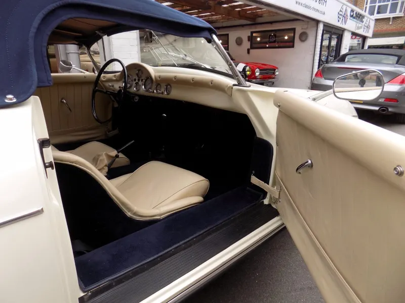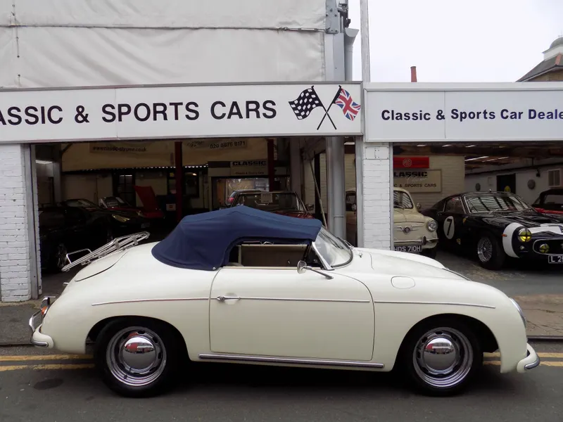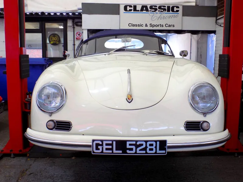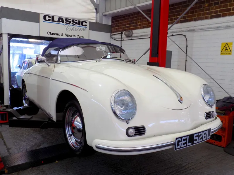 NEW ARRIVAL - A beautiful LHD Porsche 356 Speedster Replica This beautiful Speedster, crafted by Classic Motor Carriages (CMC) of Miami, Florida, was built using a 1973 VW Beetle as its donor vehicle before CMC ceased production in 1996. It was imported from Florida to the UK and first registered here on December 21st 2005. The current owner, a lady, purchased the car in 2017 but unfortunately the history file has been lost during a house move, so we trying to trace its history as much as possible. It’s an exceptional replica, built to a high standard, and features a 1600cc VW engine paired with a 4-speed gearbox. The car has recently undergone some impressive updates, including a brand new blue mohair soft top and a tan leather interior, both professionally fitted by Strong & Turton Coachtrimmers at a cost of £3,750. Additionally, it has been fully serviced and recommissioned by the specialists at Terry’s Beetles in Boston Manor, London, for £3,291.79. Finished in a striking Ivory White, this Speedster not only looks stunning but drives beautifully and remains in excellent condition throughout. It is registered as an Historic Vehicle, making it exempt from both MOT and road tax, and is ULEZ compliant. Prior to delivery, the car will undergo a comprehensive 55-point pre-delivery inspection and receive a fresh MOT. It will also be provided with a 6-month Mechanical Parts & Labour Warranty, with options for extension or upgrade. Further details including a full set of photographs and a video to follow shortly. Now available for viewing at our Mortlake, South West London showrooms. Disclaimer Classic Chrome Ltd makes every effort to ensure the information in this advertisement is accurate. Details regarding provenance and condition are based on the vehicle’s history file and previous ownership records, provided in good faith. Prospective purchasers are encouraged to satisfy themselves as to the vehicle’s condition and suitability prior to purchase. This disclaimer does not affect your statutory rights. 15'' Chrome Wheels, 4 Speed Manual Gearbox, ULEZ COMPLIANT, Road Tax & MOT Exempt, Immobiliser, LHD, Rear Wheel Drive, Hydraulic brakes, Front Disc Brakes, Leather Trim, Blue Mohair Soft Top, Rear Drum Brakes, Tachometer, Folding Roof, Luggage Rack, Full Weather Equipment, Historic Vehicle