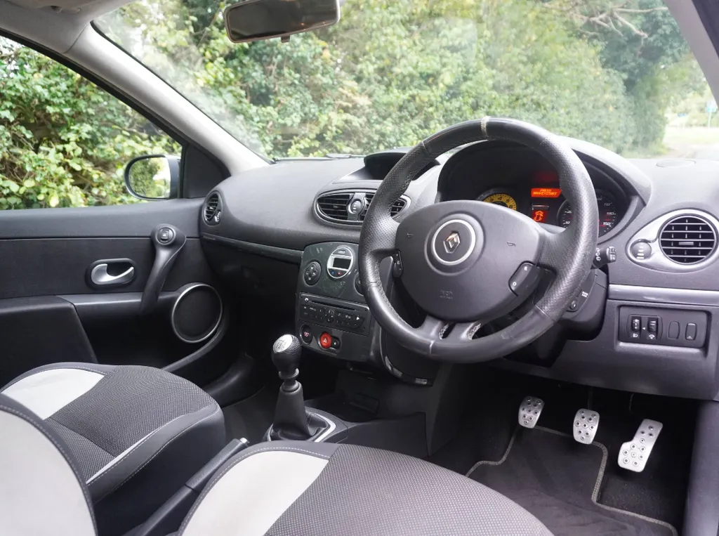 This “last of the manual gearbox” RS Clio presents superbly in every respect. We first saw this impressive Clio in 2024 before promptly selling it to one of our regular customers in Inverness. The car returns to us with a nice mileage of 82000 with impressive service history and just four owners. With a superb drive powered by a 2.0L naturally aspirated engine, it’s a car that’s fantastic fun on the road and a car that really wants to be put through its paces Having been meticulously maintained it has been serviced regularly and had it's cambelt changed at 51616 miles at a Renault dealership in Northampton. In 2023 the North Yorkshire-based then owner replaced the front discs and pads to uprated Brembo drilled discs and EBC Greenstuff pads providing superb stopping power. Recently, LR60TXT had benefitted from a new exhaust manifold and downpipe. Most notably, this car has had a replacement gearbox fitted in 2022 with a new clutch kit ensuring ultra confidence in the transmission for the new owner. The Clio comes equipped with Air conditioning, 17inch wheels with Pirelli tyres, sports suspension, ABS, traction control, and cruise control. This model of Renaultsport was the last RS Clio produced with a manual gearbox before Renault began to use an automatic transmission to power their new sporty hot hatches. Surely a future classic, this is one to drive, enjoy and look after. The private registration is not included in the sale.