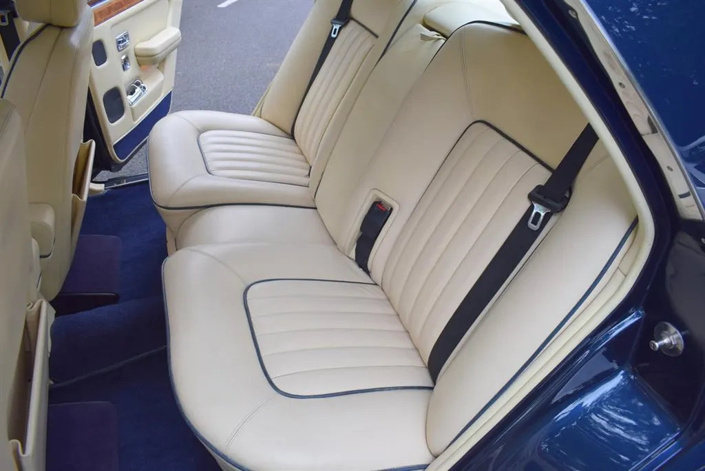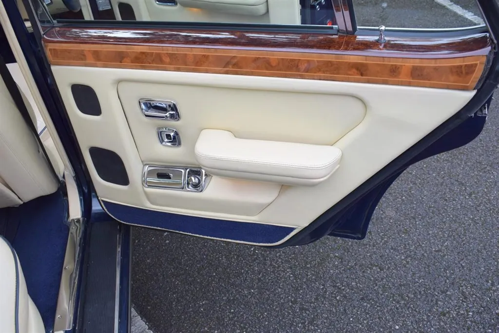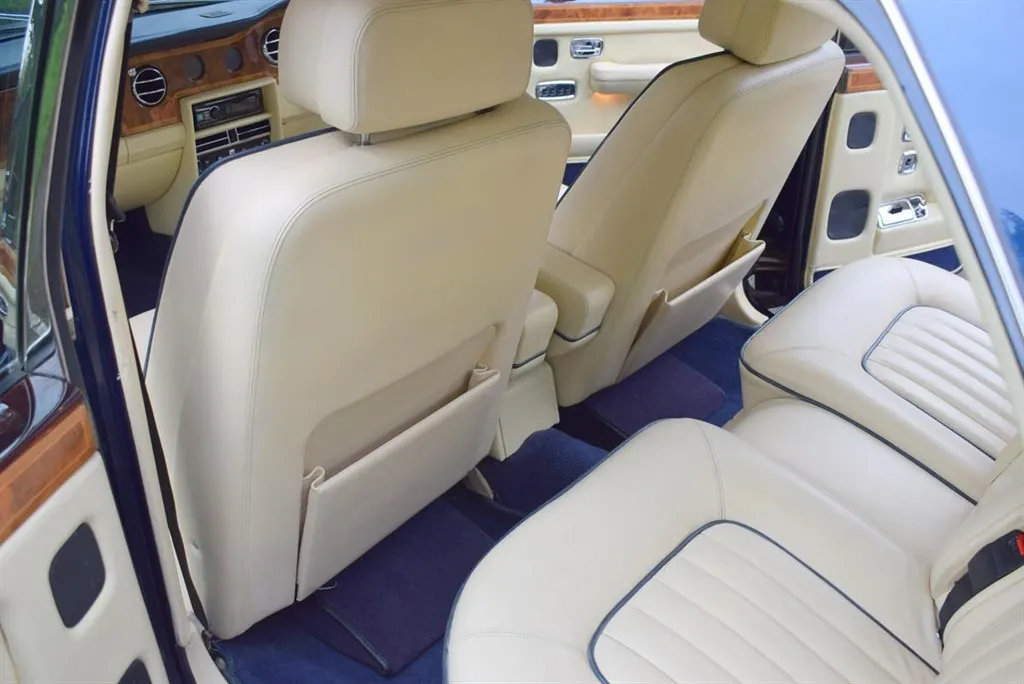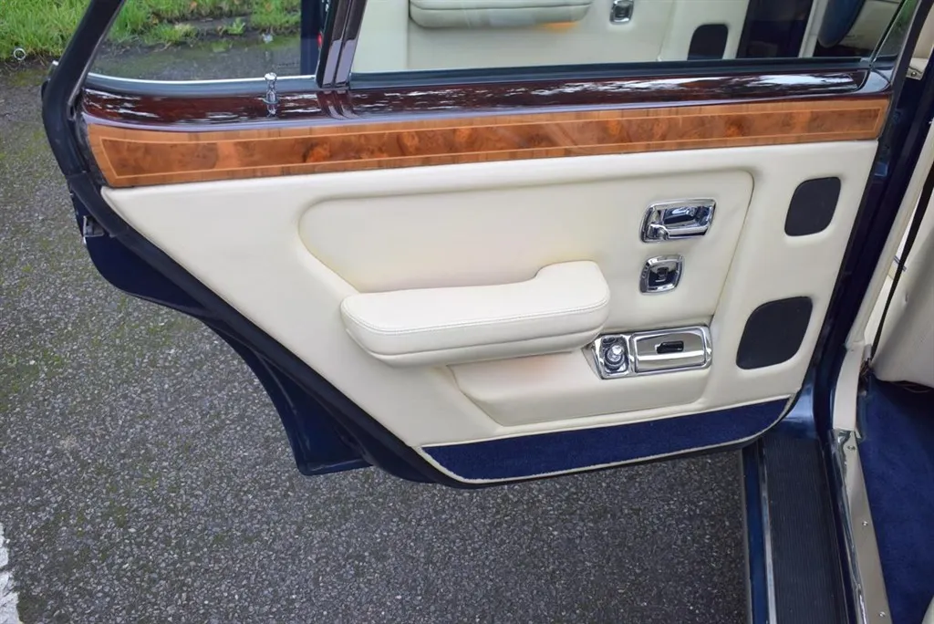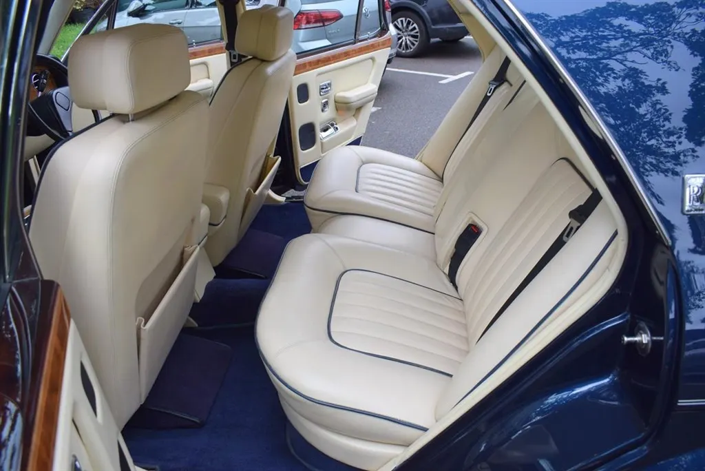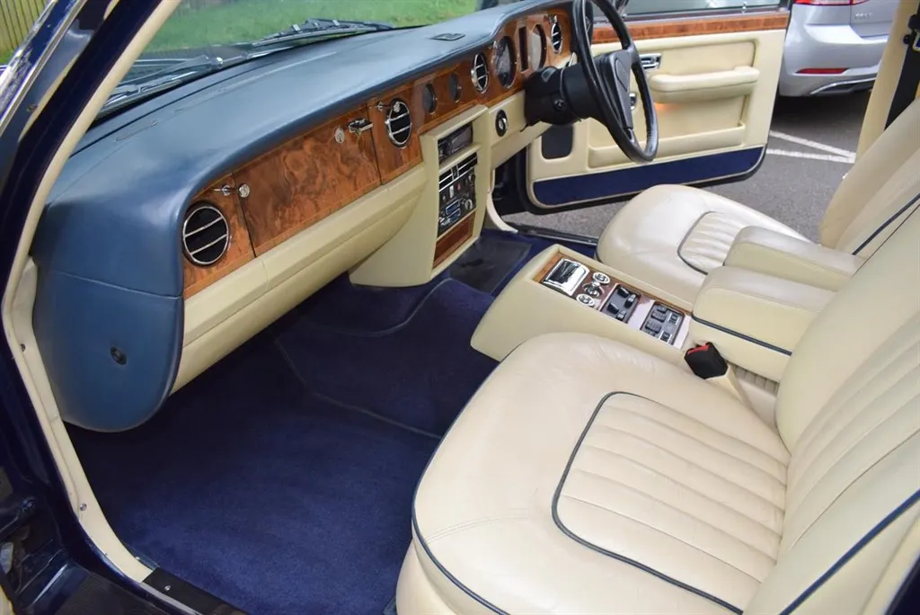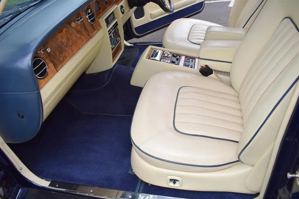 1990 Model G Rolls Royce Silver Spirit MK II Active Ride. Finished in Royal Blue with twin coachline in Cream and white wall tyres. Magnolia interior piped in French Navy and French Navy carpets with vanity mirrors to the rear. Known to us for several years, with service history and in outstanding condition.