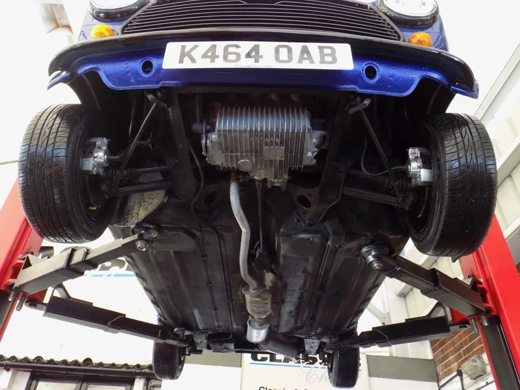 SOLD & DEPOSIT TAKEN This unique Rover Mini Sprite 1275 was first registered in Worcester on 25th January 1993. In late 2022, the car was acquired by specialist restorer GP Auto Design of Park Royal, London and they completed a comprehensive body restoration and full repaint to a very high standard. Restoration Details The works included: Replacement of both front wings, front and rear valance panels, and door skins Floor panel repairs and new wheel arch spats A complete repaint in BMW Marina Bay Blue Metallic with a Black roof, Black bumpers, headlight rims, and racing-style door mirrors (original colour when built was White) Interior refreshed with new black carpets, LED headlights, new badges, and a set of 12'' Mamba alloy wheels Mechanical and Interior The car retains its original 1275cc Mini Sprite engine and gearbox, both in excellent condition. The original Grey velour seats and trim remain in place, complemented by a leather steering wheel. Ownership and Documentation This Mini has had five former keepers from new – the first three being lady owners, with the most recent owner taking possession in February 2024 when we sold it to him on behalf of GP Auto Design. It is only being sold by him now due to his impending move to the USA. The car has covered a genuine 59,041 miles and is supported by: Full MOT history and certificates from 2001 to the present - current MOT until May 2026 Previous maintenance invoices Clear HPI and National Mileage Register checks Historic V5 documents confirming ownership history Condition and Warranty The vehicle is presented in lovely condition throughout and drives beautifully. On sale, it will receive a pre-sales service and check-over and come with a 3-month mechanical warranty, which can be extended or upgraded at additional cost if required. Summary A highly attractive Mini Sprite 1275, finished in a distinctive and contemporary colour scheme. An excellent example of this increasingly desirable model, and one which is very nice to drive. Now available for viewing at our Mortlake showroom, South West London. Important Notice: Classic Chrome Ltd makes every effort to ensure the accuracy of this information. All statements regarding provenance and condition are provided in good faith based on the vehicle’s history and information supplied by previous owners. Prospective purchasers must satisfy themselves as to the vehicle’s condition and suitability before purchase. This does not affect your statutory rights. 12'' Mamba Alloy Wheels, Velour Trim, Leather Steering Wheel, Front Disc Brakes, Rear Drum Brakes, 4 Speed Manual Gearbox, Hydraulic brakes, LED Lights, Synchromesh transmission, LED Lights, 12'' Mamba Alloy Wheels, Alloy Wheels