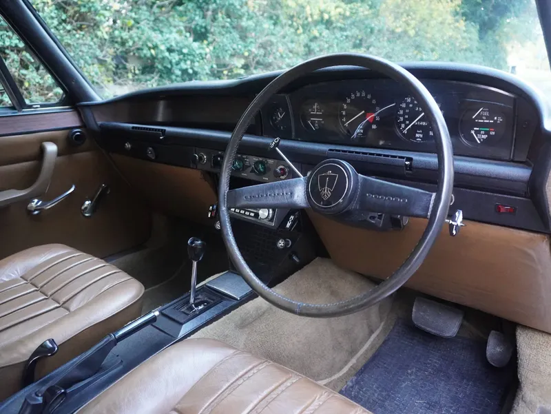 We are delighted to present one of the most beautiful and original low mileage P6s we have ever had the pleasure of selling. Last sold by us in 2021 to a local customer, this warranted 51400 mile Rover 3500 auto was ordered new in the 'Huntsman' specification, an option that was offered within the Rover catalogue during the final year of P6 production before the SD1 was launched. The Huntsman specification featured colour co-ordinated vinyl roof, vinyl rear pillars and painted colour coded sills. We have the original supplier invoice dated the 30th December 1974 from Read & Sons (Cheadle) Limited showing that the car was ordered in Almond paint scheme with bronze leather upholstery. It also has the power steering option, front and extremely rare rear headrests, Aluminium Rostyle wheels as well as 'Sundym' glass which has a very subtle green tint designed to keep the interior cooler in bright sunlight. There is a large history file with original documents which both confirms the low mileage and indicates that this car has been very well cared for by its previous owners. The file includes the various original Rover handbooks, Radiomobile Operating Instructions, Rover Owner's Service Statement, Rover Price List and original Passport to Service book with services recorded by the supplying dealership Read & Sons at 1095, 4001, 9300, 17700 and 23257 miles. MOT records with the car date back almost 25 years from 37324 miles and a comprehensive file of invoices detail the exceptional maintenance. On the road the P6 is an absolute delight. Smooth and quiet, the road manners and handling are everything one would expect of a car which was designed to be more sophisticated than its contemporary rivals. The Rover is in exceptional mechanical condition and is equally as impressive in terms of presentation. HDB 8N is beautifully detailed, it would not look out of place on the show scene and has stunning bodywork and paintwork, gleaming brightwork, a superb underbody, detailed engine bay and a beautiful, superbly aged upholstery. The radical new design of the original P6 with its ‘unibody' construction was inspired by the Citroen DS. The De Dion rear axle set-up was unique in that the "tube" was in two parts that could telescope, thereby avoiding the need for sliding splines in the drive shafts. The design was a futuristic departure from the P4 which was still in production when the P6 was launched. The designers, led by Peter Wilks, Spen King and Gordon Bashford were to some extent kept in check by the influence of the Wilks brothers, Maurice and Spencer. Had it not been for their intervention, the P6 might have been even more revolutionary than it already was. The Rover Board ruled out the possibility of the Hydropneumatic suspension the engineers wanted, but they agreed to a body and chassis design that were a big departure from the norm. A unique feature of the Rover P6 was the design of the front suspension system, in which a bell crank (an L-shaped rotating bracket trailing the upper hub carrier joint) conveyed the vertical motion of the wheel to a fore-and-aft-horizontally mounted spring fastened to the rear wall of the engine compartment. A single hydraulically damped arm was mounted on the bulkhead for the steering. The front suspension was designed to allow as much width for the engine compartment as possible so that in time Rover's gas turbine engine could be fitted. In the event, the gas turbine was never fitted and it was a licence to produce Buick's superb 3528cc V8 that eventually gave the P6 the greater power and performance it needed to compete with other executive cars of the late 1960s and 70's. It is that superb suspension system which gives the Rover P6 the wonderful ride which few other cars of the period can match. In all respects this is genuinely a ‘specimen' example which we are sure will delight its new owner.