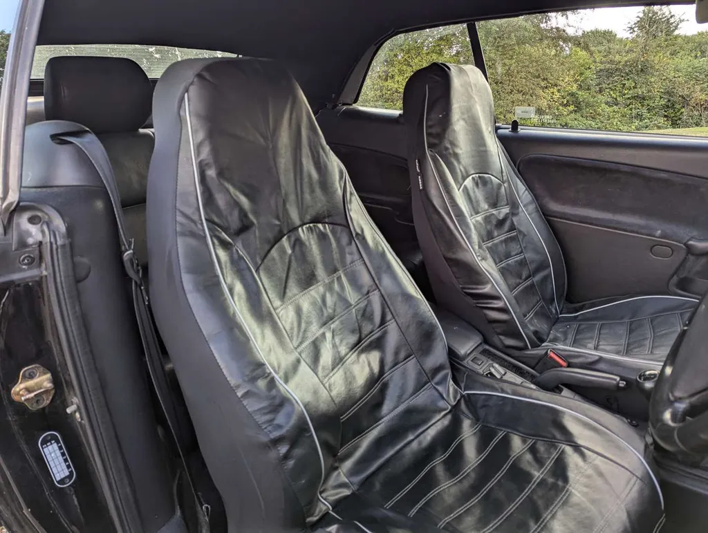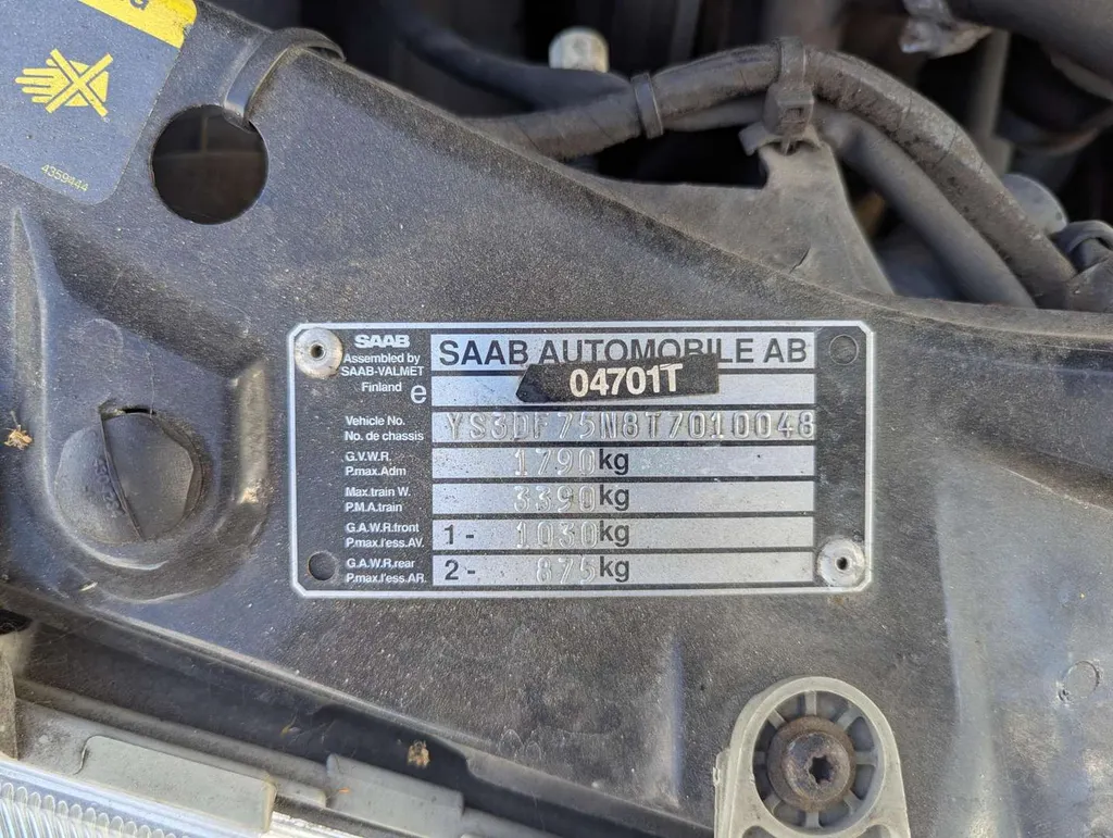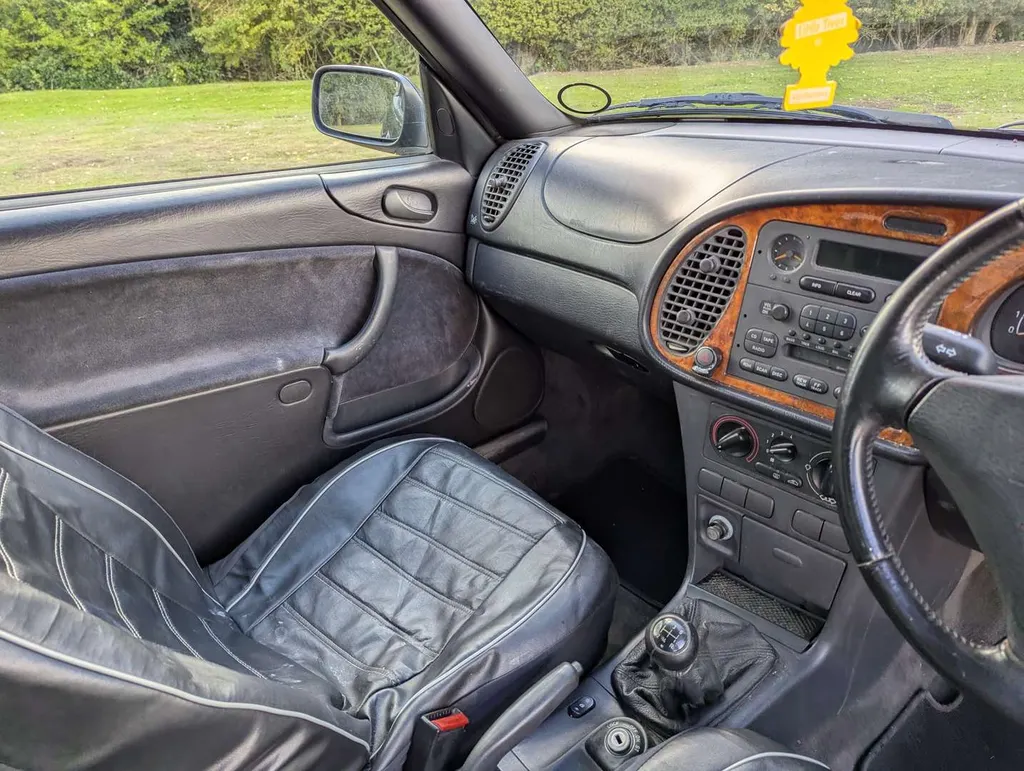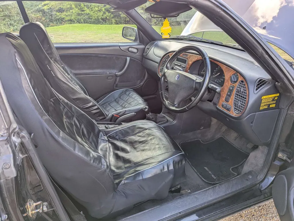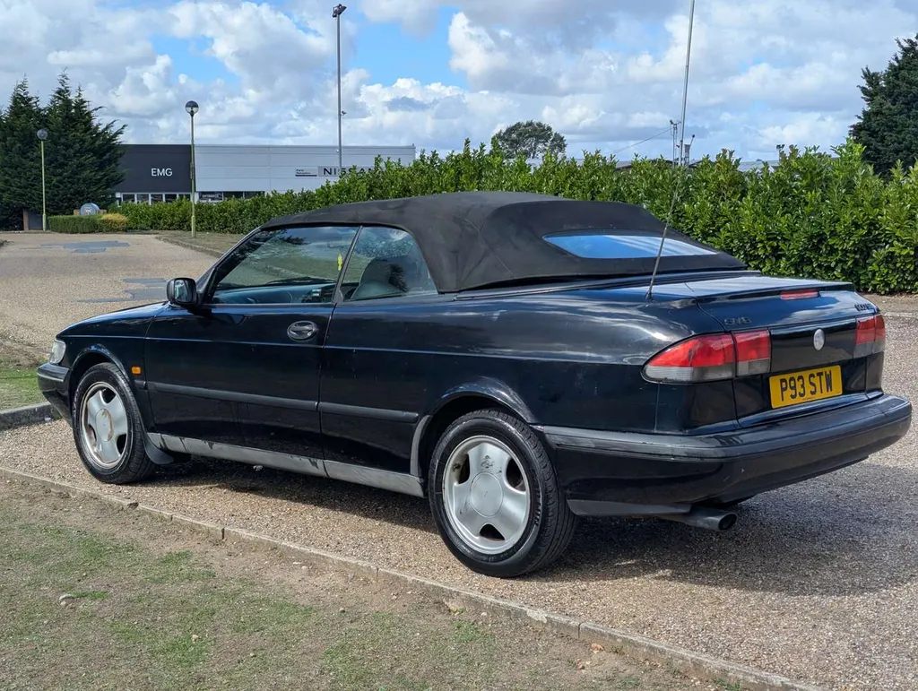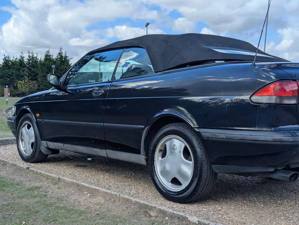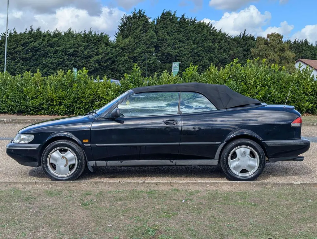 1985cc, manual. The owner tells us that this black Saab 900 SE Turbo has been in regular use, and the MoT record shows it has been tested almost every year since 2005 when records were digitised. Today the odometer shows 96k miles, and the MoT lasts until 8th September 2026. The service log has 8 stamps including the PDI, the latest being at 84,168 miles in 2019. It comes with a partial service history, old MoTs, and past and present V5Cs. The car was first registered on 1st August 1996.The electric roof mechanism has a fault, but the owner tells us that it will retract manually. Not specified