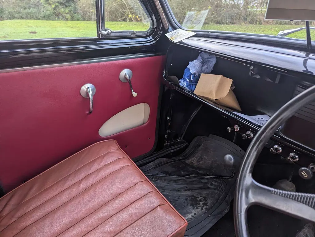 This black Standard 10 saloon is a right-hand drive import, first registered in the UK on 26th October 2010. The odometer shows 28,001 miles. The car has recently benefited from a new differential in November 2025 and new front shock absorbers the month before, and it completed a 200-mile trip shortly before the auction. The engine is believed to be a 1.3-litre Triumph unit. Having formed part of a collection, it is now being offered for sale due to lack of space.The horn is not working, and unfortunately no maintenance history accompanies the car, although in the vendor's words, "obviously lots of money has been spent". The V5C shows three former keepers in the UK.The registration number is non-transferable. Not specified