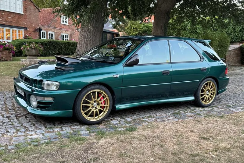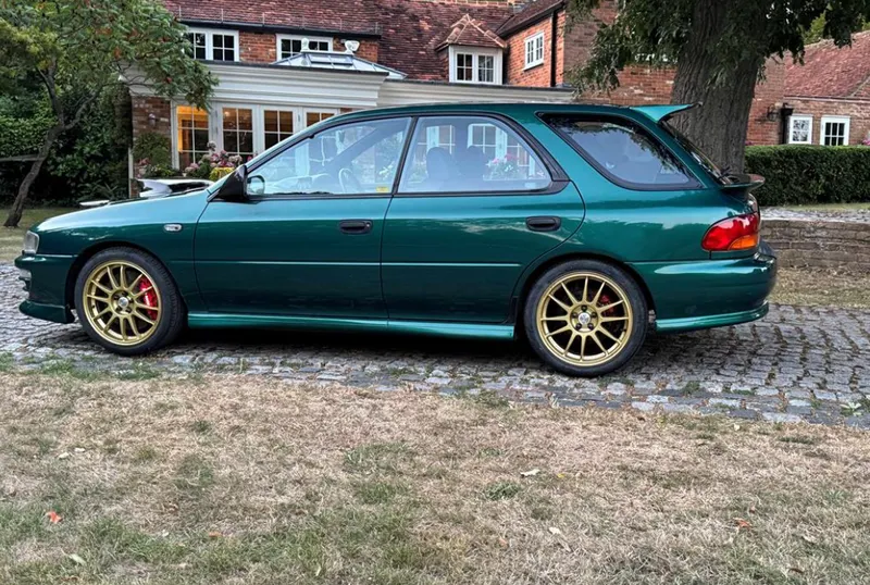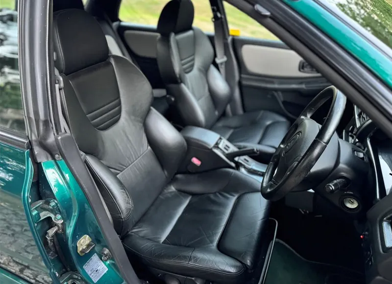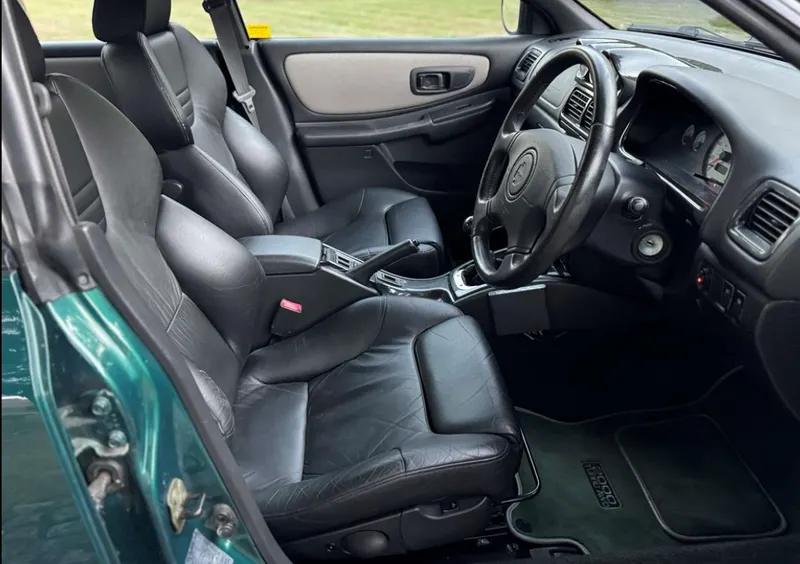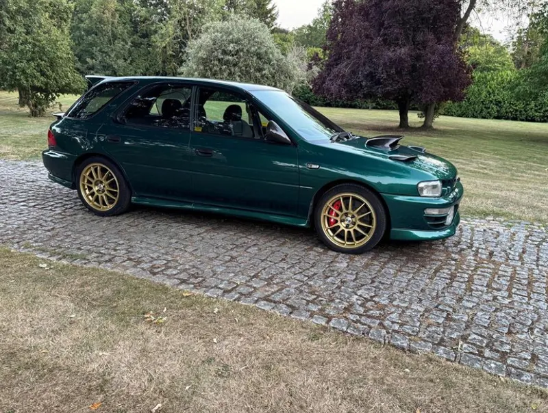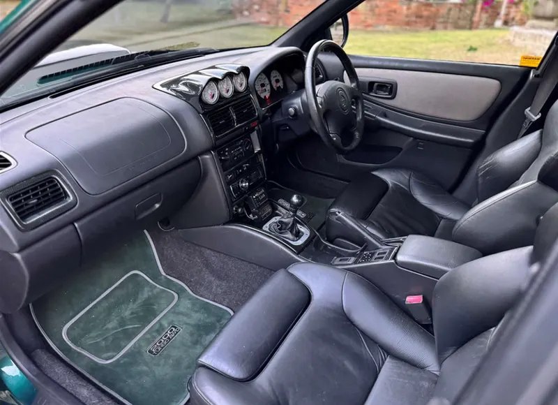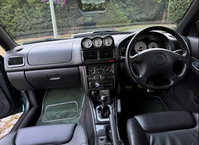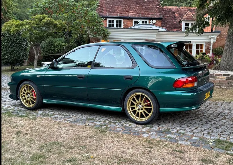 1998 Subaru Impreza Turbo finished in metalic Japanese Racing Green with black leather Recaro Sports front seats. Purchased by the current owner who was our sales manager for over 40 years, (now retired), back in 2000 when he was re-living his youth. Having covered only 60,000 miles from new, the service record reads like “War and Peace” with 23 service stamps in the service book. During his 25-year ownership of this Rocket Ship and judging by the number of invoices in the file, he lavished a fair proportion of his salary on numerous upgrades and regular servicing. You only have to look at the pictures, all of which are current to observe the huge number of extras. Now offered for sale, solely due to ill health at what we consider to be a bargain price of £8,950.