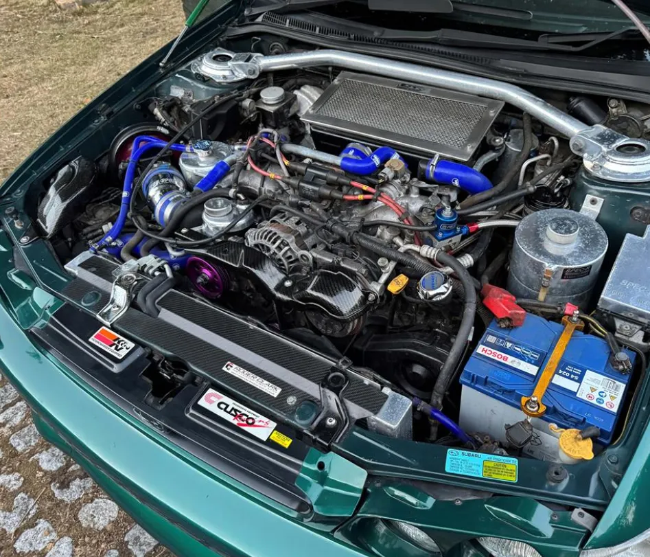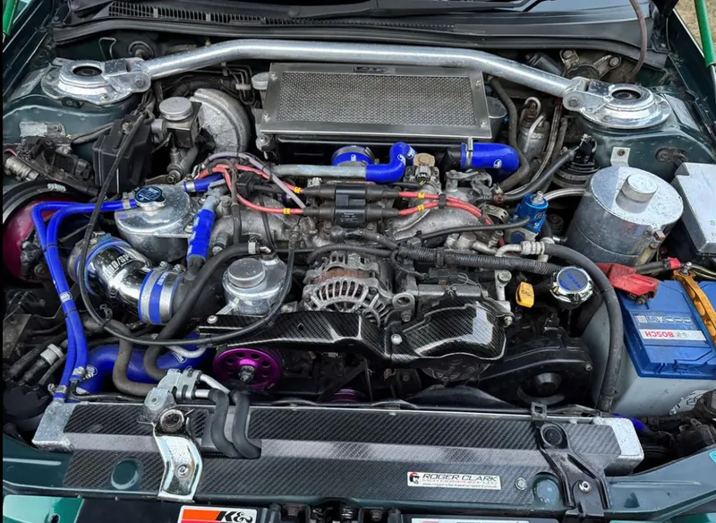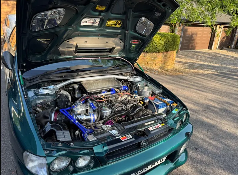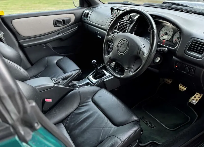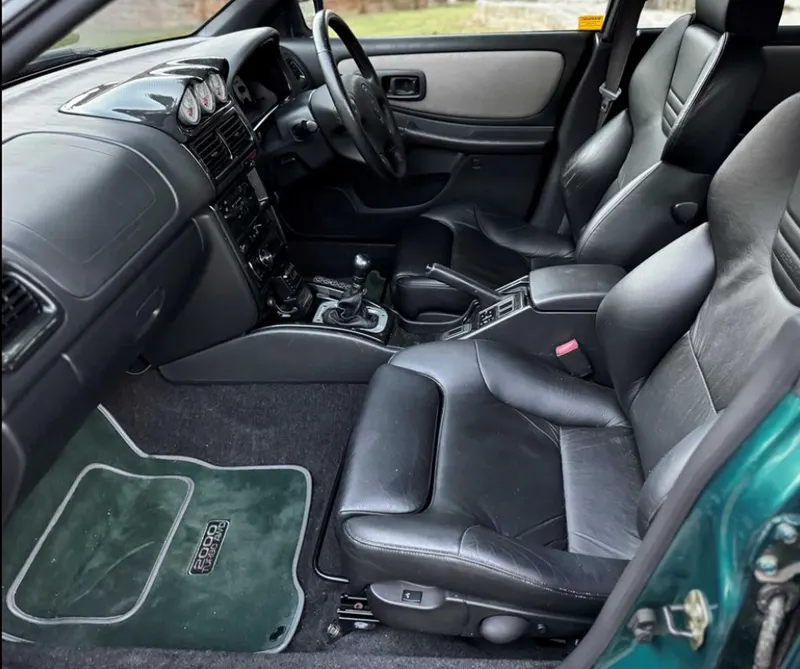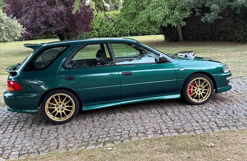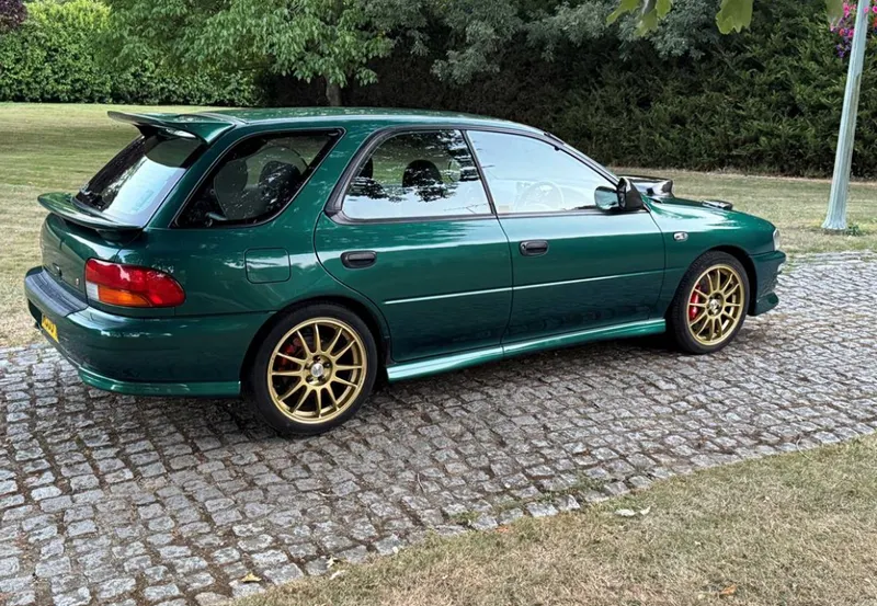 1998 Subaru Impreza Turbo finished in metalic Japanese Racing Green with black leather Recaro Sports front seats. Purchased by the current owner who was our sales manager for over 40 years, (now retired), back in 2000 when he was re-living his youth. Having covered only 60,000 miles from new, the service record reads like “War and Peace” with 23 service stamps in the service book. During his 25-year ownership of this Rocket Ship and judging by the number of invoices in the file, he lavished a fair proportion of his salary on numerous upgrades and regular servicing. You only have to look at the pictures, all of which are current to observe the huge number of extras. Now offered for sale, solely due to ill health at what we consider to be a bargain price of £8,950.