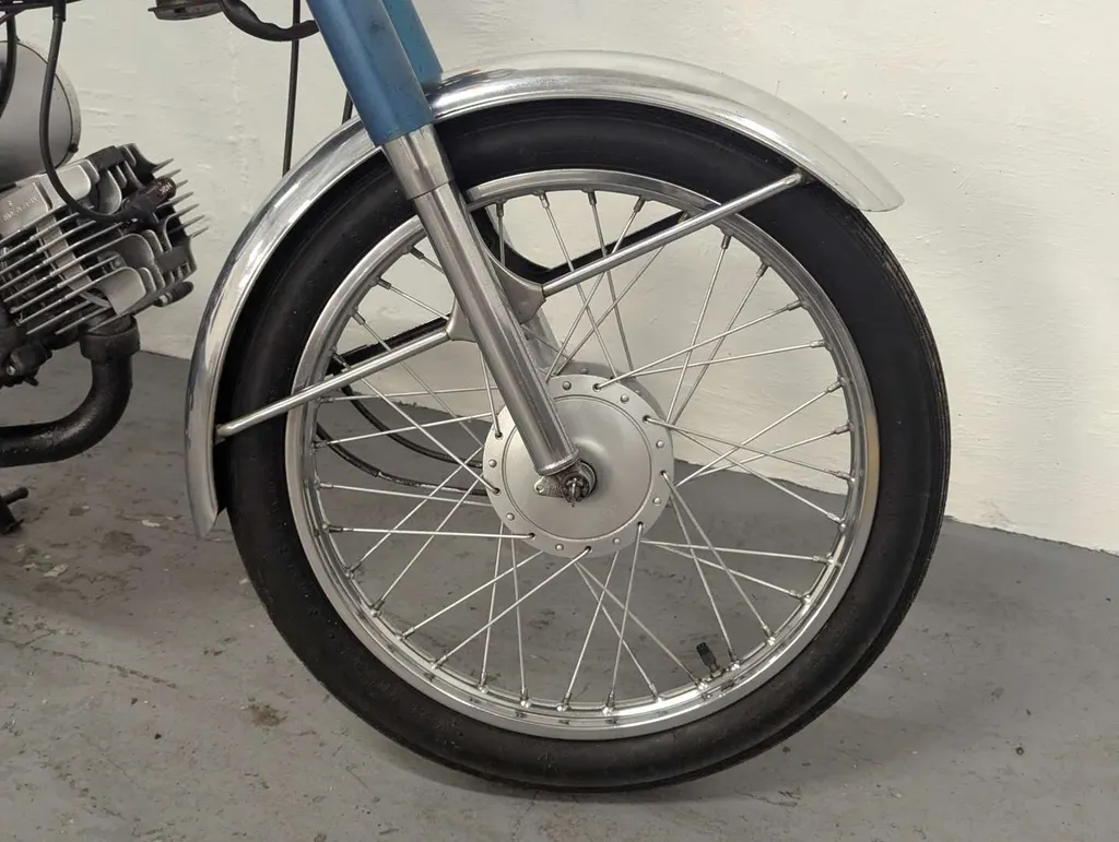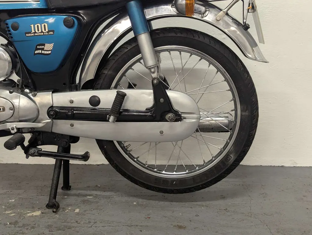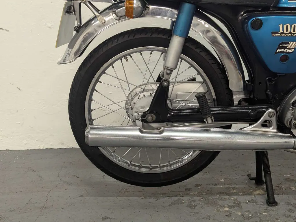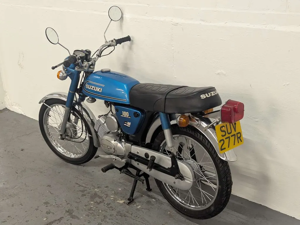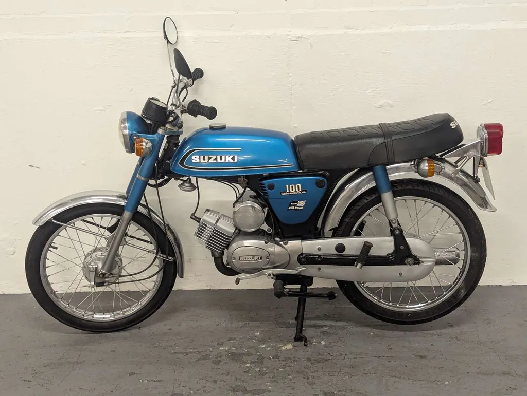 This blue Suzuki A100 passed its last MoT in 2015 with no advisories at 13,010 miles, and the odometer indicates that it has driven only 12 miles since then. We're told that a light recommissioning has been carried out in 2025, so it runs and rides. It comes with the current V5C indicating 5 former keepers. It was first registered on 1st July 1977. Not specified