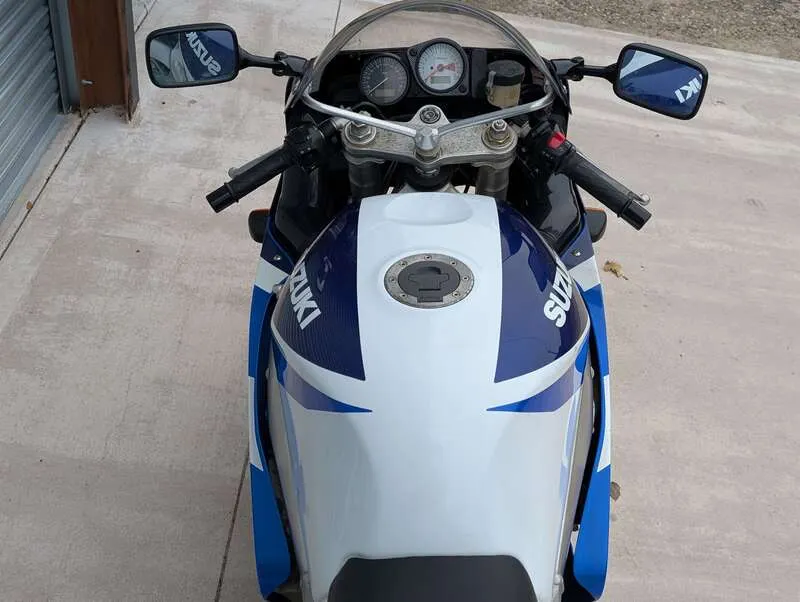 This lot will be auctioned via Iconic Auctioneers, The Iconic Motorcycle Sale at the NEC Classic Motor Show 2025 on Sunday the 9th of November, NEC, Birmingham, B40 1NT. Suzuki's GSX-R family first appeared in 1984 and was a mainstay of their line up for 40 years with the GSX-R designation being allocated to their high performance sports bikes. The GSX-R family enjoyed much success in racing winning multiple championships around the world including World Supersport, World Superbikes and victories at the Isle of Man TT Launched in 1996 the GSX-R was all new with a new frame and engine, with frame geometry straight from the grand prix race bikes, the bike was lighter with more power and pin sharp handling The 1999 Suzuki GSX-R750 SRAD (Suzuki Ram Air Direct) was a significant sports bike that combined power and light weight in a nimble package It featured a race-inspired chassis and was one of the first mainstream sports bikes to use fuel-injection, offering a noticeable performance increase over earlier carburetted models Classically presented in two-tone blue and white, this 1999 model is in mostly original condition and is fitted with an Akrapovic exhaust The bike has been in dry storage for the past few years so some recommissioning will be required before use