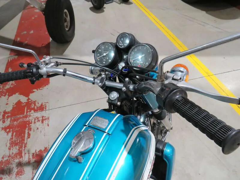 This lot will be auctioned via Iconic Auctioneers, The Iconic Sale at Race Retro 2026 - Motorcycles on Sunday the 22nd of February, Stoneleigh Park, Stoneleigh Rd, Coventry, CV8 2LG. Water-cooled two-stroke triple GT750, known as the 'kettle' in the UK Launched in 1971 as a sports tourer boasting 67bhp First year of production Model J featured a 200mm twin leading-shoe front brake drum Correct numbers (confirmed by Crooks Suzuki) finished in eye-catching Candy Jackal Blue Mostly original and unrestored, fitted with an aftermarket exhaust system but complete with its original Part of a large collection stored in a heated hanger Running recently but may need some basic safety checks before road use Great example of this model J 'kettle' UK-registered on a current V5C