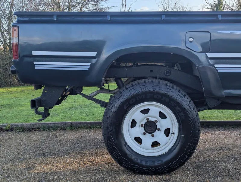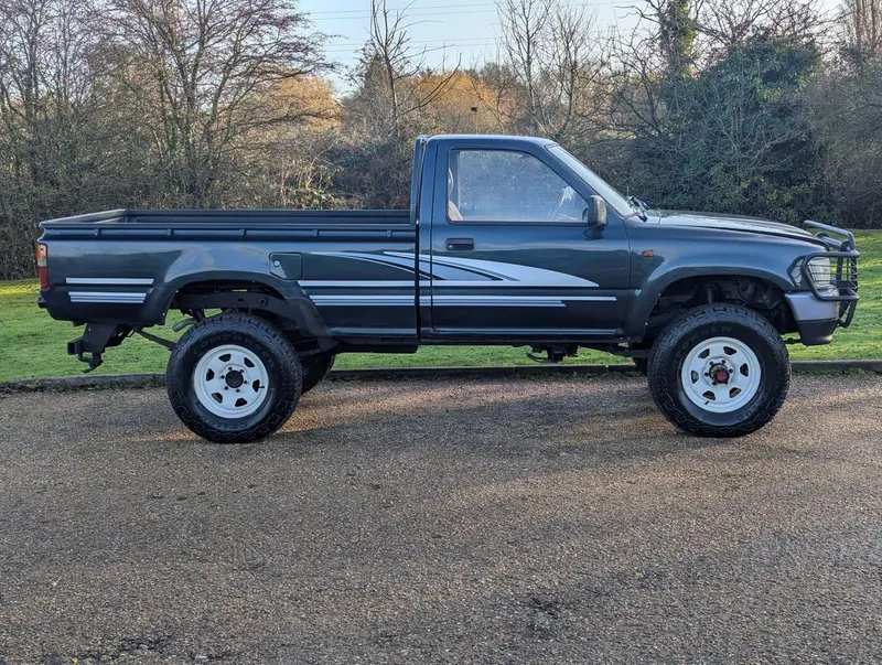 This 5th-generation Toyota Hi-Lux has been treated it to an extensive refurbishment by the vendor who purchased it a couple of years ago. Work included a turquoise respray, replacement interior trim, new tyres, brake discs and pads, a full service and a new stereo. The famously dependable 2.4-litre diesel is coupled to a five-speed manual gearbox, and the odometer shows 136,780 miles. The V5C indicates only one former keeper.The truck was first registered on 1st August 1994, and has an advisory-free MoT to 8th September 2026. In the vendor's words, “she's ready to go!”In the office we have a bag containing various fixings and "HILUX 2.4D" badges. Not specified
