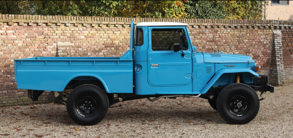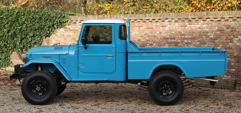 This 1982 Toyota Land Cruiser BJ45 LWB Pickup represents the purest essence of adventure, reliability, and mechanical simplicity—everything the Toyota name has stood for since its earliest days. Delivered new in Medium Blue and now paired with a refreshed gray interior, this example radiates the timeless toughness that elevated the Land Cruiser to global icon status. With its long-wheelbase configuration, classic lines, and purposeful stance, it’s instantly clear this machine was built to work—and built to last. A Land Cruiser in Exceptional Condition This BJ45 has recently been restored and mechanically overhauled to a remarkably high standard. The chassis was blasted and double-coated for maximum protection, while the entire body was media-blasted and professionally repainted. The result is a deep, handsome finish that showcases the truck’s character exactly as Toyota intended. Brand-new Terrain Tamer parabolic suspension elevates this pickup both literally and figuratively. The additional 5 cm of ride height gives the truck a commanding presence, while comfort and off-road capability are noticeably improved. Every detail presents beautifully—nothing about this Toyota hints at its age. Inside, the cabin has been fully renewed. The fresh upholstery complements the blue exterior beautifully, the seats feel firm and well-sorted, and the interior offers that inviting, functional atmosphere that defines a classic Land Cruiser. A Working Classic Built for Real Use Under the hood lies the legendary diesel powerplant that helped make Toyota famous worldwide. These engines are celebrated for their durability, torque, and mechanical honesty—qualities that suit a long-wheelbase pickup perfectly. The manual transmission shifts cleanly, the driveline feels tight, and the entire truck exudes that mechanical purity modern vehicles left behind long ago. And then there’s a particularly rare detail: this BJ45 is equipped with a PTO winch. A pure, mechanically driven accessory—robust, functional, and perfectly aligned with the vehicle’s original DNA. This is a machine that comes alive on farmland, forest trails, river crossings, or even during a relaxed Sunday drive. Every mile reminds you why the Land Cruiser is widely regarded as one of the greatest off-road vehicles ever built. Contact This Land Cruiser is made to drive, to experience, and to rely on for years to come. Authentic, powerful, and beautifully restored. Would you like the full impression or prefer to see it in person? Feel free to contact us. We are happy to assist with advice, information, and worldwide delivery. This is your opportunity to own a truly exceptional Toyota Land Cruiser BJ45—an icon ready for its next chapter.