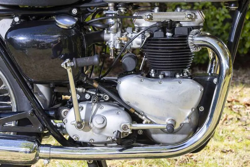 This lot will be auctioned via Iconic Auctioneers, The Iconic Motorcycle Sale at the NEC Classic Motor Show 2025 on Sunday the 9th of November, NEC, Birmingham, B40 1NT. Launched in 1949 and followed on from the popular 500 Speed Twin Fitted with a bigger 650cc engine and very much aimed at the US-market Became famous when Marlon Brando rode one in The Wild Ones This pre-unit matching-numbers example is presented in running order UK-market machine first dispatched to George Marriott in Buckinghamshire in April 1956 Recently restored to its current condition by our vendor Original registration number is YBH 460 Currently not UK-registered Complete with Triumph Dating Letter and paperwork to register back to its original registration number, Triumph Owners Club are happy to assist in this process