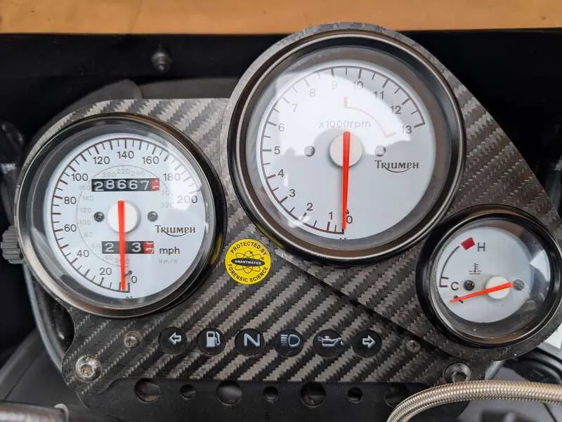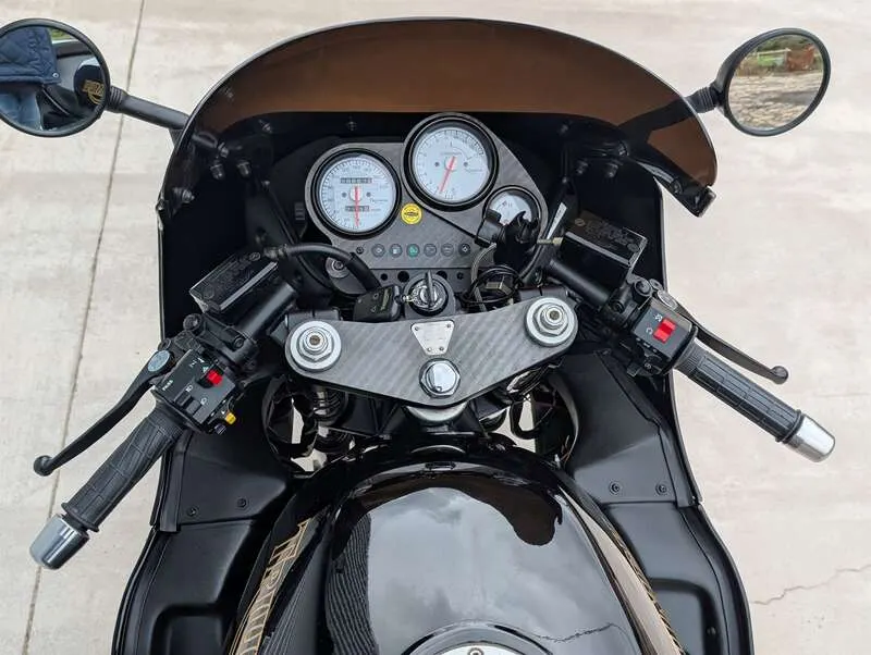This lot will be auctioned via Iconic Auctioneers, The Iconic Sale at Race Retro 2026 - Motorcycles on Sunday the 22nd of February, Stoneleigh Park, Stoneleigh Rd, Coventry, CV8 2LG. The 1200 SE is part of the T300 Daytona Series first launched at the 1990 NEC Motorcycle Show A limited-edition of 250 examples built in 1998 only Powered by a 1,180cc, liquid-cooled, 16-valve, four-cylinder offering 147bhp at 9,500rpm All of the SE models were painted black with gold lettering, pin striping and gold wheels with a numbered plaque on top of the steering yoke This bike is number 82 of the 250 limited-editions built in 1998 and was registered new in 1999 Confirmed running and is in mostly original condition having covered 28,667 miles at the time of cataloguing Fitted with a WP rear shock absorber and sports exhausts and is supplied with the original black silencers Recently serviced with a current MOT Supplied with a current V5C, owners handbooks