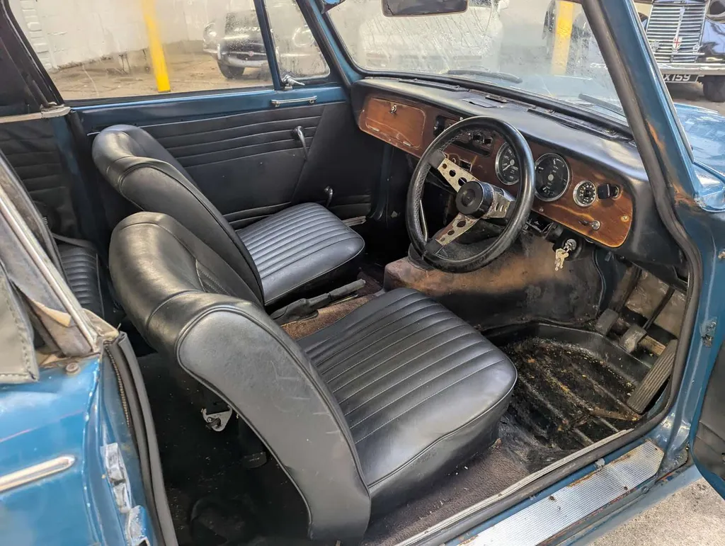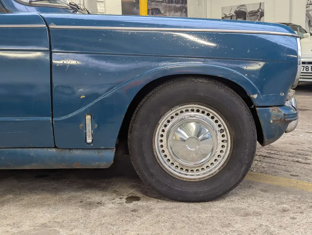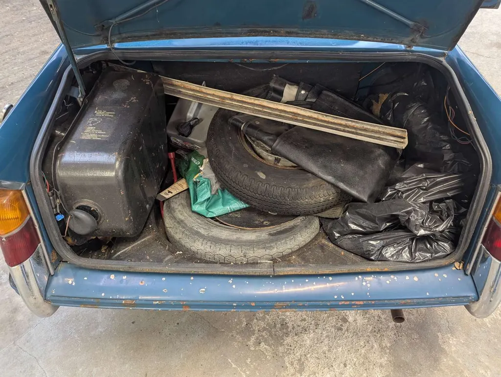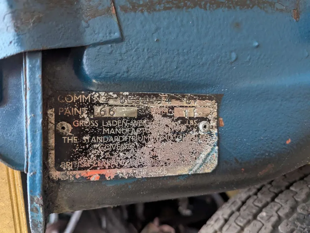 This blue Triumph Herald has been registered to the same keeper since 1983, dry-stored unused for at least 36 years. The engine turns and the car rolls easily for loading, but it will require a new coolant pump as this is seized. The belt was cut to check the engine turns freely.Great chance to restore a correct C.V. chassis numbered 13/60 Herald convertible or recommission and use as-is, with some parts in the boot to help you on the way. The history folder contains MoTs going back to 1977, old-style V5 which remains current, sundry invoices and a Haynes workshop manual.The odometer shows 73,825 miles, and the car was first registered on 1st September 1971. Not specified