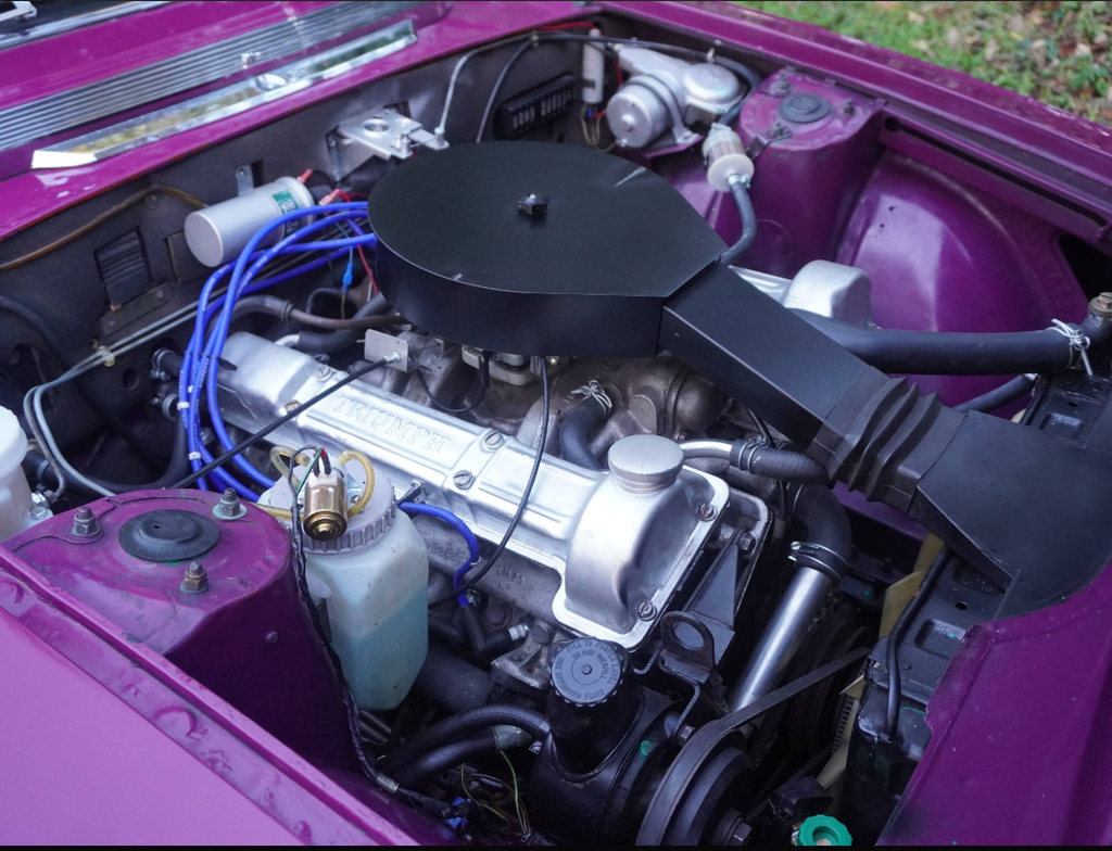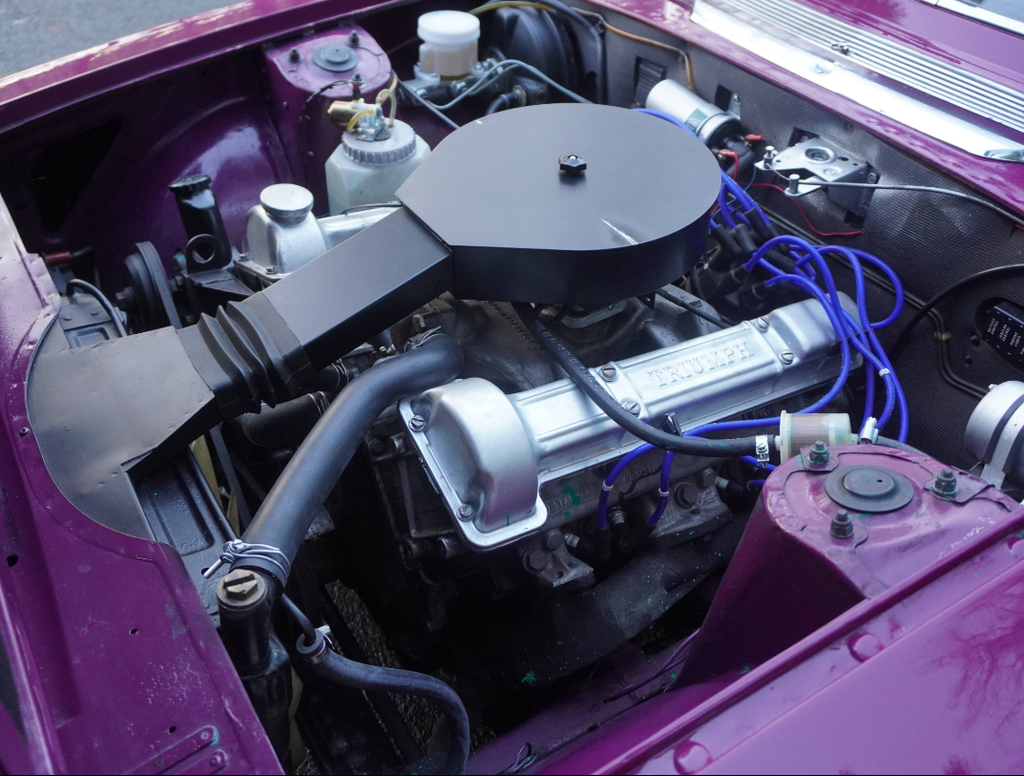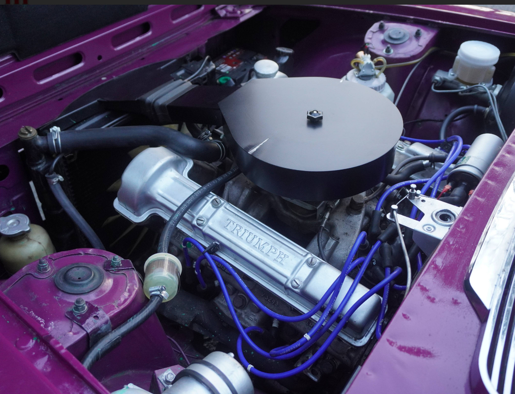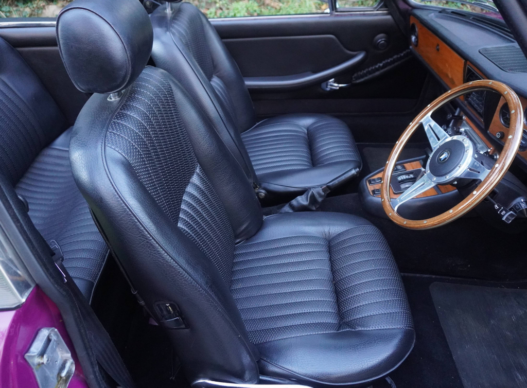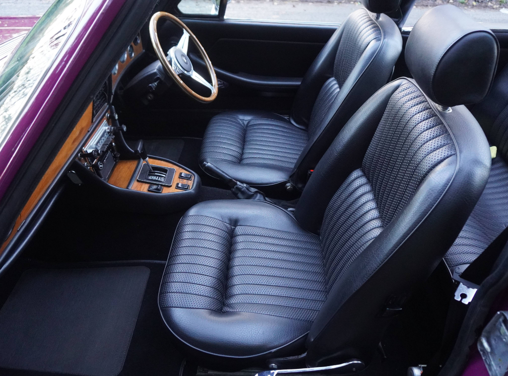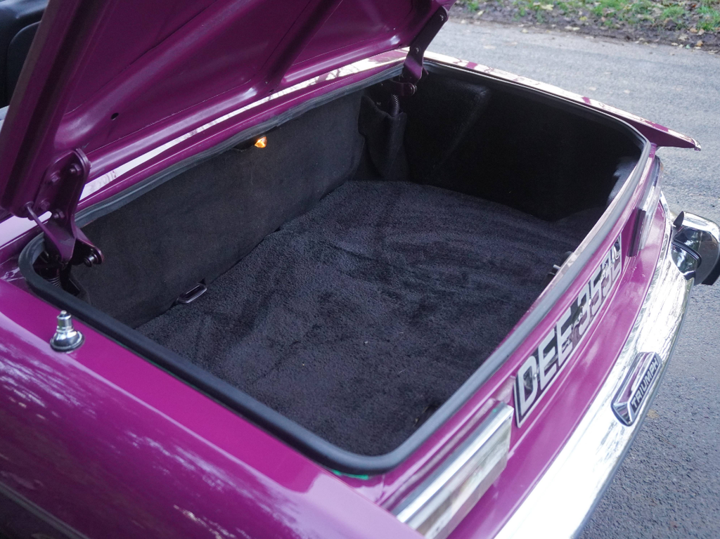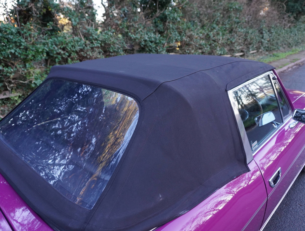 This very well presented, incredibly usable Triumph Stag has come to us in part exchange from a regular customer in Worcestershire. Finished in its correct Triumph colour of Magenta with lovely Black upholstery and correct Rostyle wheels, the Stag has arrived with us completely on the button and driving superbly. First registered in June 1973, this Automatic example has led a very sheltered life. For many years the car was in warmer climates. The Arboleas region of Spain. As result, the car is structurally excellent, and it clearly demonstrates a high level of originality. The Giovanni Michelotti designed bodywork draped in the beautiful bright shade of Magenta has an outstanding curb appeal. Complimented well with a beautifully re-trimmed upholstery and new mohair soft top hood, the Stag offers a very enjoyable open top motoring experience. The Triumphs well-serviced 2997cc V8 engine pulls strongly with enhanced performance from the Weber carburettor and the Borg-Warner Model 35Gearbox transitions smoothly through the gears. Performing in very impressive condition, DEE 353L epitomises the design brief of a stunning British grand tourer. Accompanying the Triumph is a comprehensive history file full of hundreds of invoices from the Triumph Parts specialists Rimmer Brothers detailing meticulous maintenance throughout the last 25 years. Most recently, the Stag has benefited from a thorough strip, clean, and tune of the Weber 38 DGMS carburettor, new cam cover gaskets, a brake master cylinder overhaul, an ignition service and engine service. This is a very strong car, it's proven reliable, drives incredibly well and is ideal for regular use, long distance touring and historic events, shows and car runs.