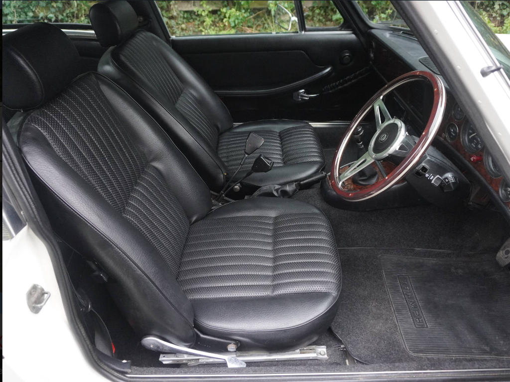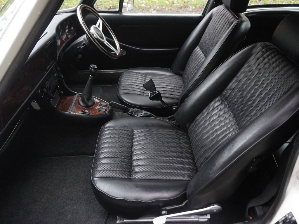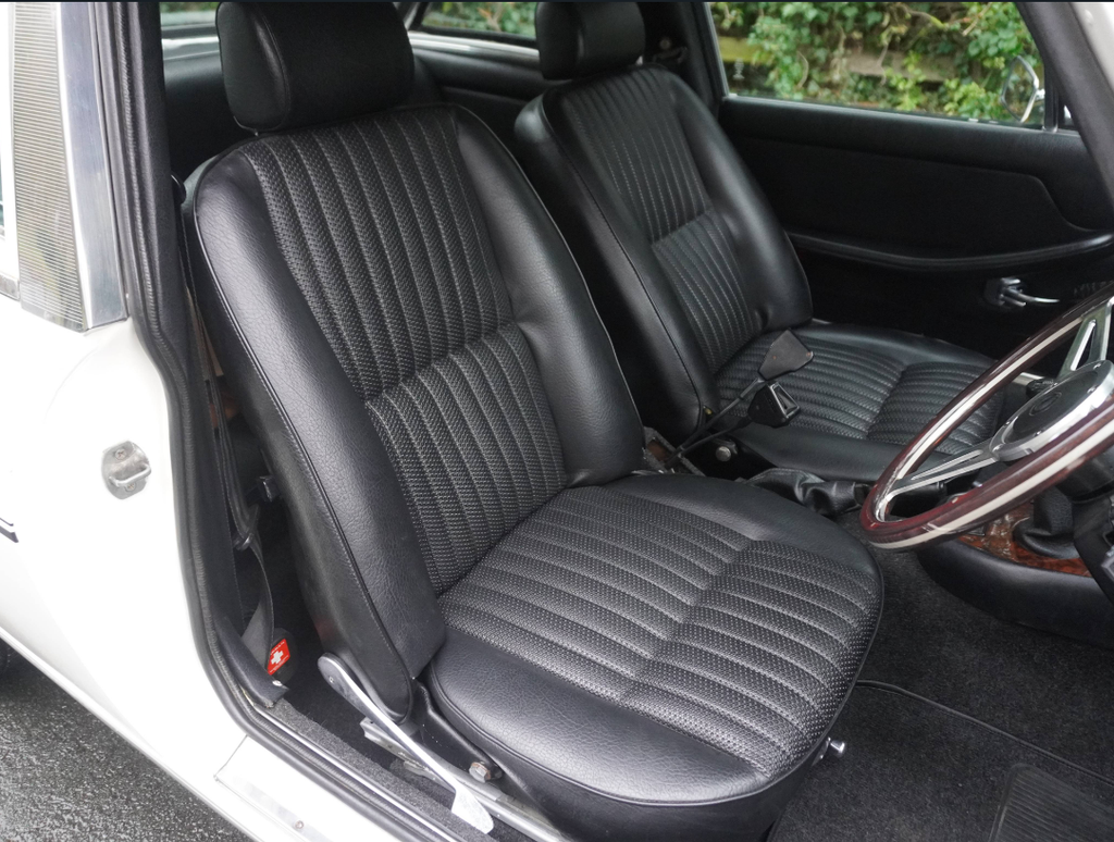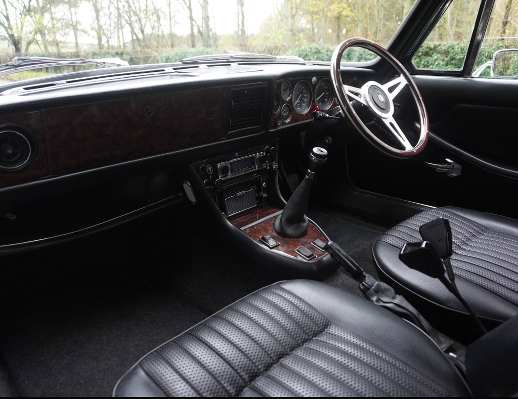 This original RHD Manual with Overdrive Triumph Stag was built on the 26th March 1974 and left the factory in New White with Black upholstery equipped with laminated windscreen, hard top, and European spec lights. The car was supplied in RHD for the export market, heading to Switzerland when brand new. The Stag was driven regularly in Solothurn, Switzerland on the foot of the Weissentein Jura mountains until it was laid up in very original condition in 1989 with a mileage of 17800 km’s. From 1989 to 2015 the Stag was dry stored and was then subject of a re-commissioning program that was completed in 2016. The engine was overhauled and the car then left Switzerland for Germany where it has spent several years with one of our clients. On arrival in the UK, around £3000 has been spent on pre-sale preparation work to include a full service and various detailed improvements. PWC 108K presents a remarkably original, well presented example that would be ideal for regular use. The Triumph V8 engine holds very good oil pressure and sounds superb, the four speed with overdrive gearbox is a delight to use and with power steering, recently serviced brakes, the car feels lovely on the road. The nicely aged paintwork is of a good standard, the car comes with its original hard top and brightwork is in good order. The Stag presents very well with recently painted Rostyle style wheel trims, correct period number plates and a lovely, largely original upholstery.