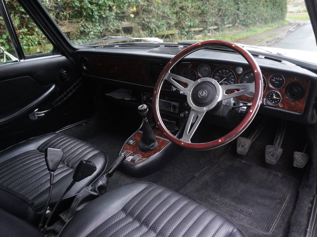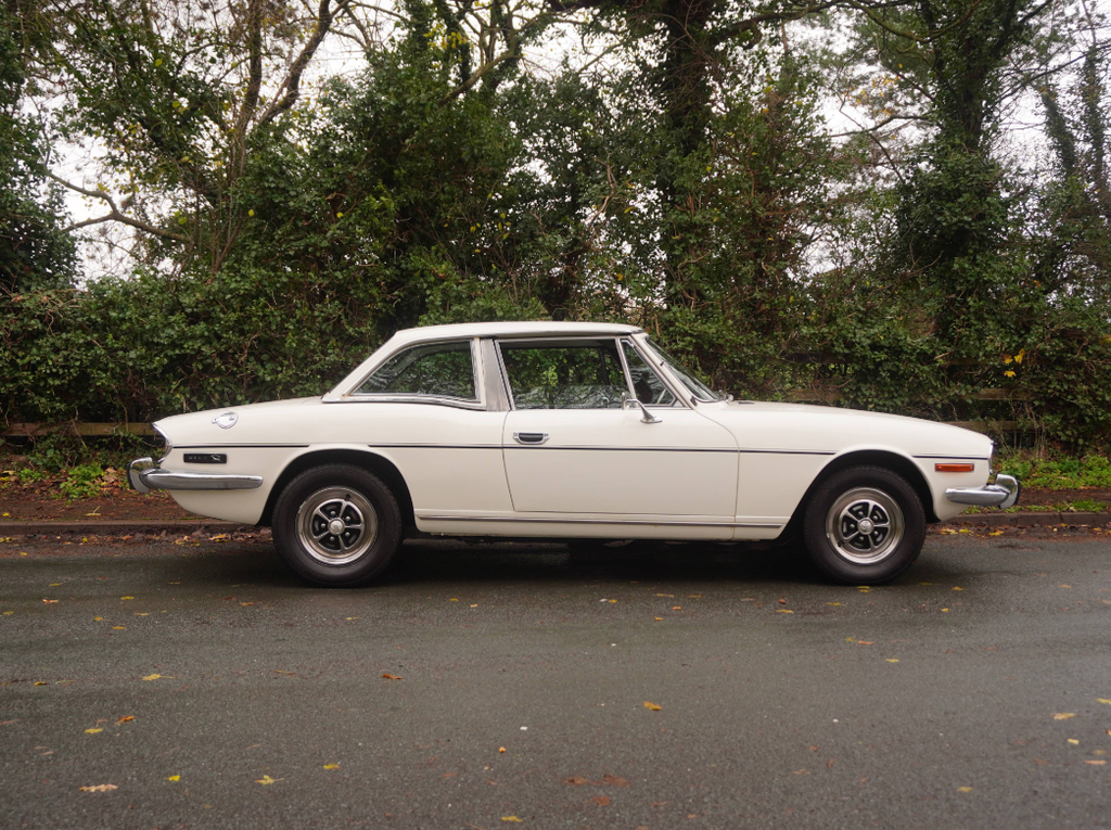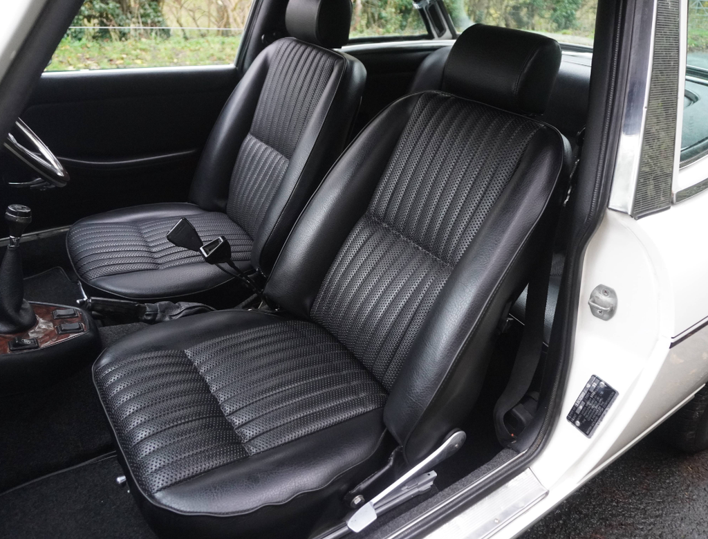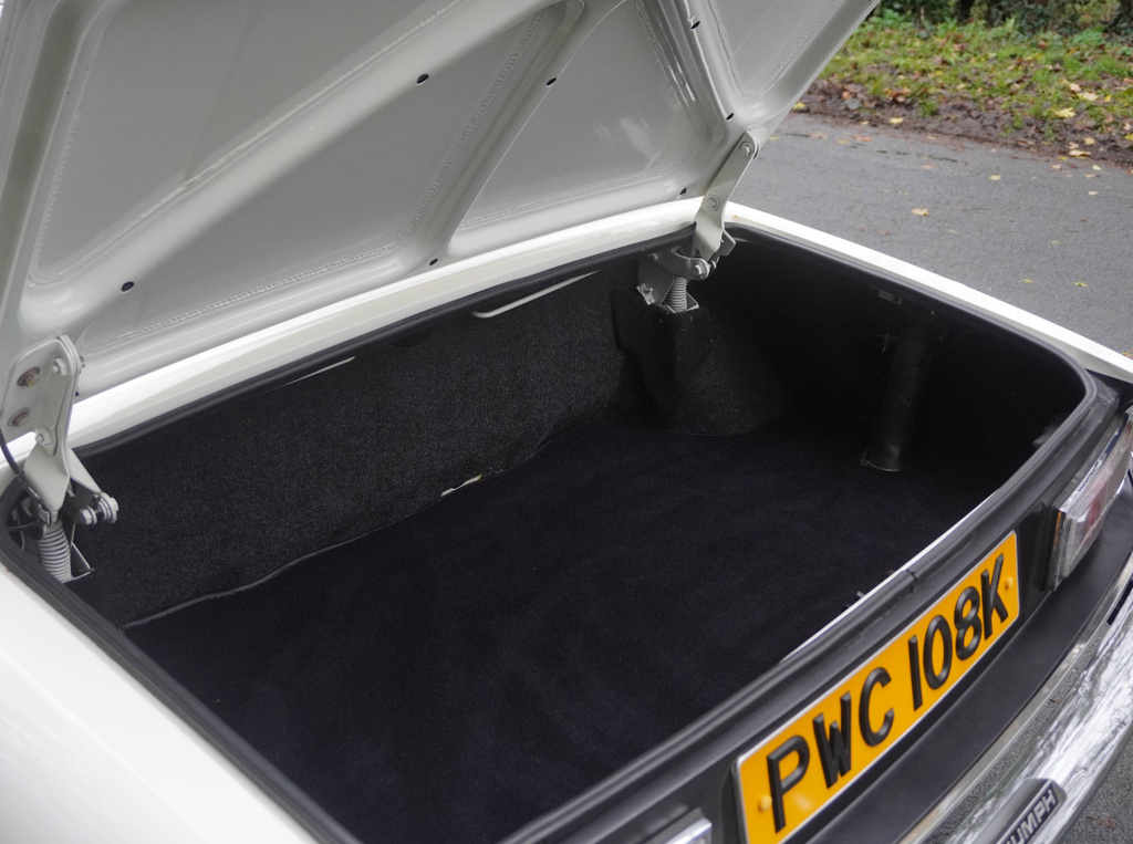 This original RHD Manual with Overdrive Triumph Stag was built on the 26th March 1974 and left the factory in New White with Black upholstery equipped with laminated windscreen, hard top, and European spec lights. The car was supplied in RHD for the export market, heading to Switzerland when brand new. The Stag was driven regularly in Solothurn, Switzerland on the foot of the Weissentein Jura mountains until it was laid up in very original condition in 1989 with a mileage of 17800 km’s. From 1989 to 2015 the Stag was dry stored and was then subject of a re-commissioning program that was completed in 2016. The engine was overhauled and the car then left Switzerland for Germany where it has spent several years with one of our clients. On arrival in the UK, around £3000 has been spent on pre-sale preparation work to include a full service and various detailed improvements. PWC 108K presents a remarkably original, well presented example that would be ideal for regular use. The Triumph V8 engine holds very good oil pressure and sounds superb, the four speed with overdrive gearbox is a delight to use and with power steering, recently serviced brakes, the car feels lovely on the road. The nicely aged paintwork is of a good standard, the car comes with its original hard top and brightwork is in good order. The Stag presents very well with recently painted Rostyle style wheel trims, correct period number plates and a lovely, largely original upholstery.