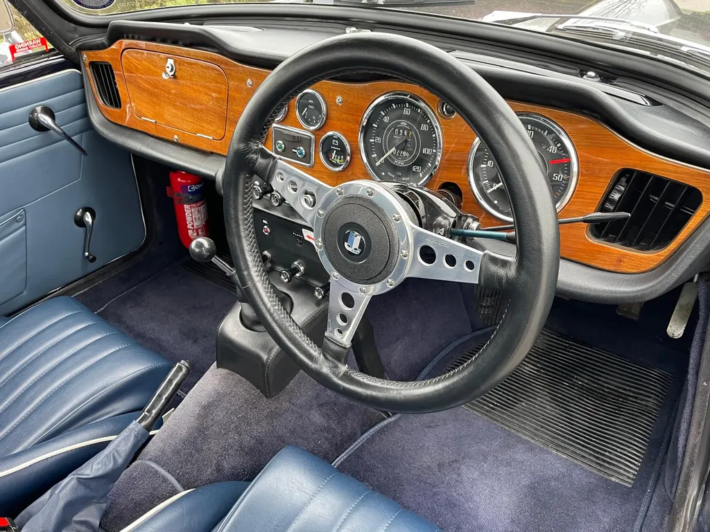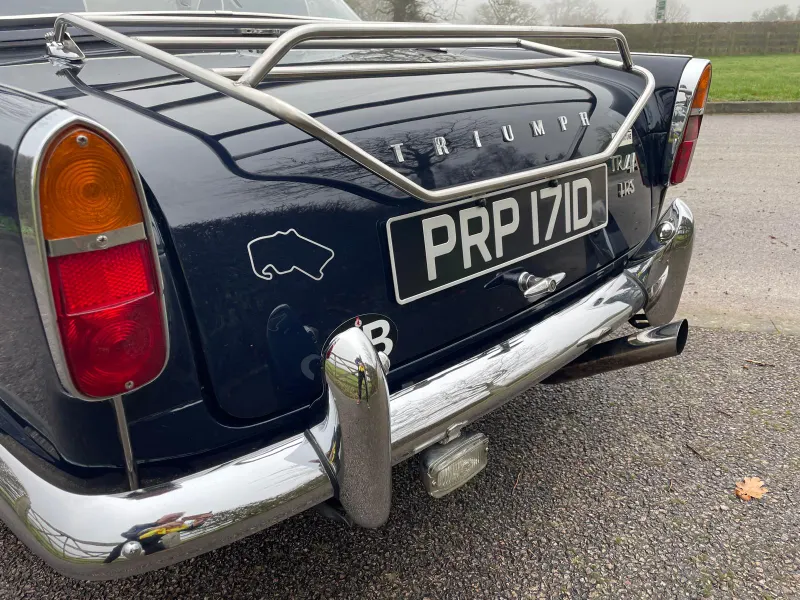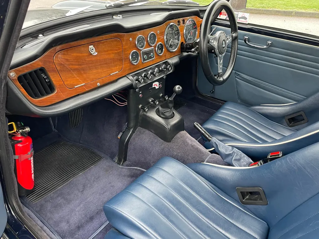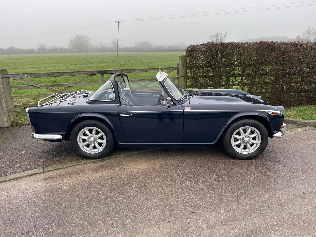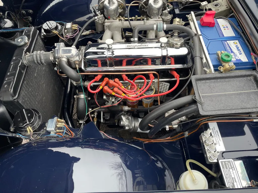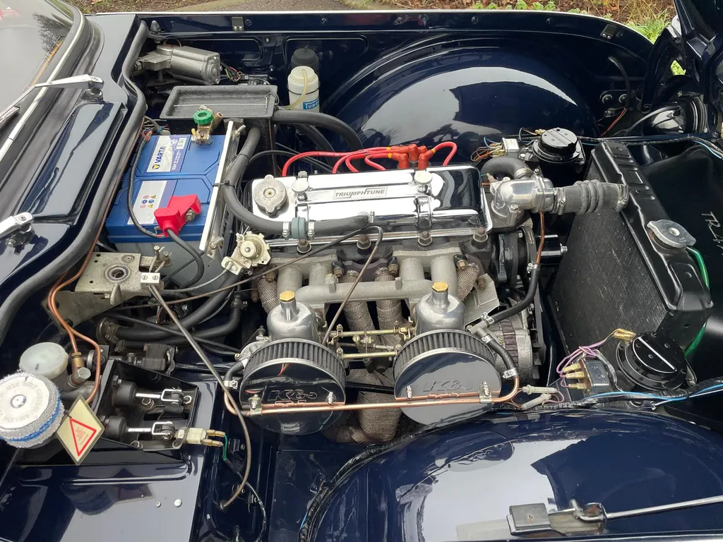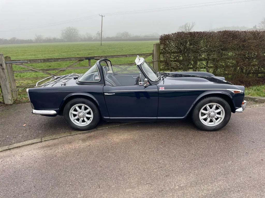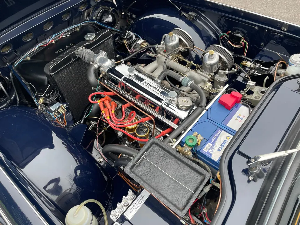 Please note our Triumph stock has undergone extensive restoration to high standards and cannot be compared to poor quality examples advertised cheaply elsewhere, which will require vast amounts of expenditure. A superb example of the standard-setting TR4 A with the original and beautiful Michellotti-designed bodywork. These early cars are undoubtedly the purest and simple in the design of all the subsequent later TR models. Finished in rare Midnight blue with leather interior with the valuable metal Surrey top,vinyl top and she is also fitted with overdrive and independent rear suspension. She was fully restored in 2001 by a Triumph specialist to a very high standard and still presents beautifully today being one of the best available with great updates; Tuned engine ,balanced crankshaft,big valves, gas flowed unleaded cylinder head, stage 3 fast road cam,lightened flywheel electric cooling fan, electronic ignition, adjustable shockers,tuned manifold stainless big bore exhaust,drilled brake discs Sports seats ,alternator etc The previous owner really enjoyed her for 20 years using her for trips in Europe and uk. There are 3 history files with original documents including, mots, invoices, photos of the restoration are all included in the comprehensive file. On the road, this is a special sorted fast road TR4 and amongst the best we have sold. She is a quintessentially British sports car that can only appreciate in value and must be one of the best available. Supplied fully inspected serviced with a 12-month warranty.